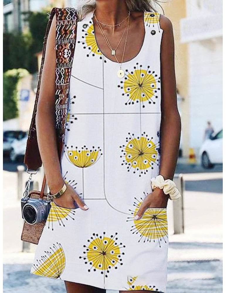 Stripe Floral Print Sleeveless Casual Dress For Women