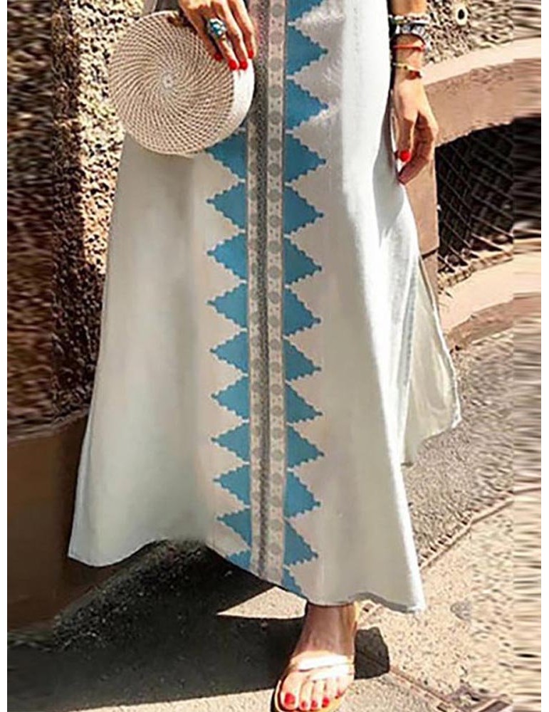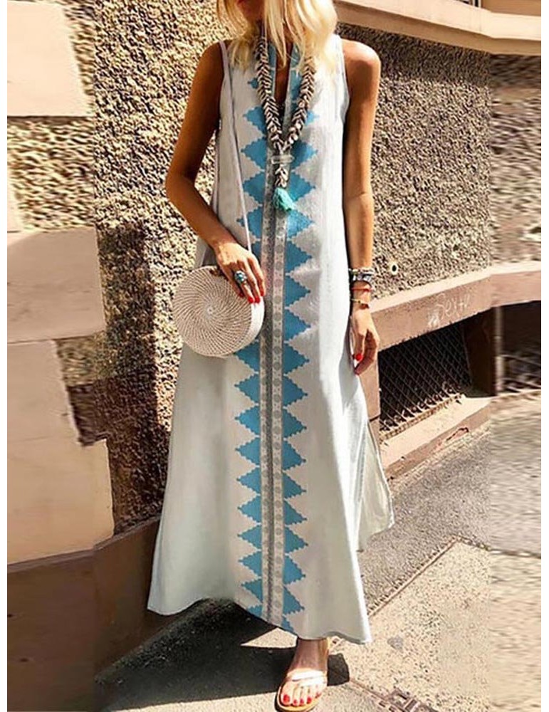 Ethnic Print Low Cut Sleeveless V Neck Dress