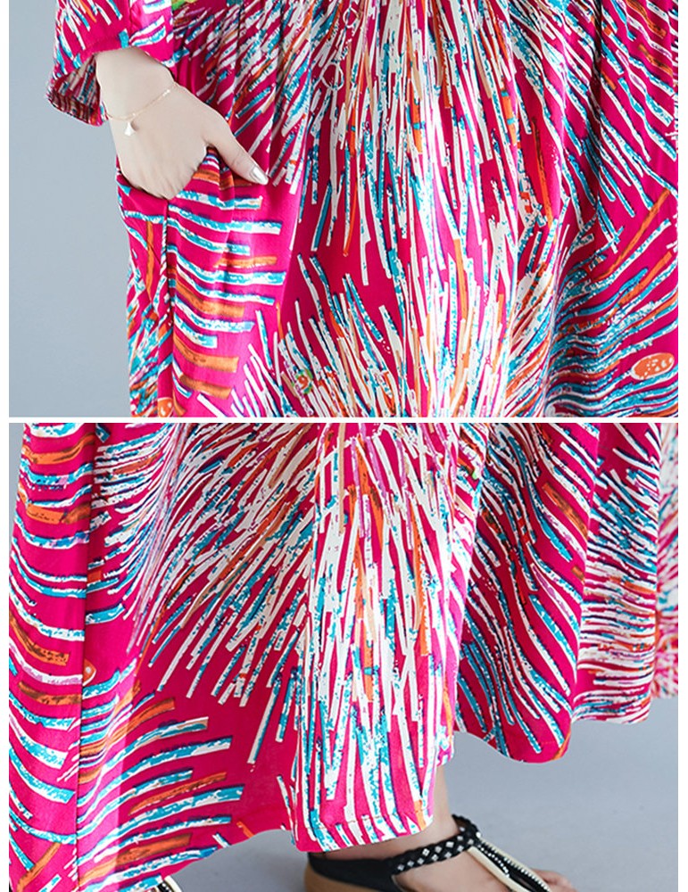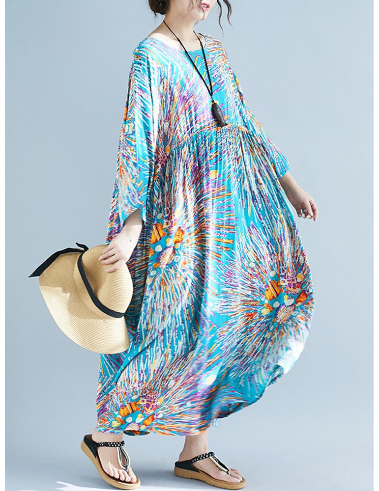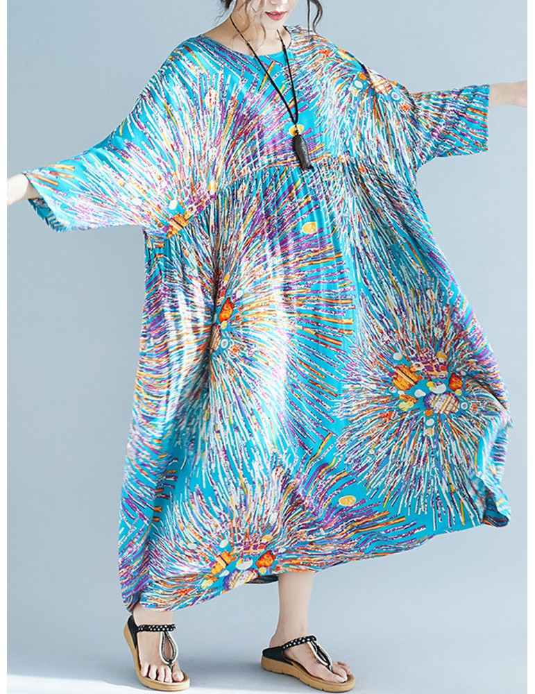 Firework Print Loose 3/4 Sleeve Maxi Dress For Women