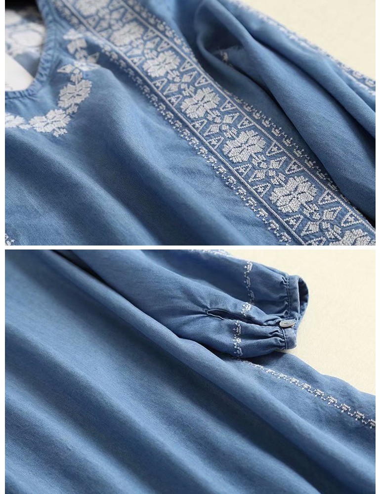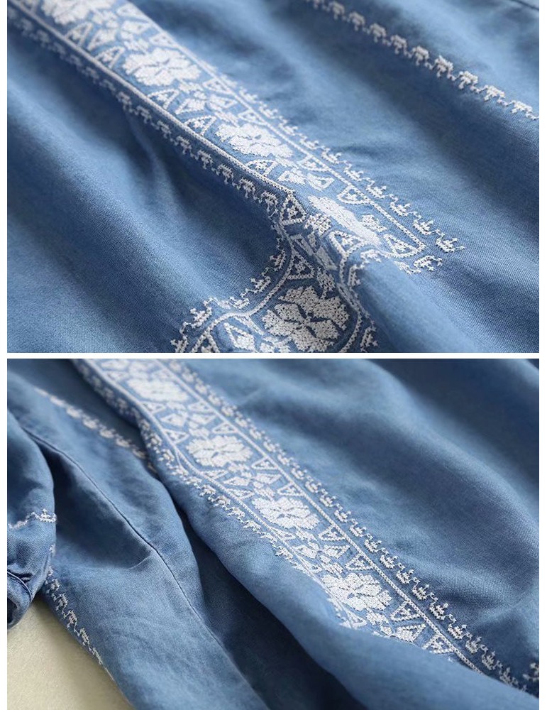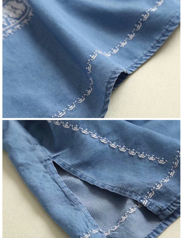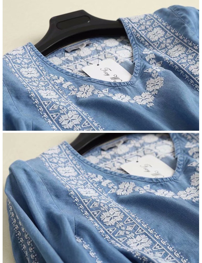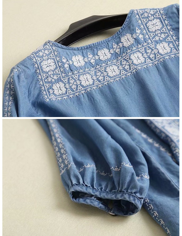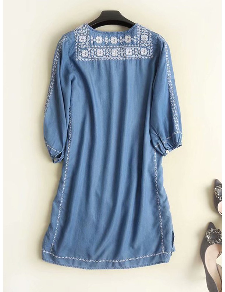 Denim Embroidery Half Sleeve V-neck Casual Dresses