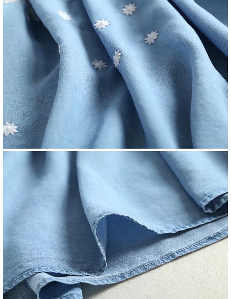 Denim Embroidery Short Sleeve V-neck Casual Dresses