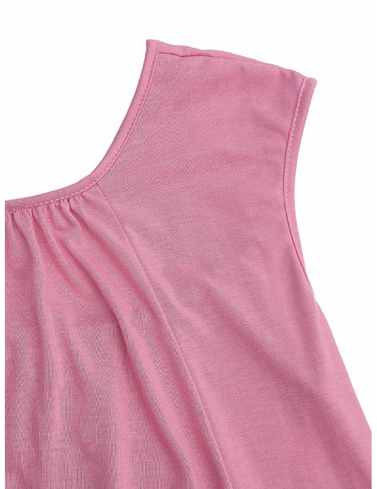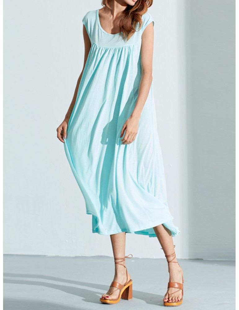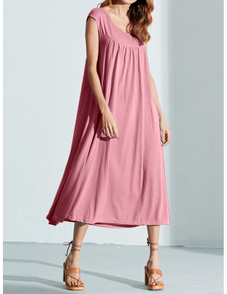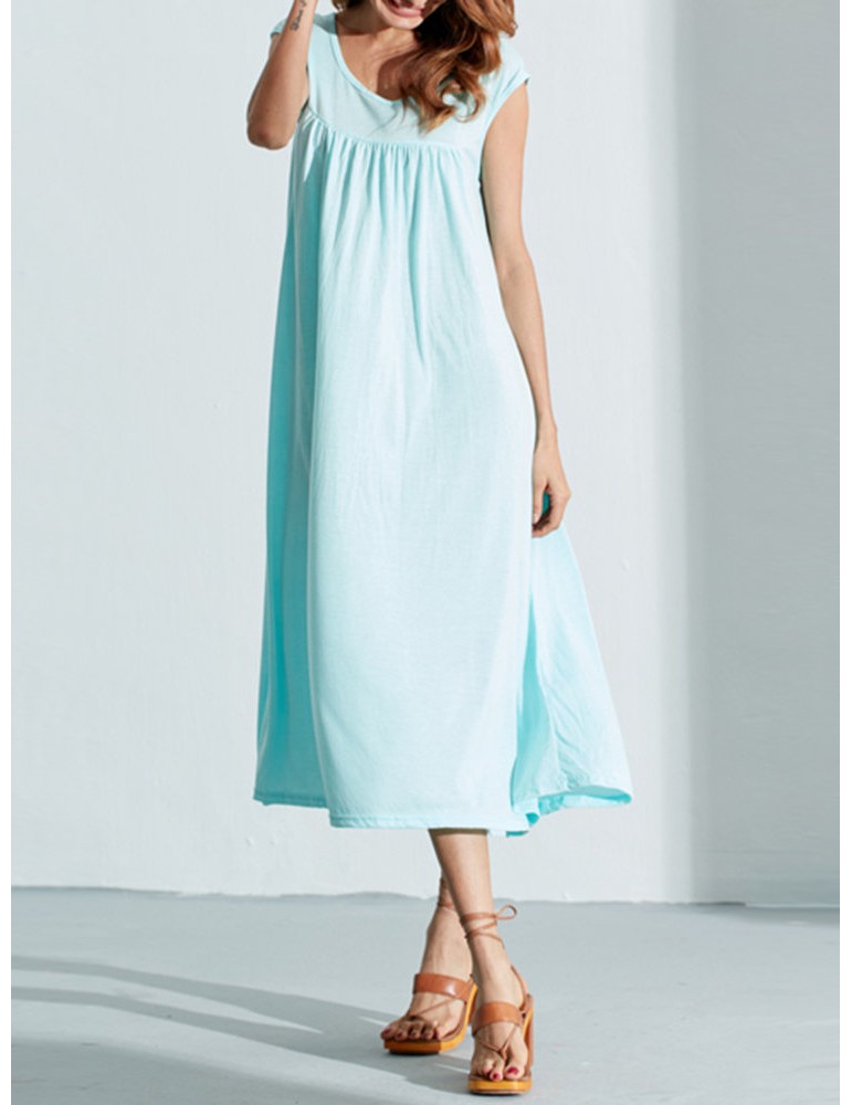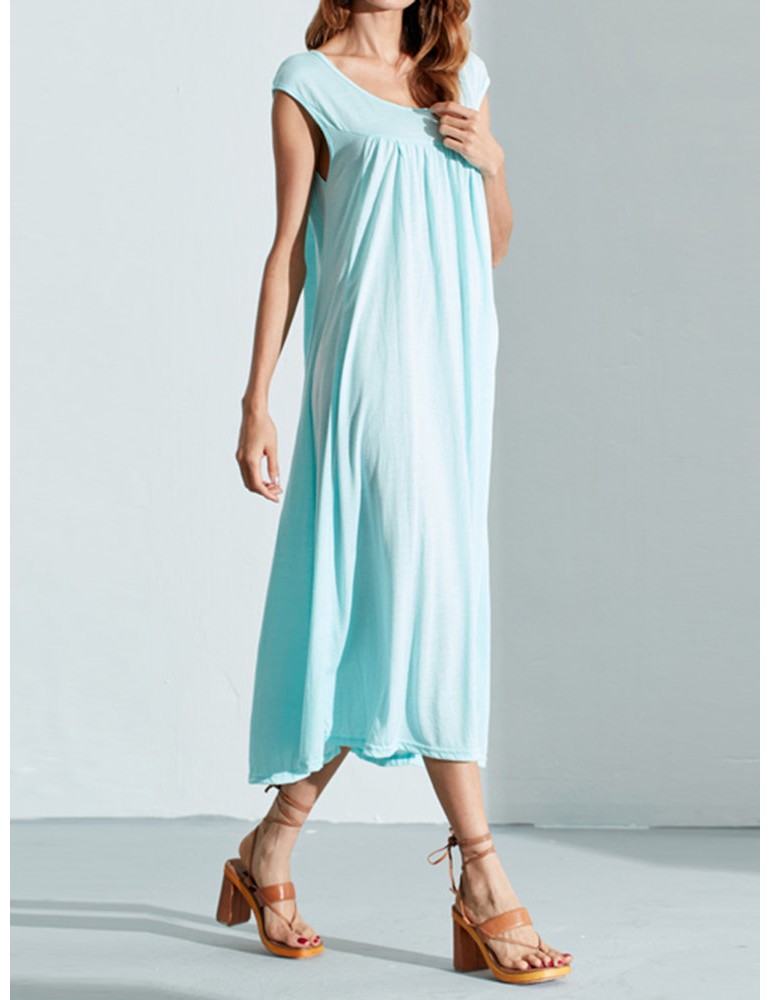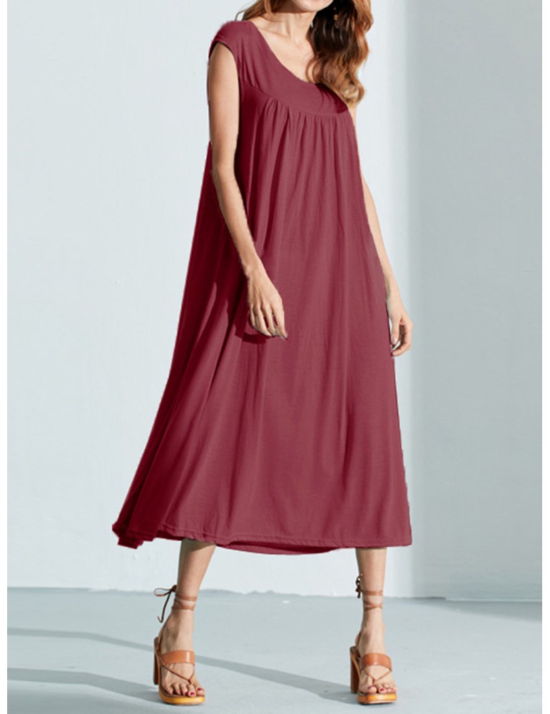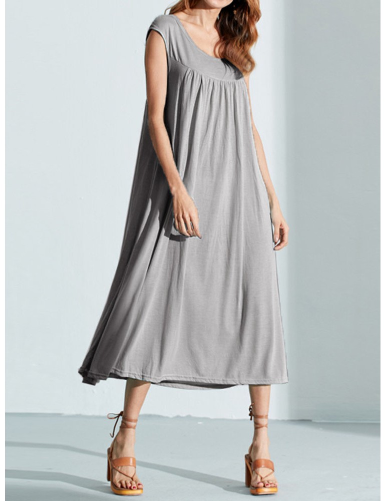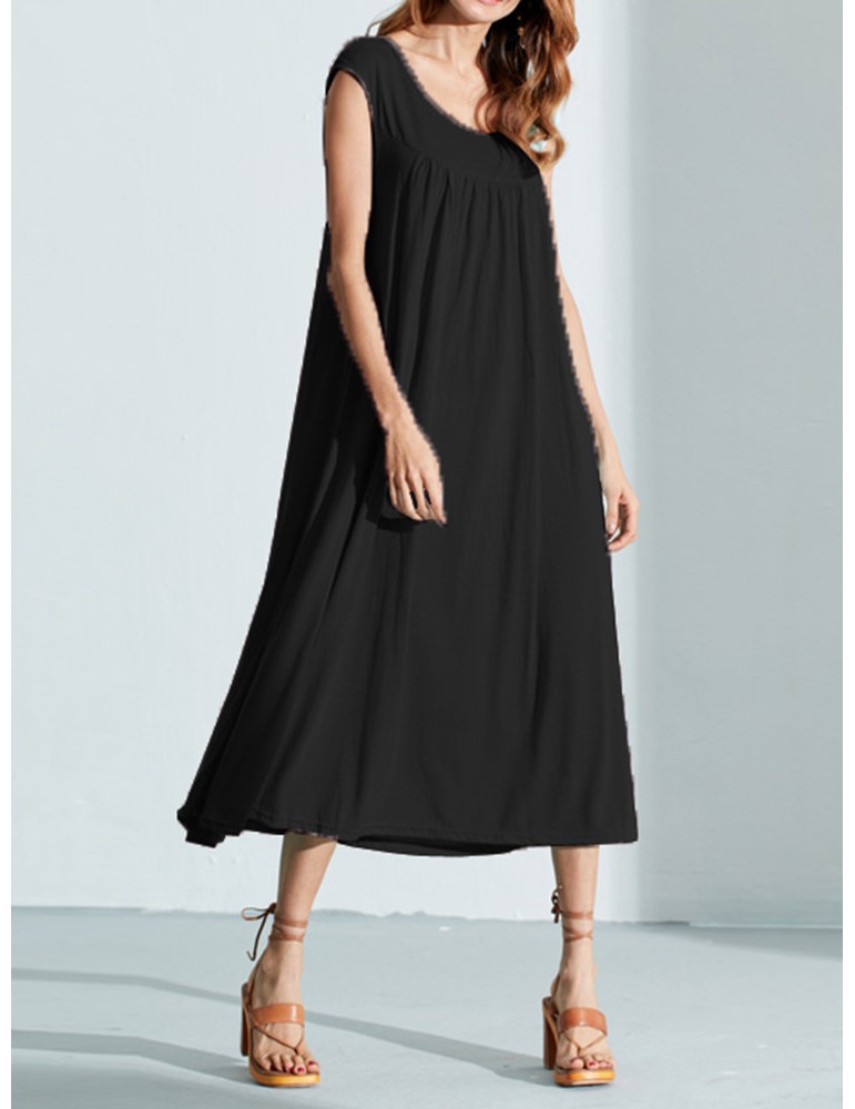 Solid Color Sleevelss U-neck Cotton Casual Dresses