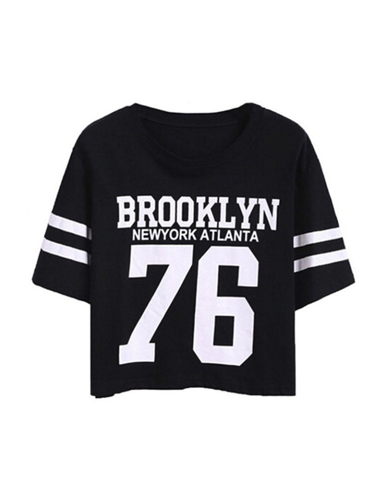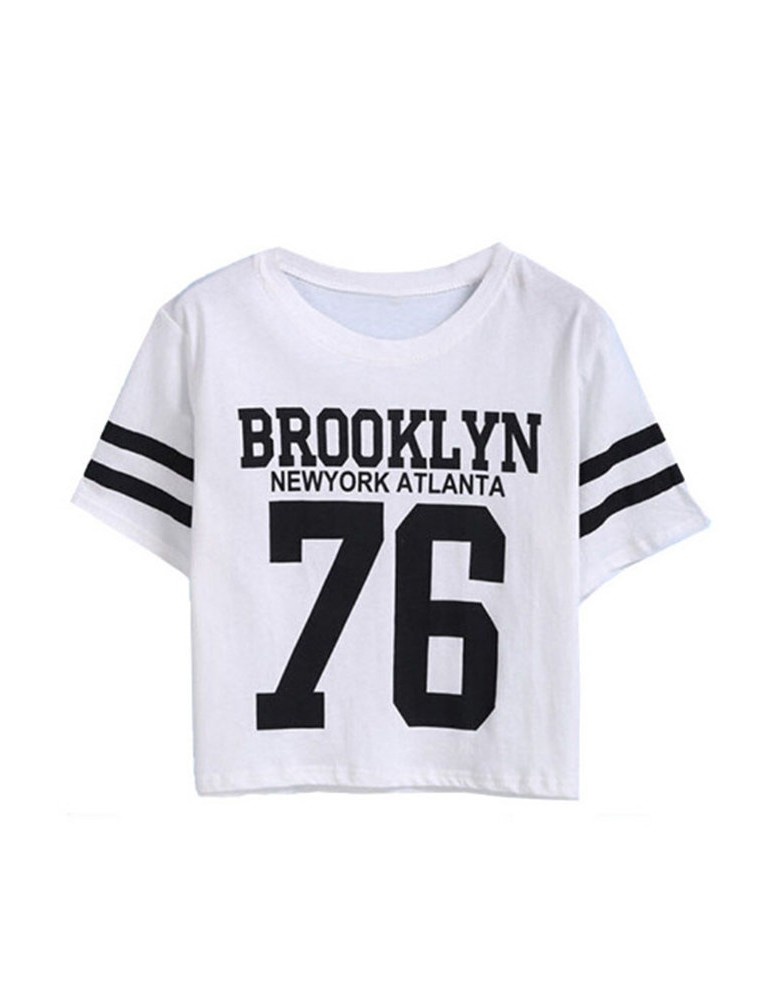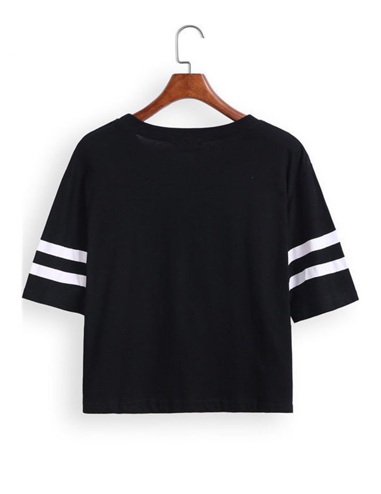 Stripe Letter Print Short Sleeve O-neck Casual T-shirts