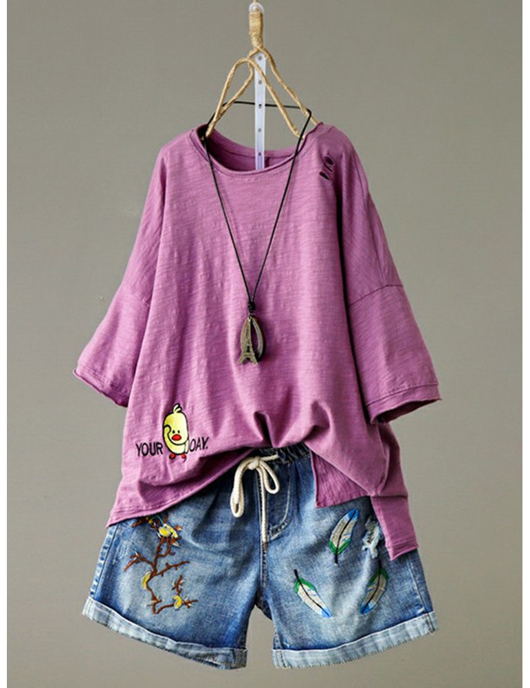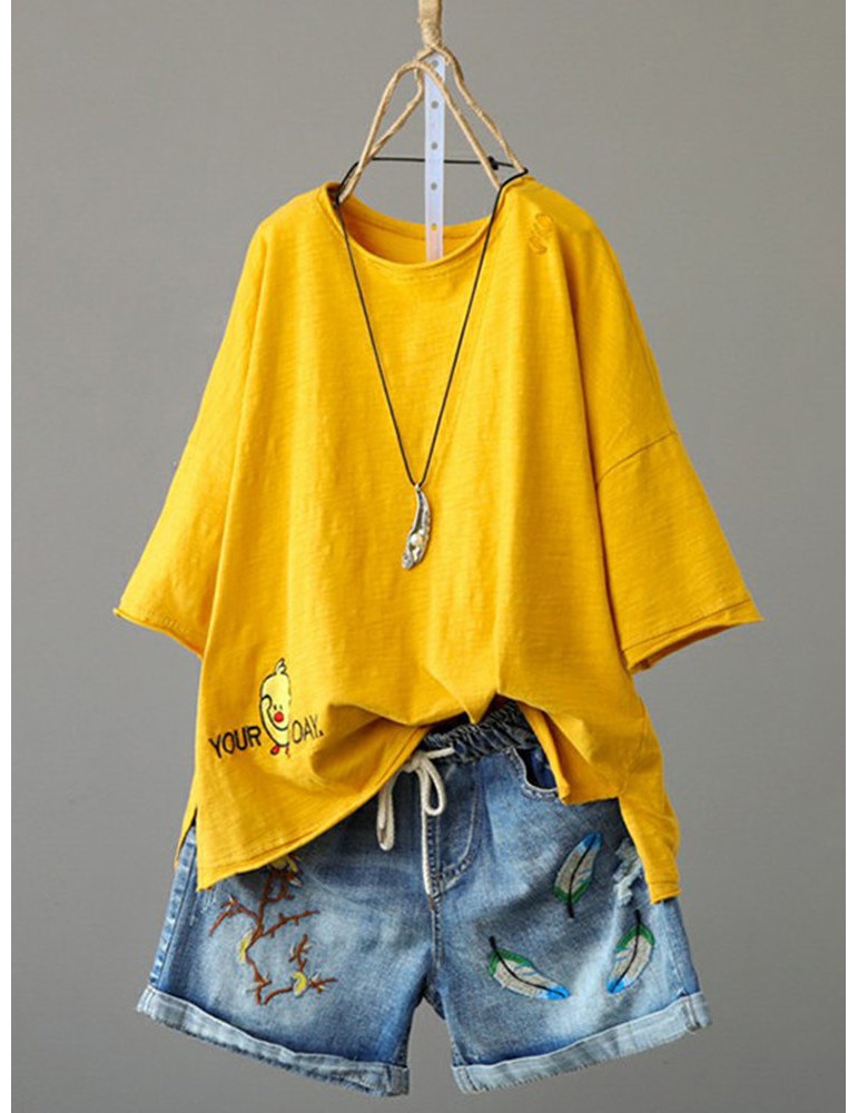 Cartoon Yellow Duck Print Casual Cute T-Shirt