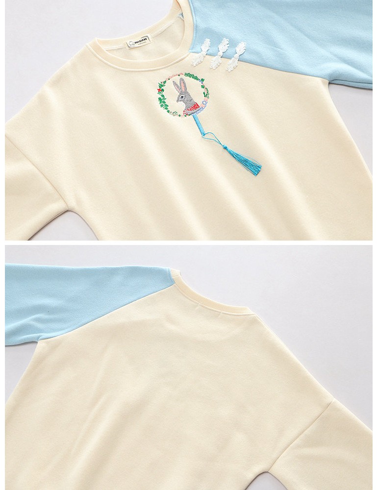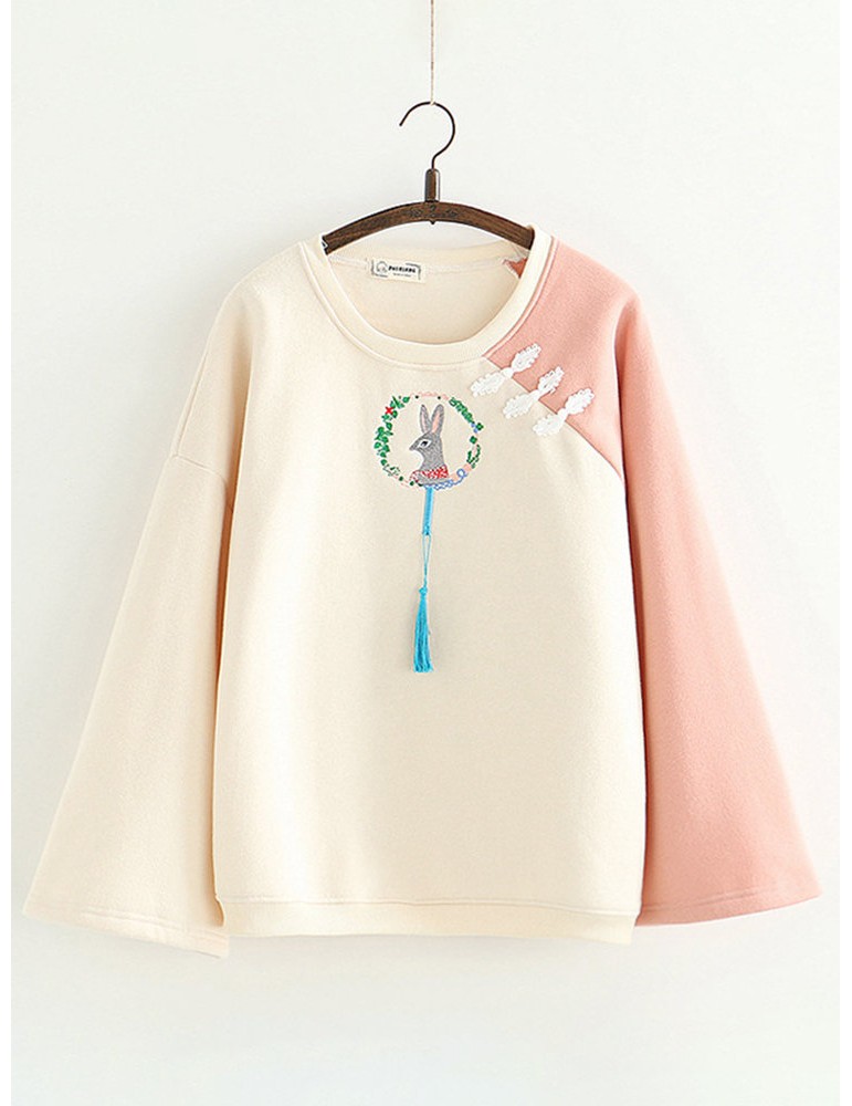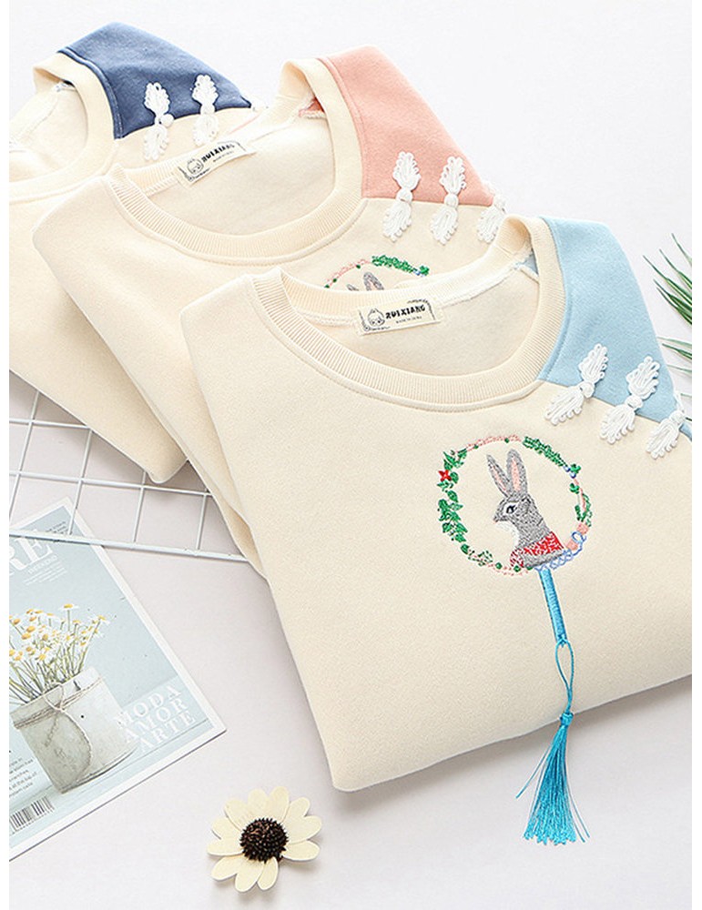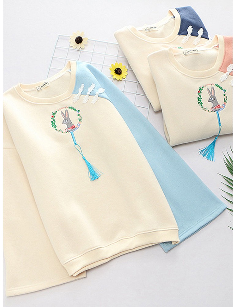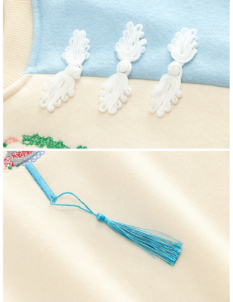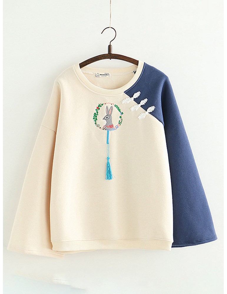 Women Vintage Patchwork Animal Print Frog Button Sweatshirt With Tassels