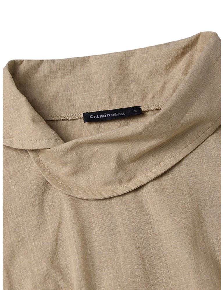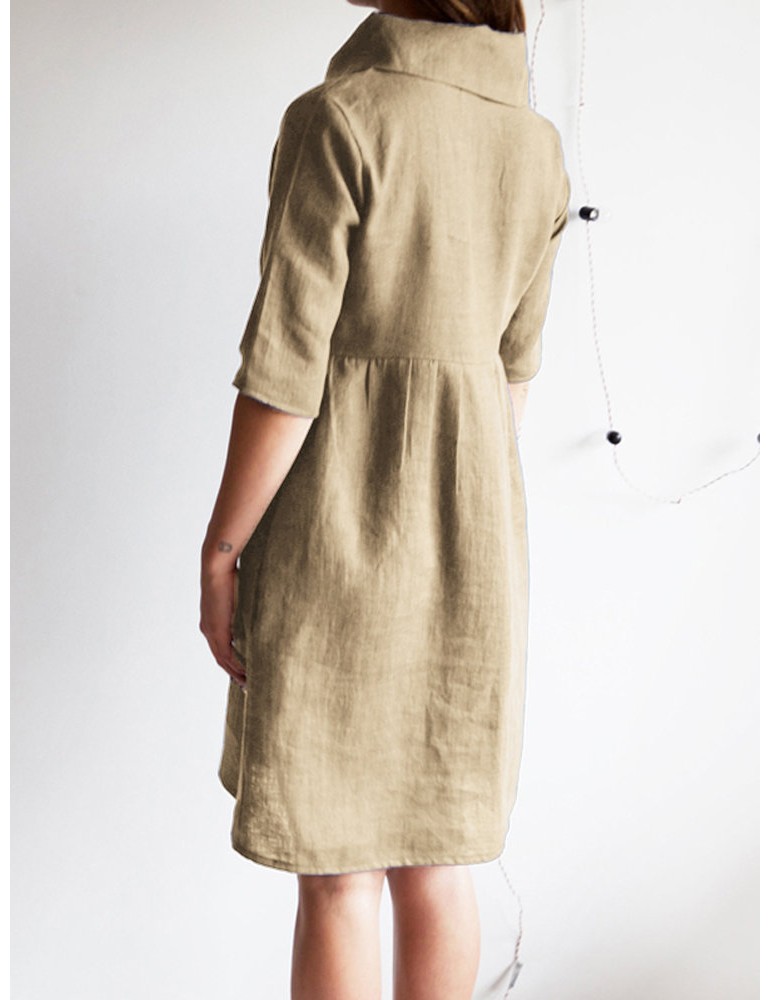Vintage Solid Color Heap Collar Half Sleeve Plus Size Dress