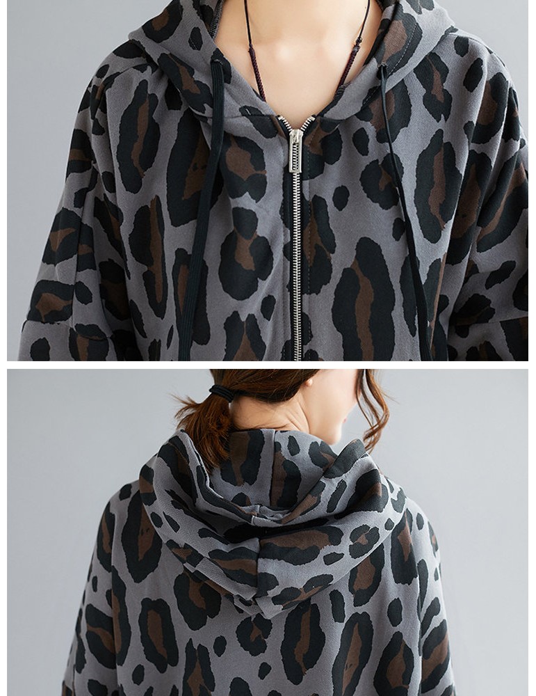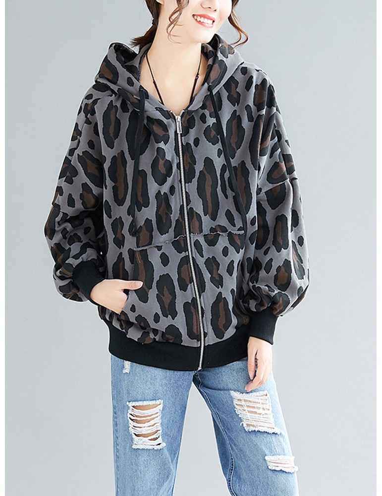 Casual Leopard Print Zipper Hooded Jacket for Women
