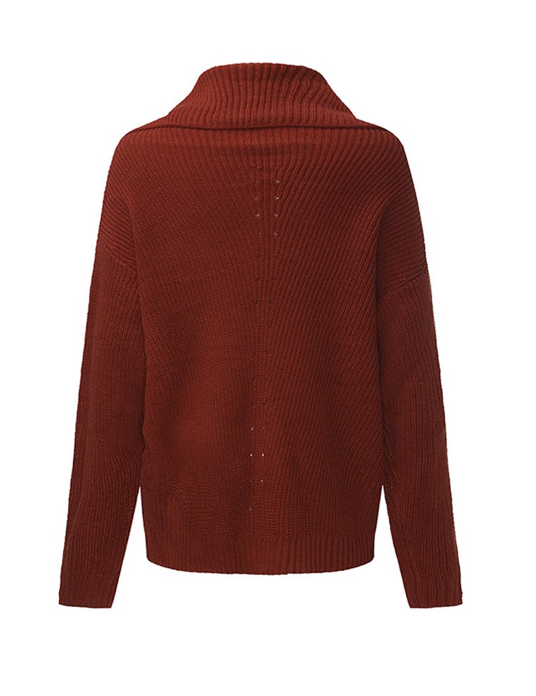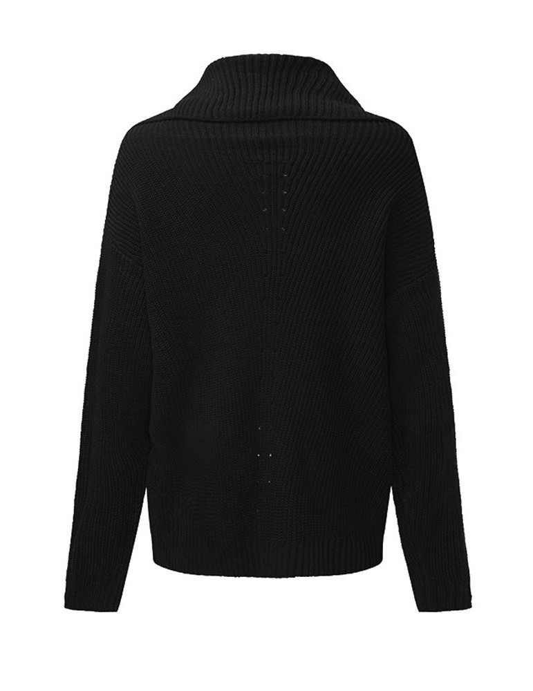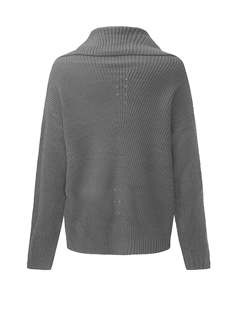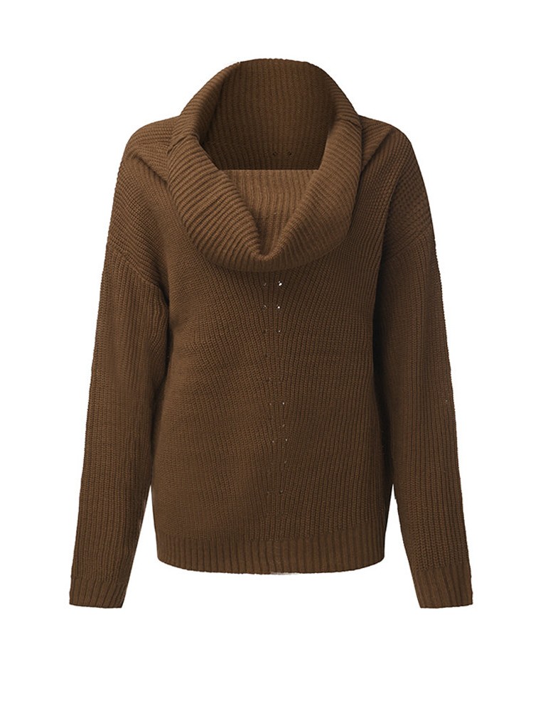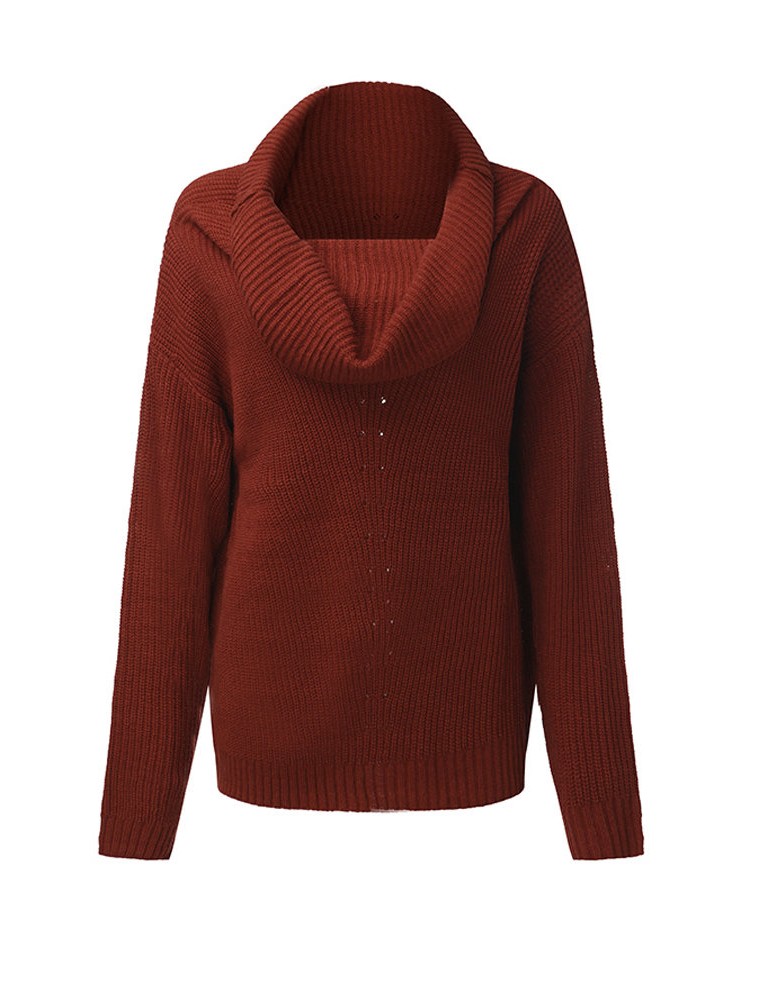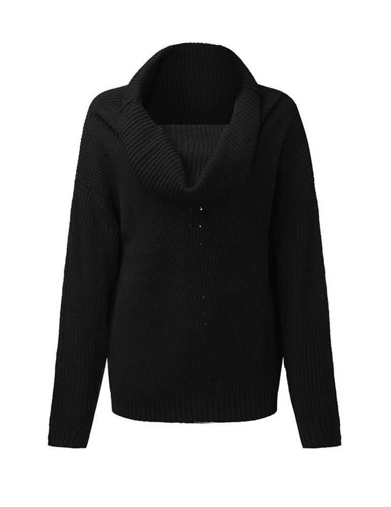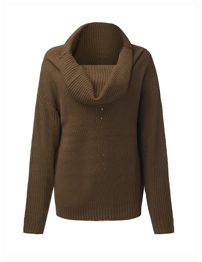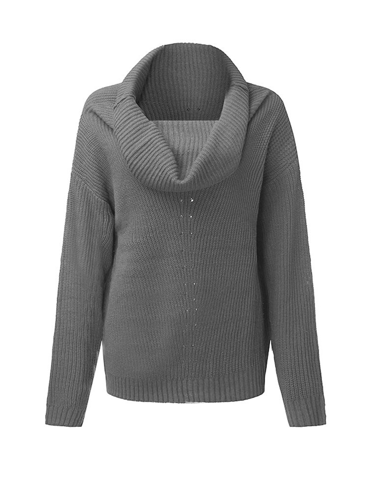 Casual Women Solid Long Sleeve Heap Collar Knitted Sweater