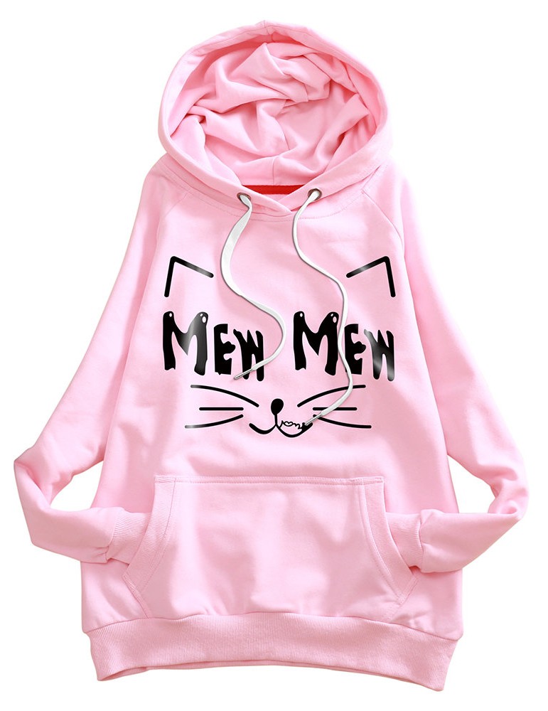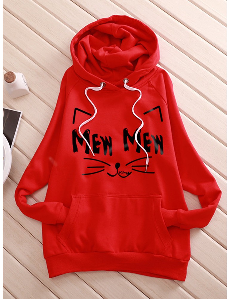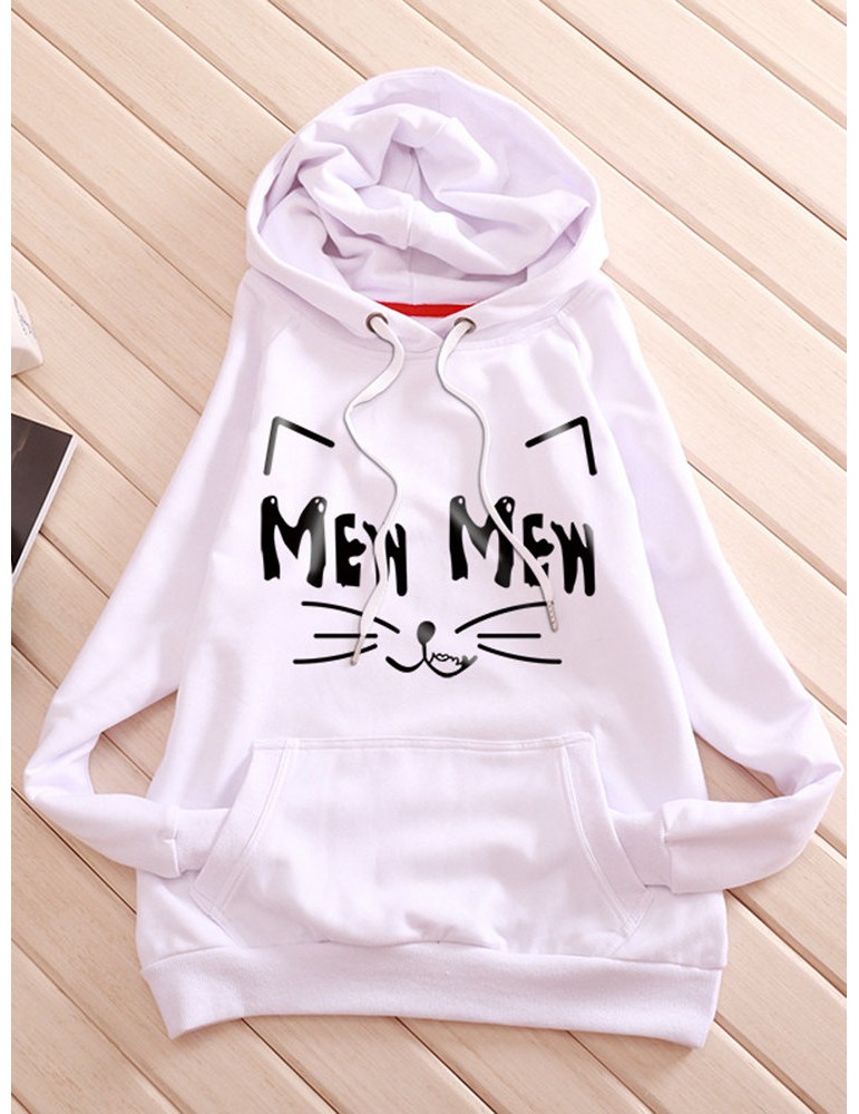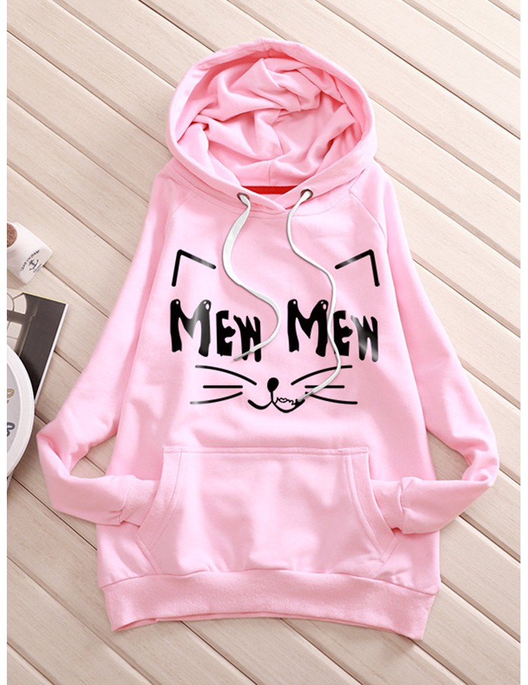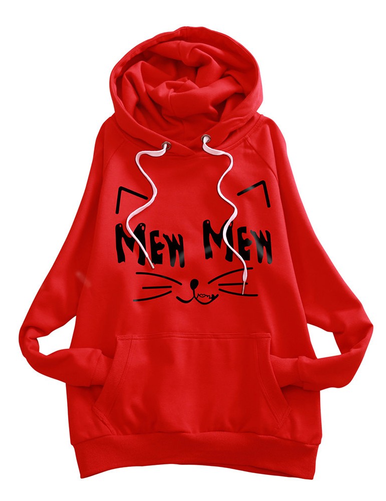 Women Cat Printed Hooded Long Sleeve Hoodies