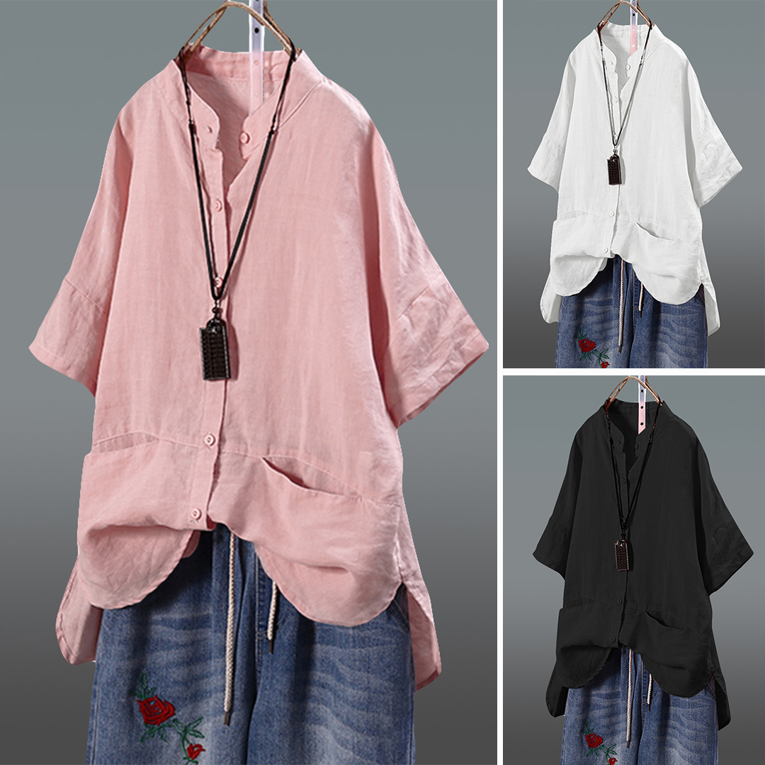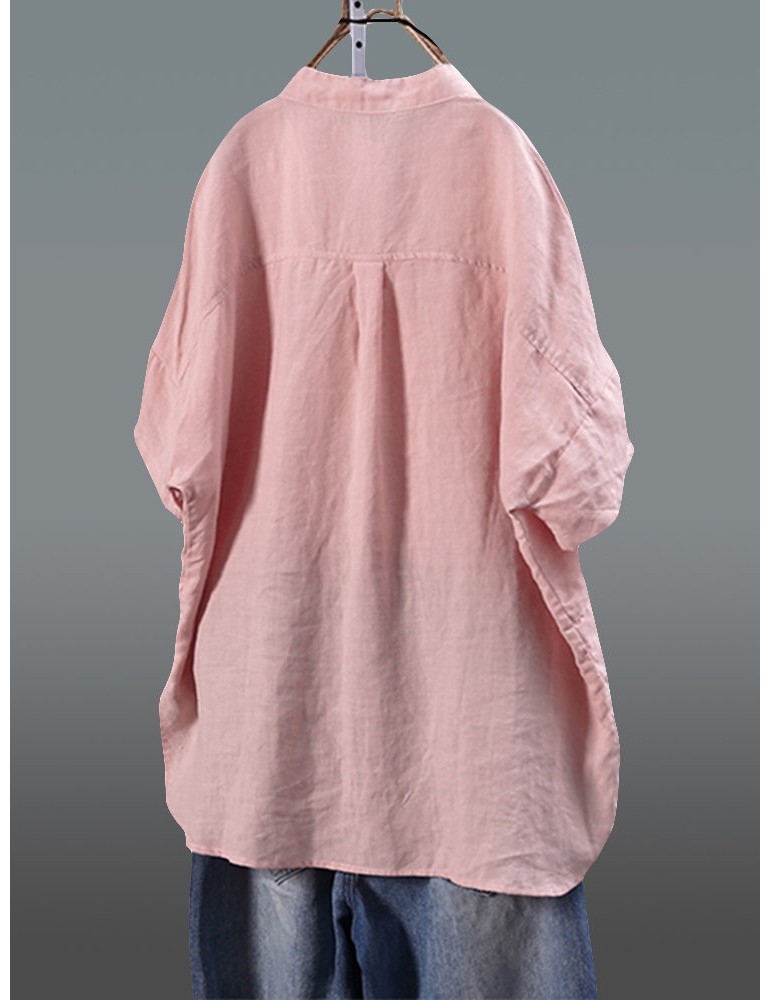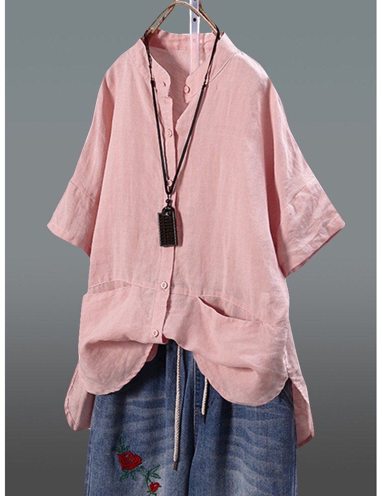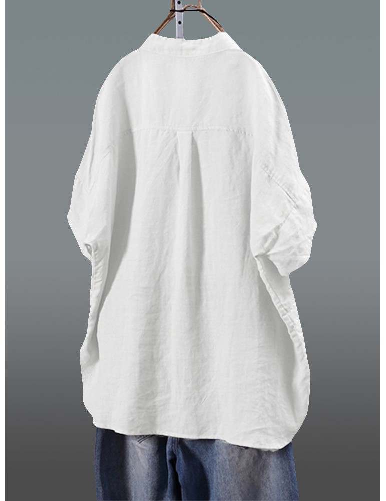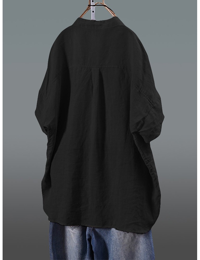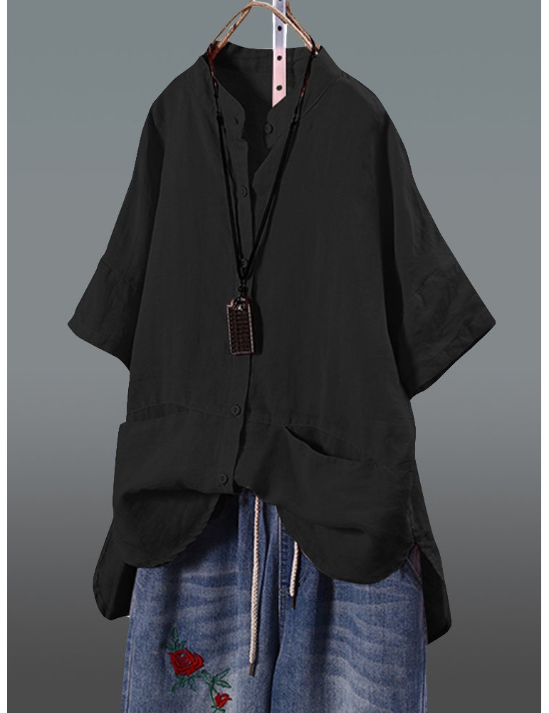 Vintage Solid Color Pocket 3/4 Sleeve Plus Size Shirt