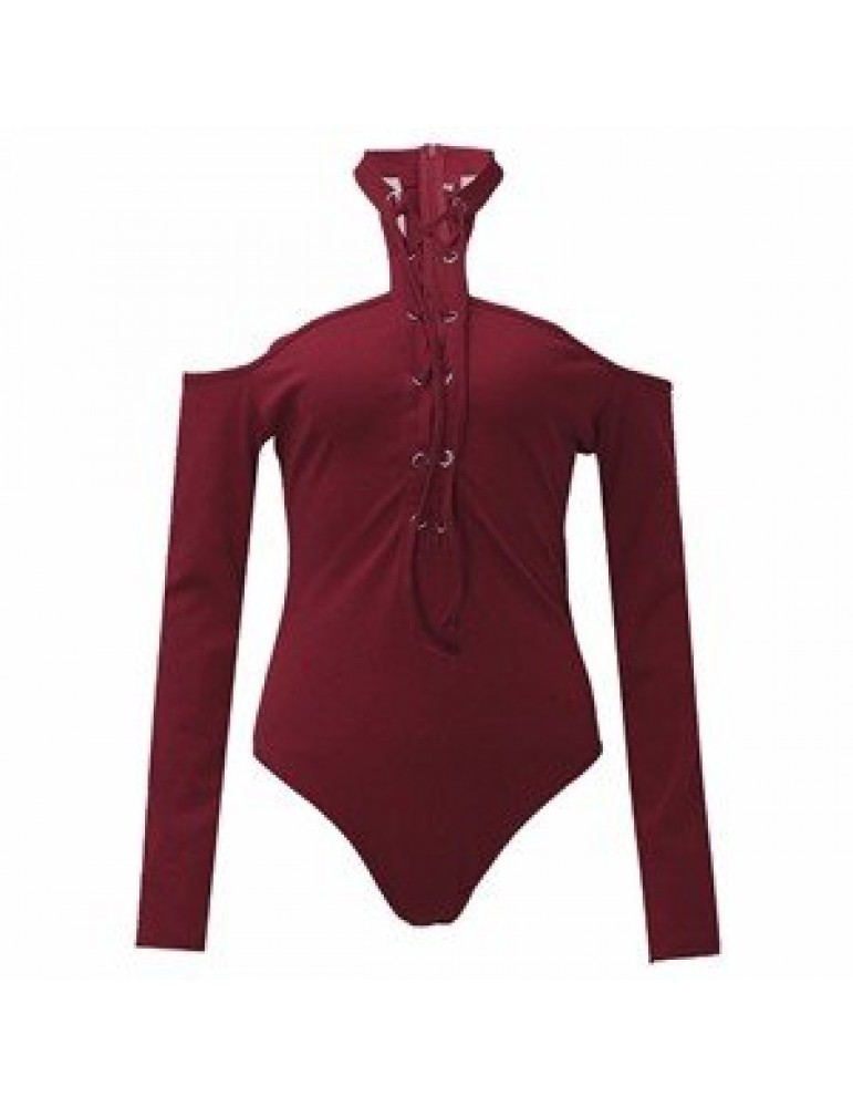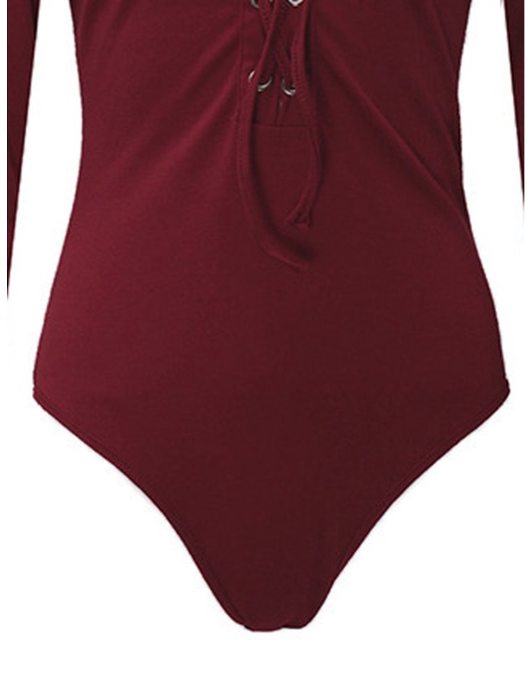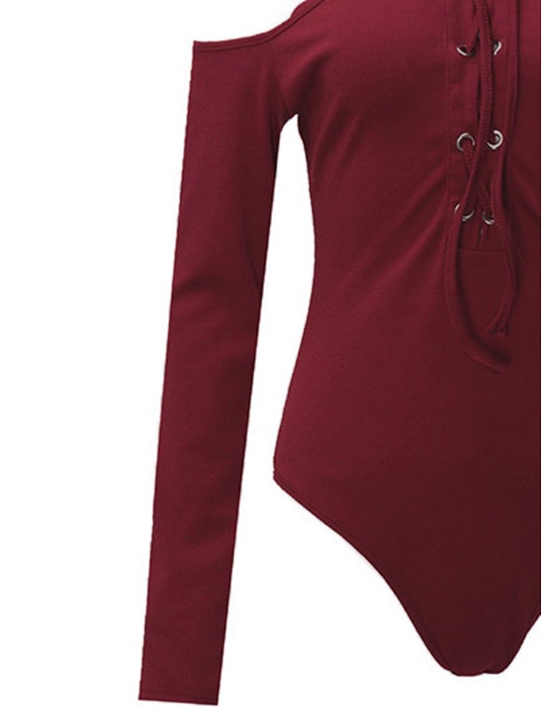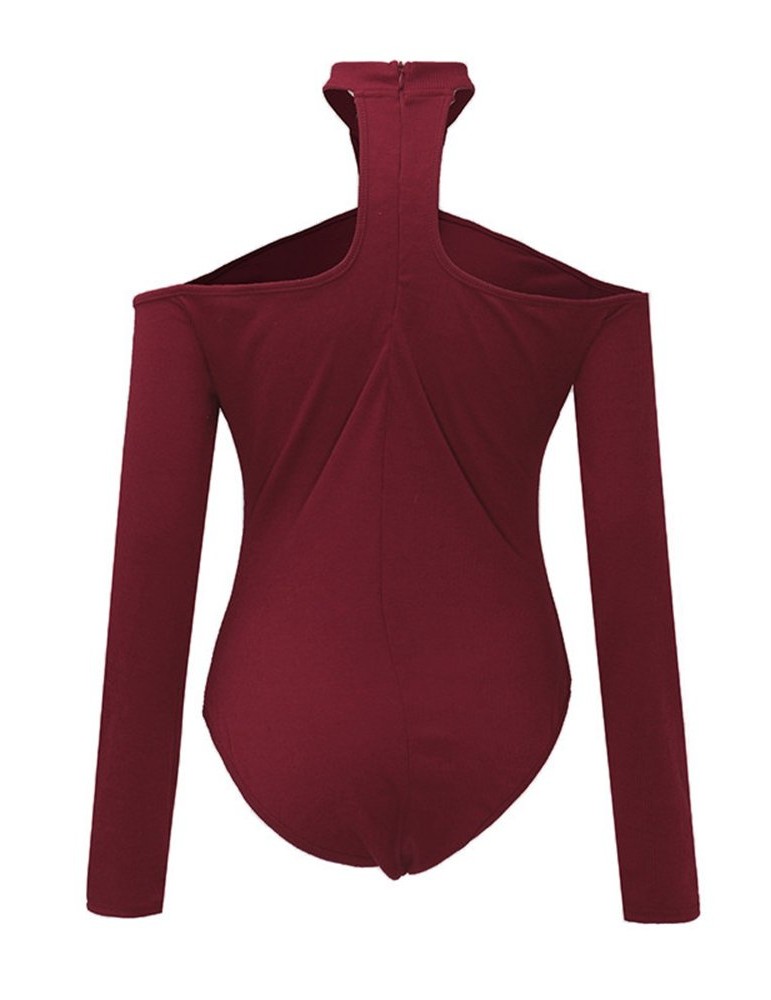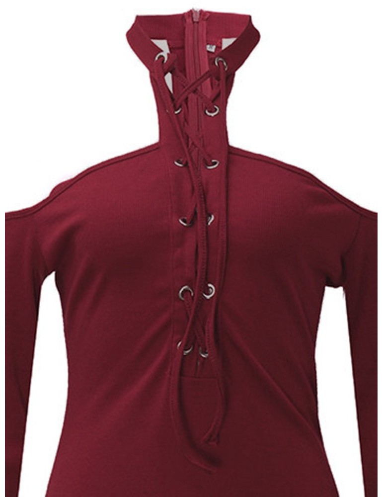 Women Sexy Cross Strap Off-shoulder Long Sleeve Jumpsuit