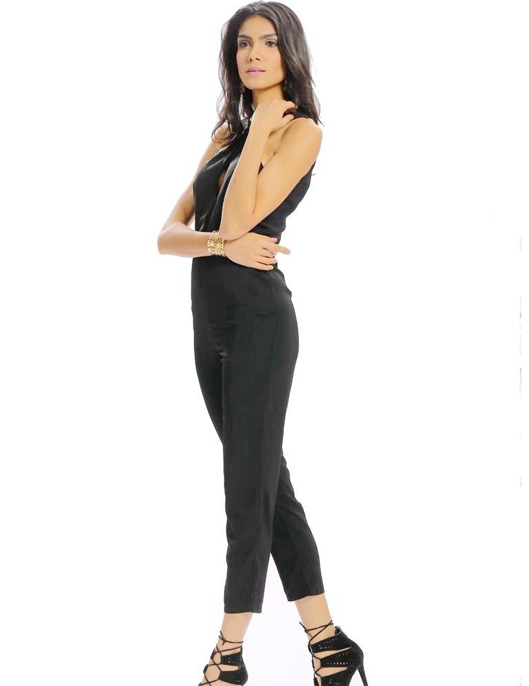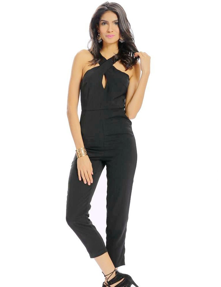 Women Casual Halter Collar Backless Hollow High Waist Jumpsuit