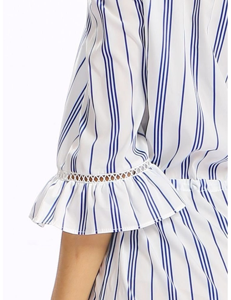 Women Casual Stripe Print Off Shoulder Half Sleeve jumpsuit