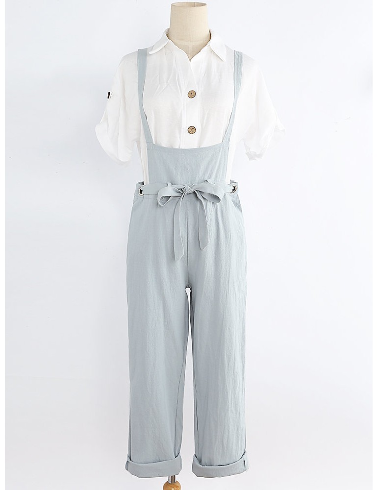 Casual Adjustable Strap Hip Pockets Solid Color Jumpsuit