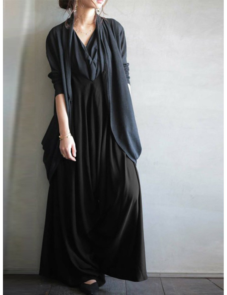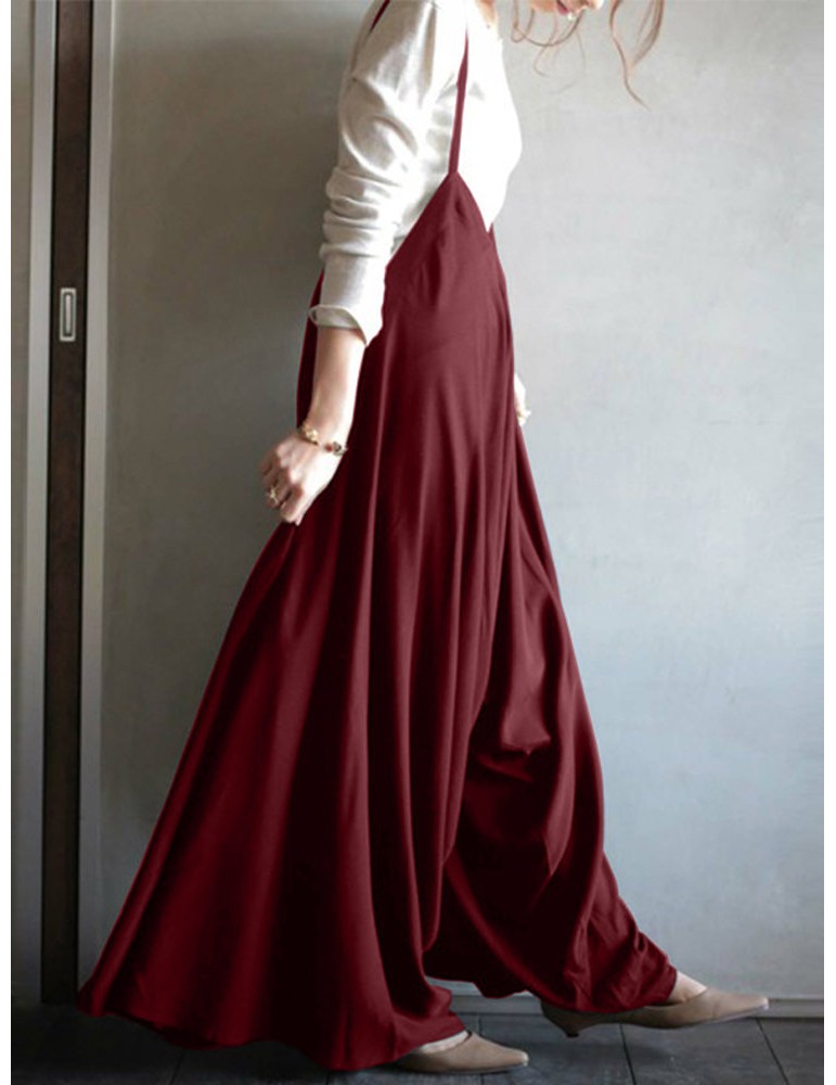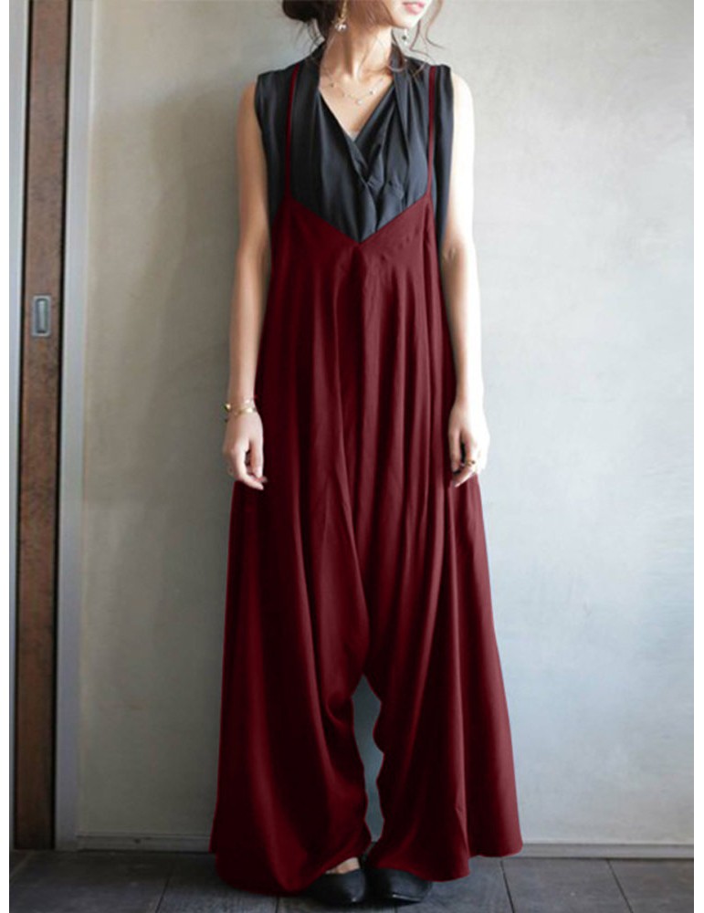 Spaghetti Strap Solid Color Wide Leg Loose Casual Romper