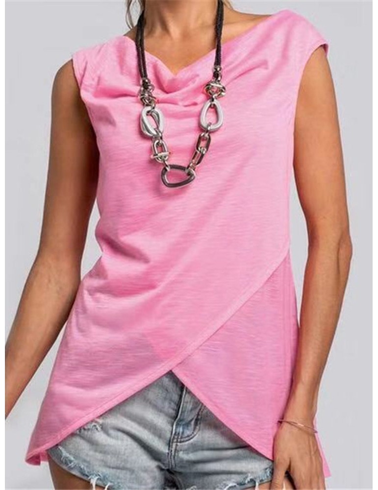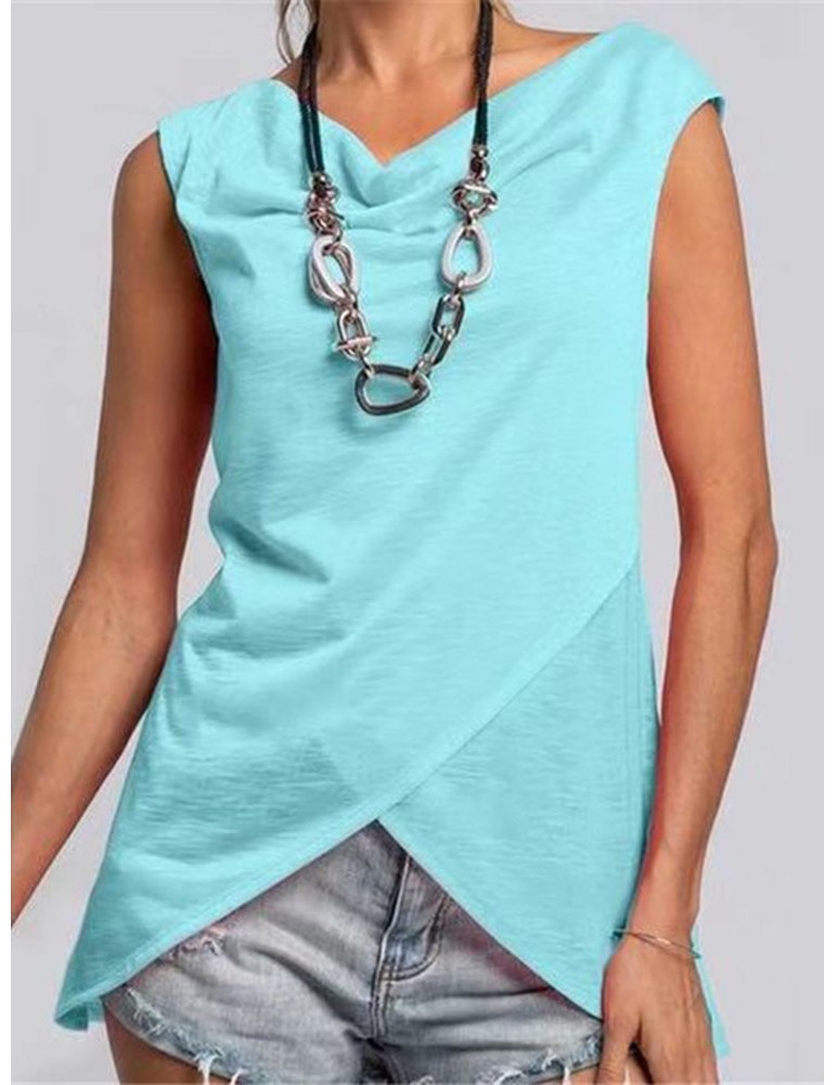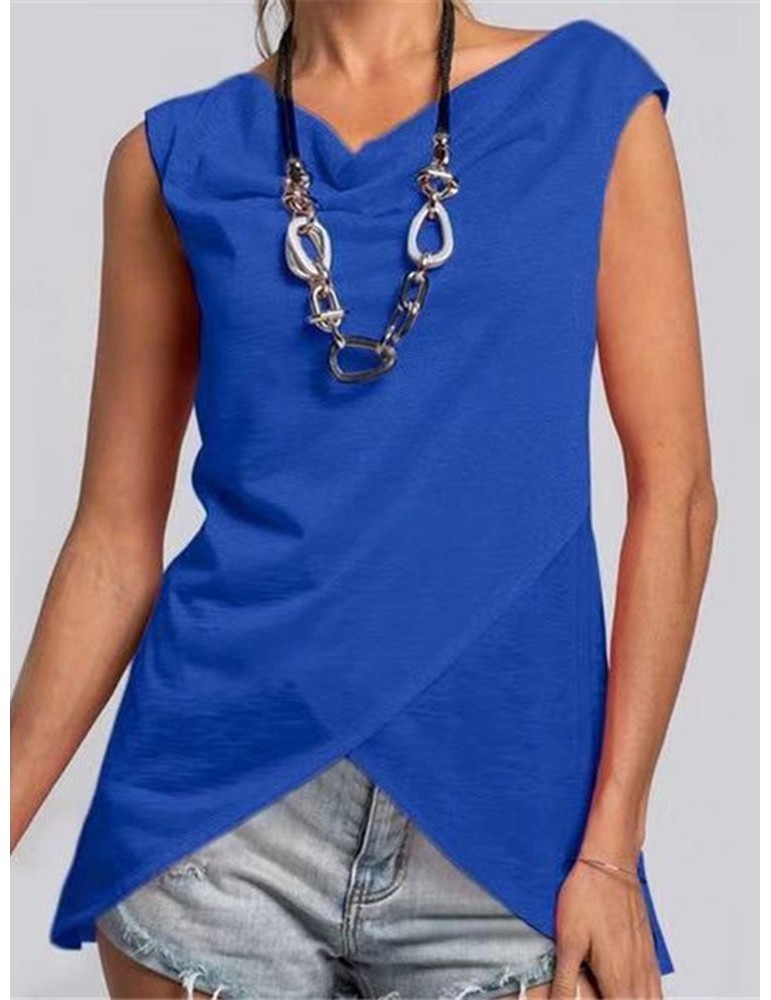 Asymmetrical Hem Sleeveless Solid Color Casual T-Shirt