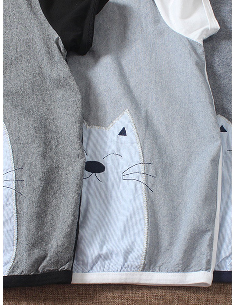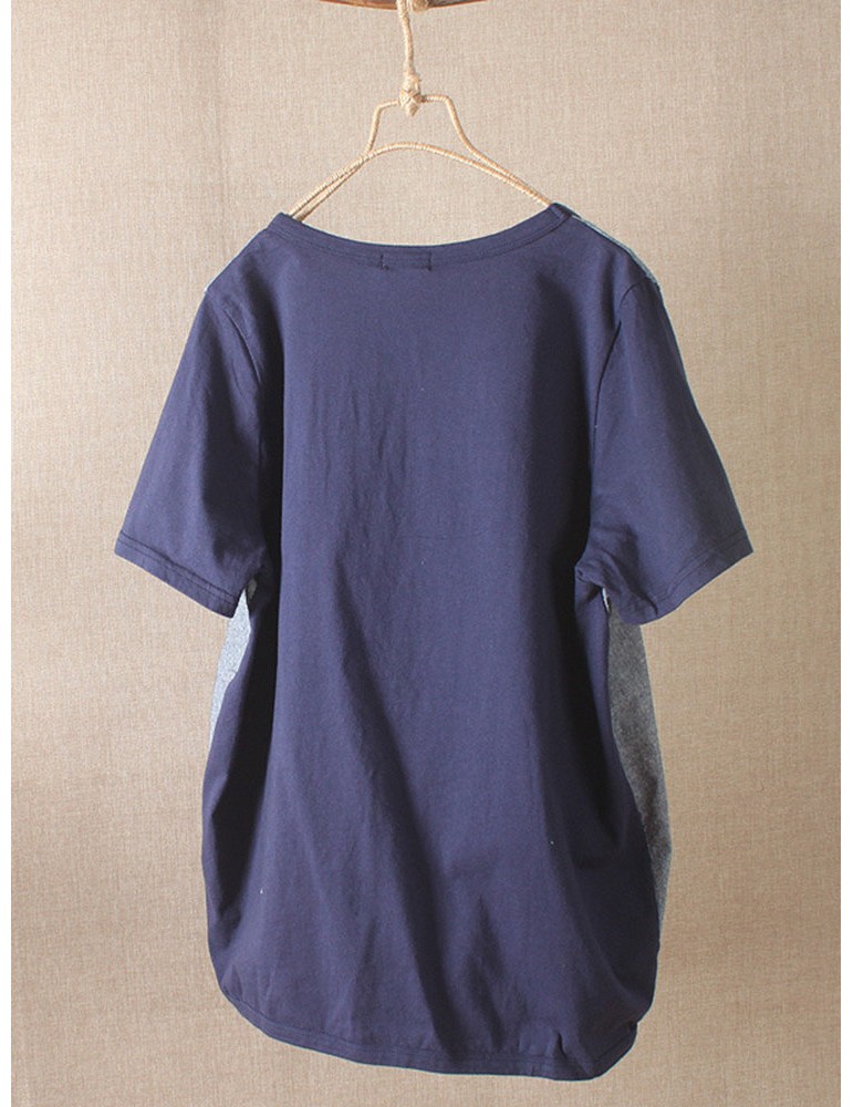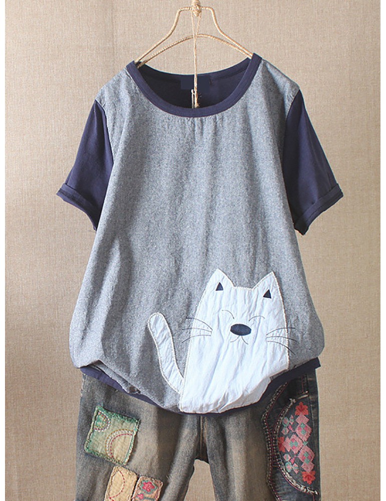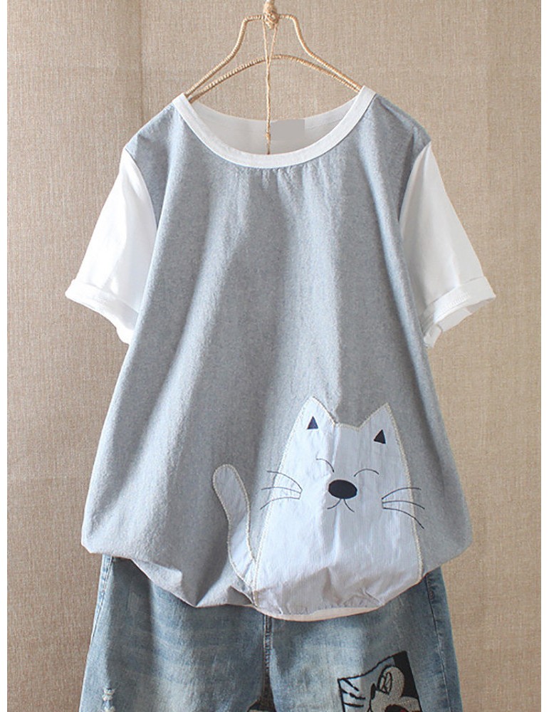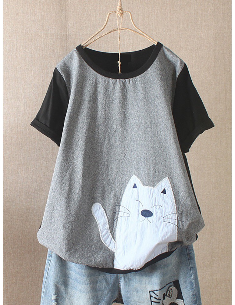 Casual Cartoon Annimal Patchwork Short Sleeve Overhead T-Shirt