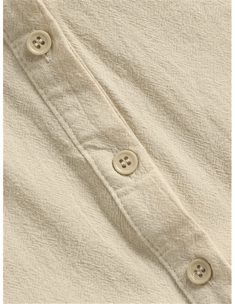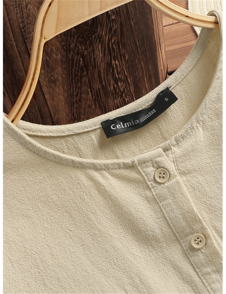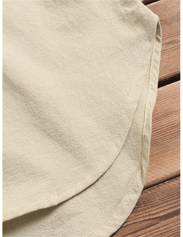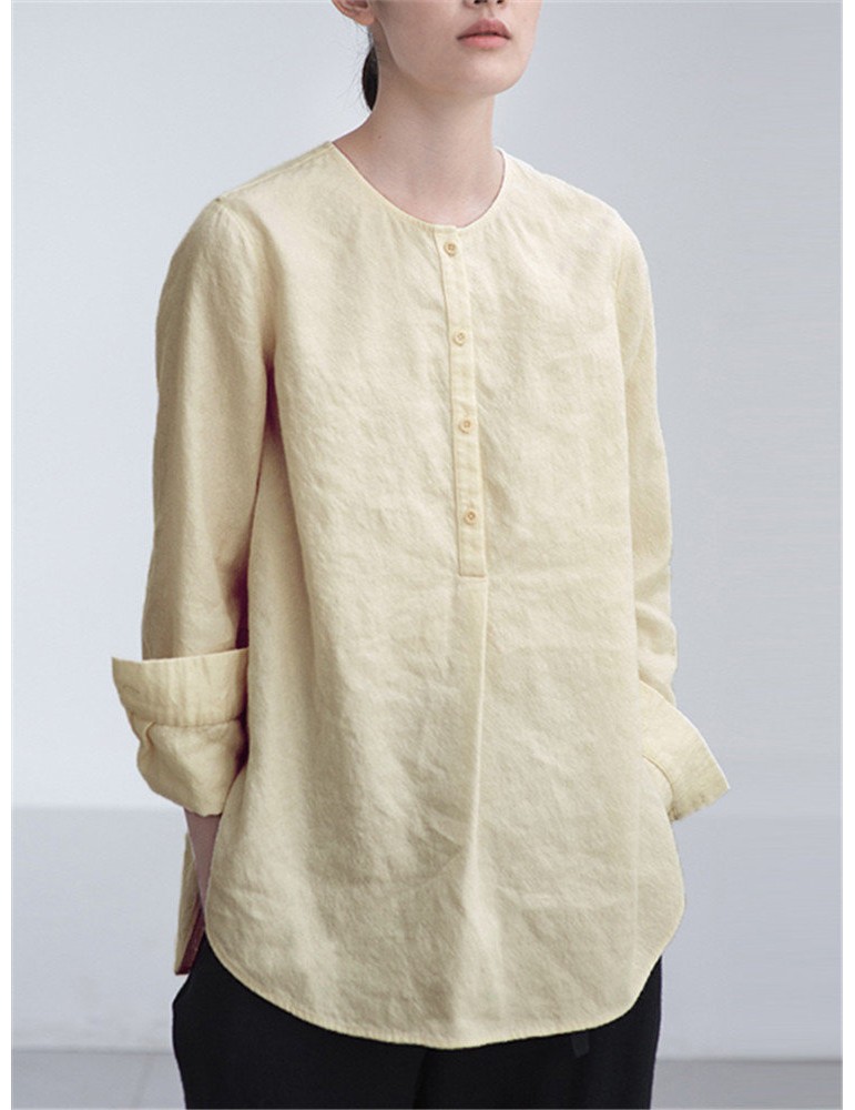 Casual Long Sleeve Button Crew Neck Cotton Shirt