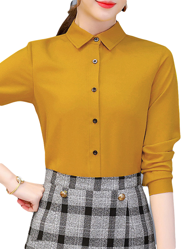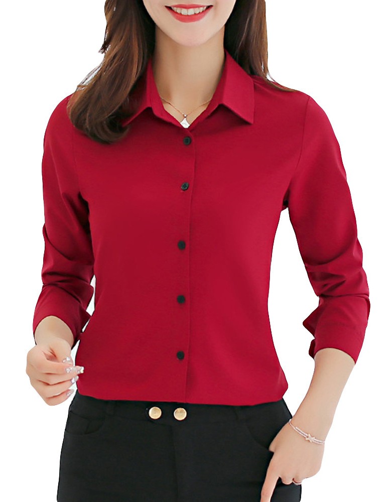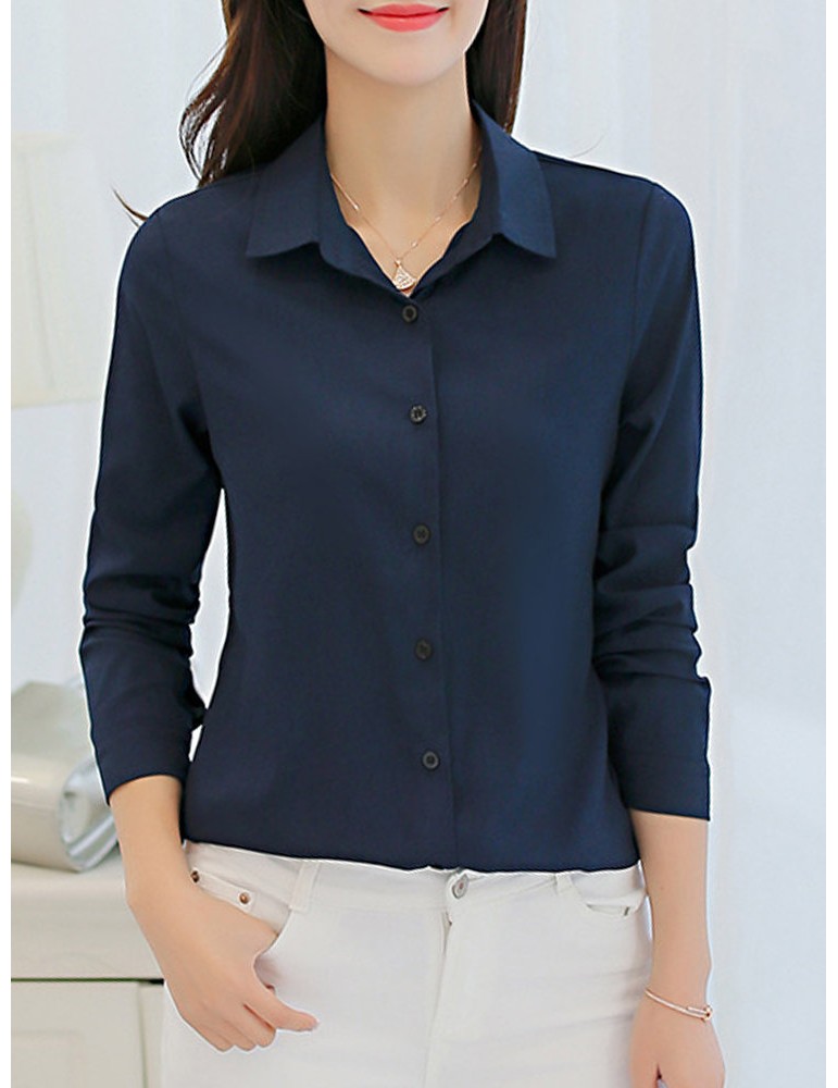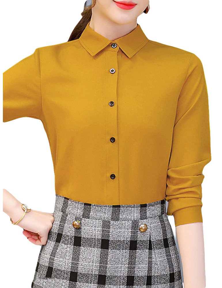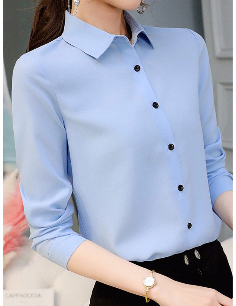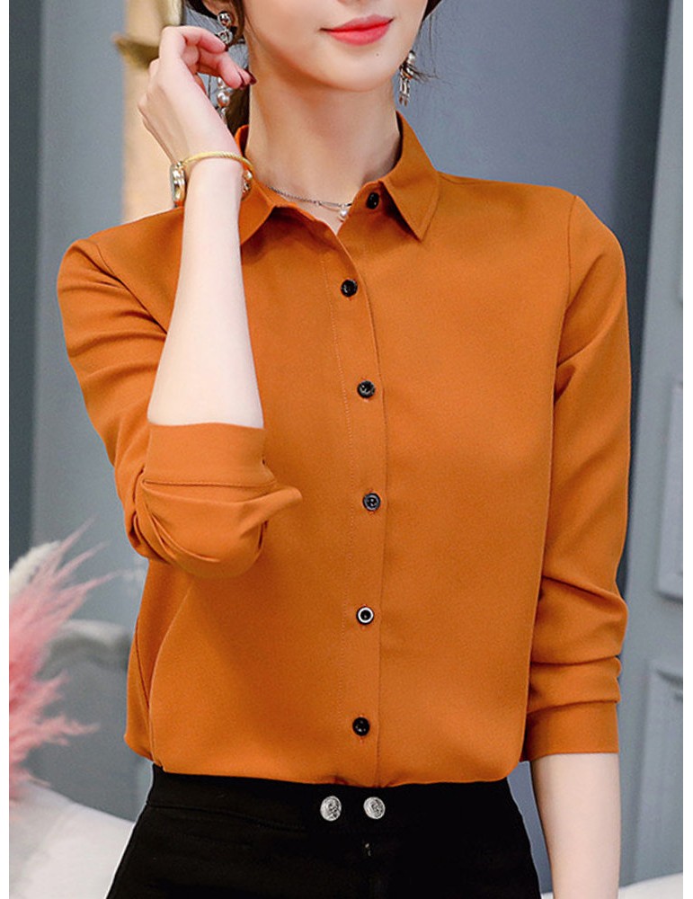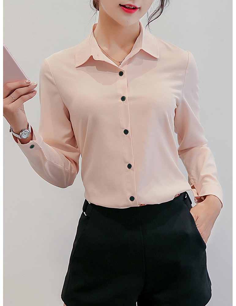 Solid Color Long Sleeve Turn-down Collar Shirts