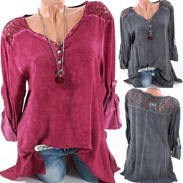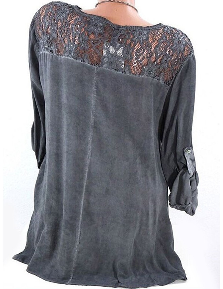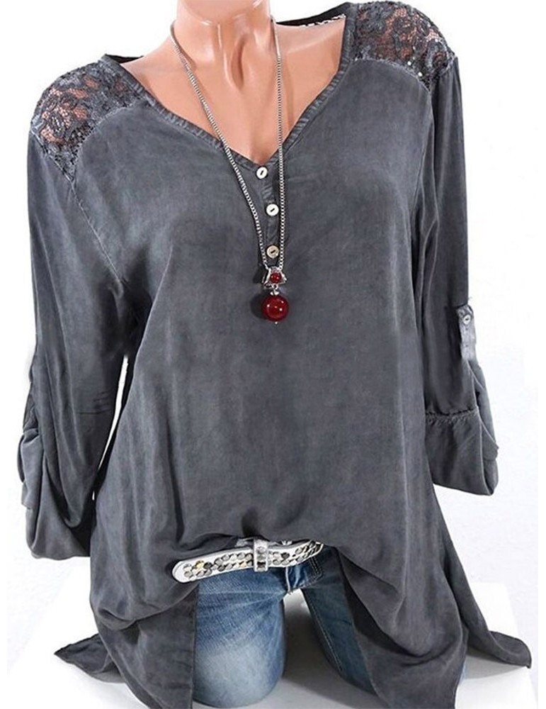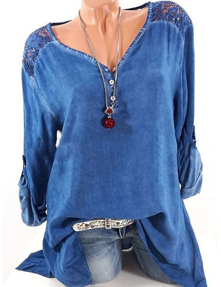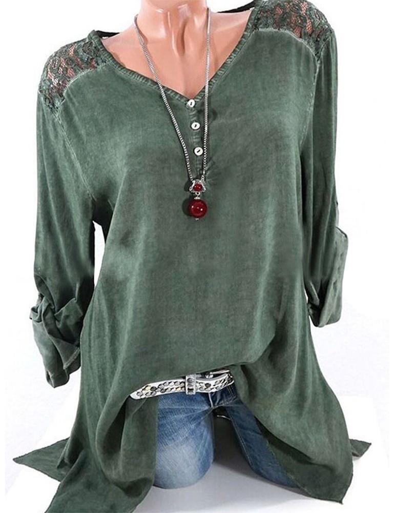 Casual Lace Patchwork Hollow Irregular Long Sleeve Blouses For Women