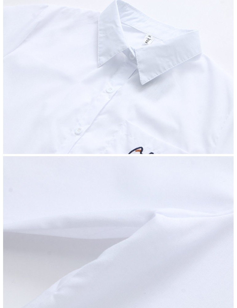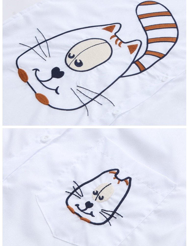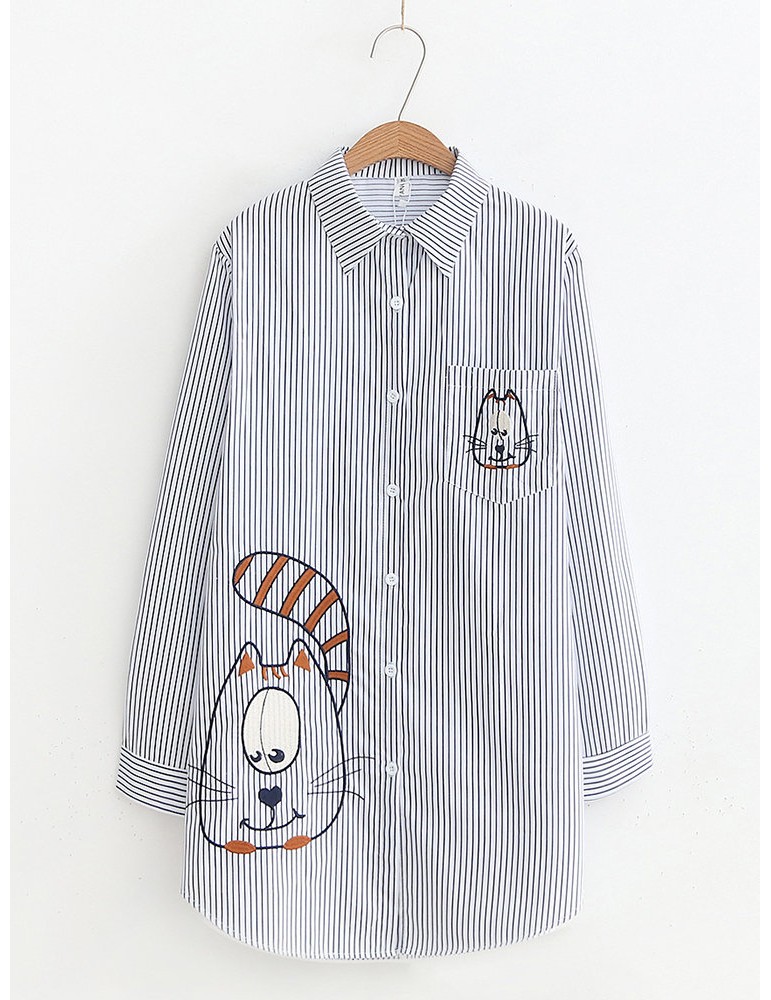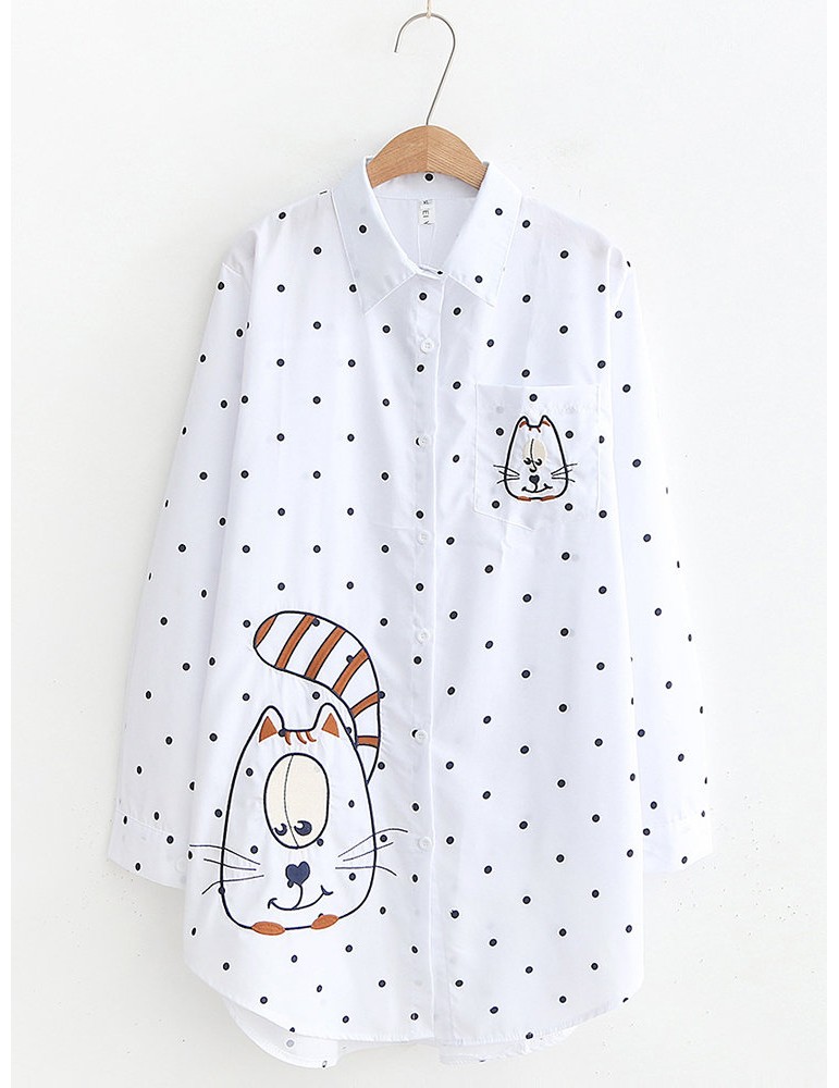 Loose Cat Print Long Sleeve Turn Down Collar Long Shirt
