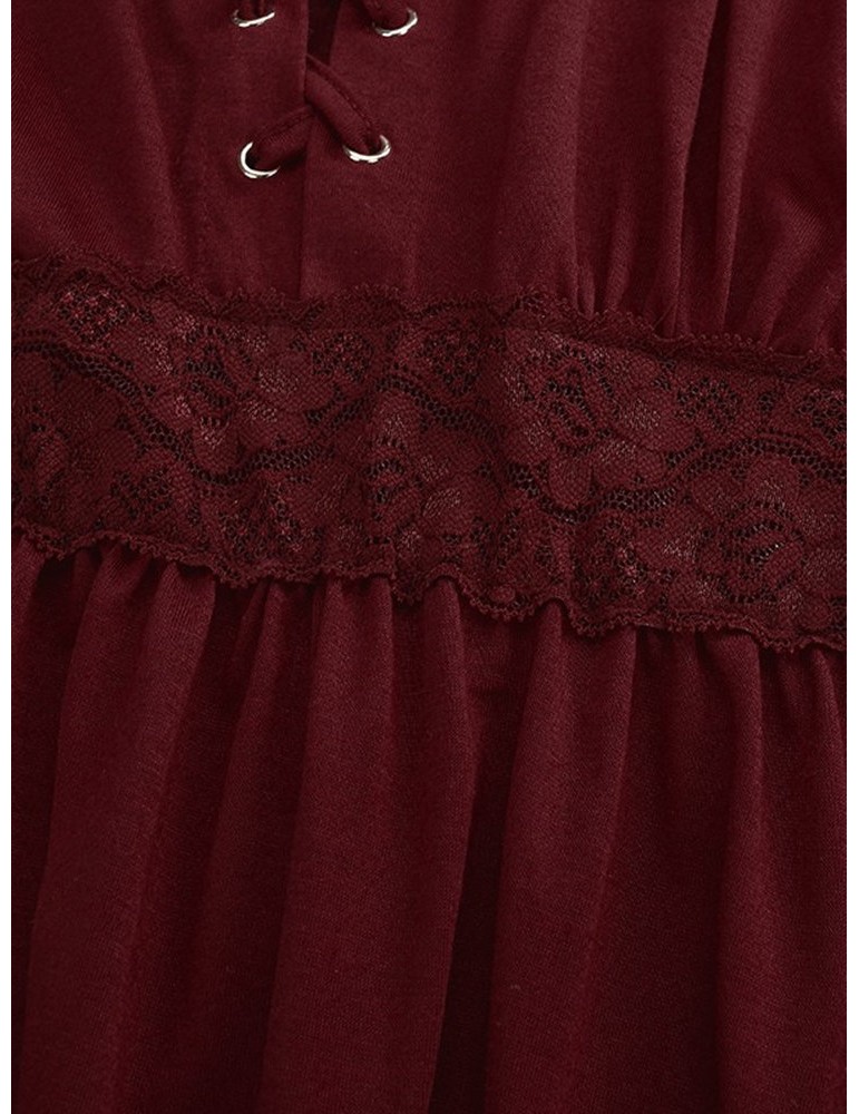 Women V-Neck Lace-up Floral Peplum Long Sleeve Shirts