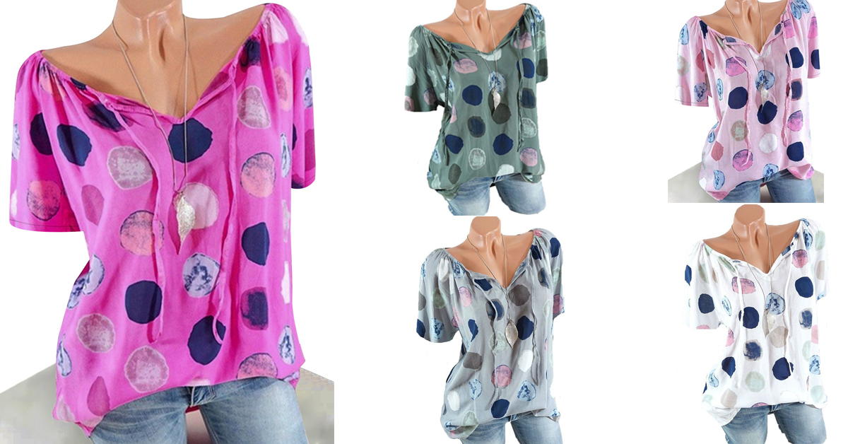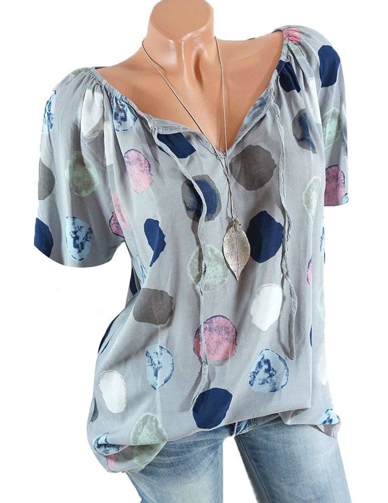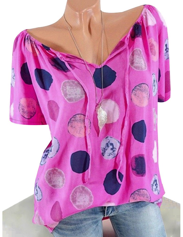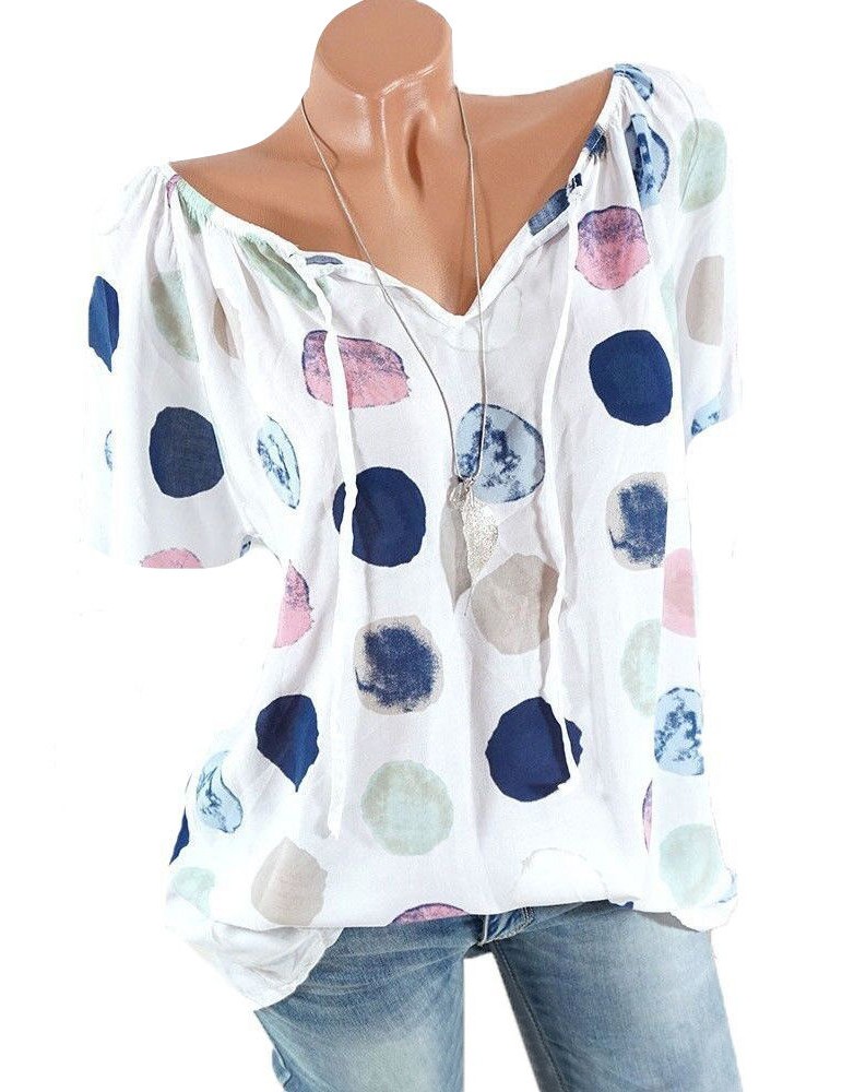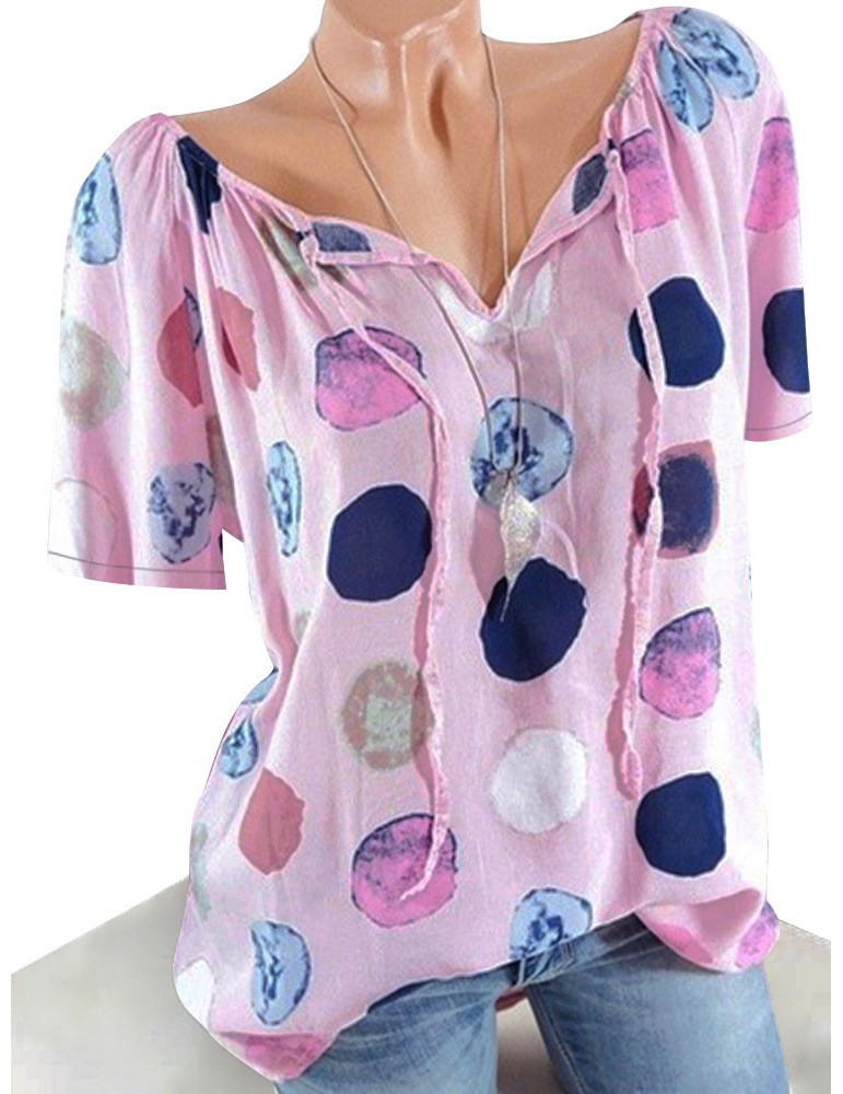 Polka Dots Short Sleeve V-neck Casual Shirts