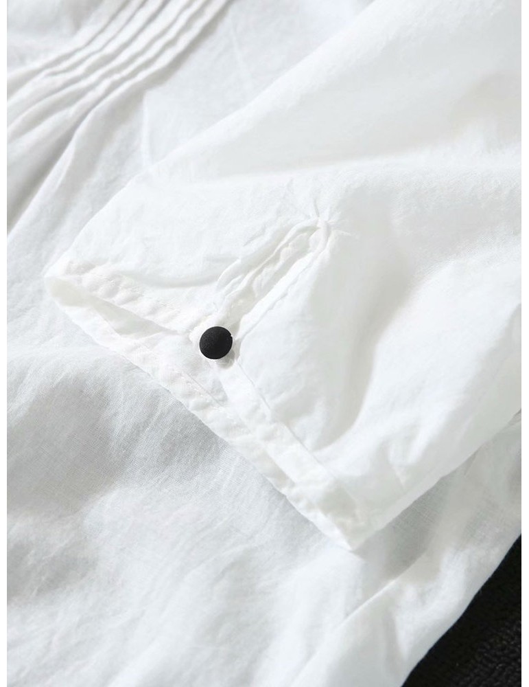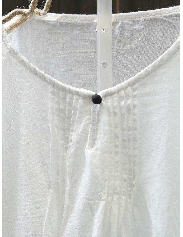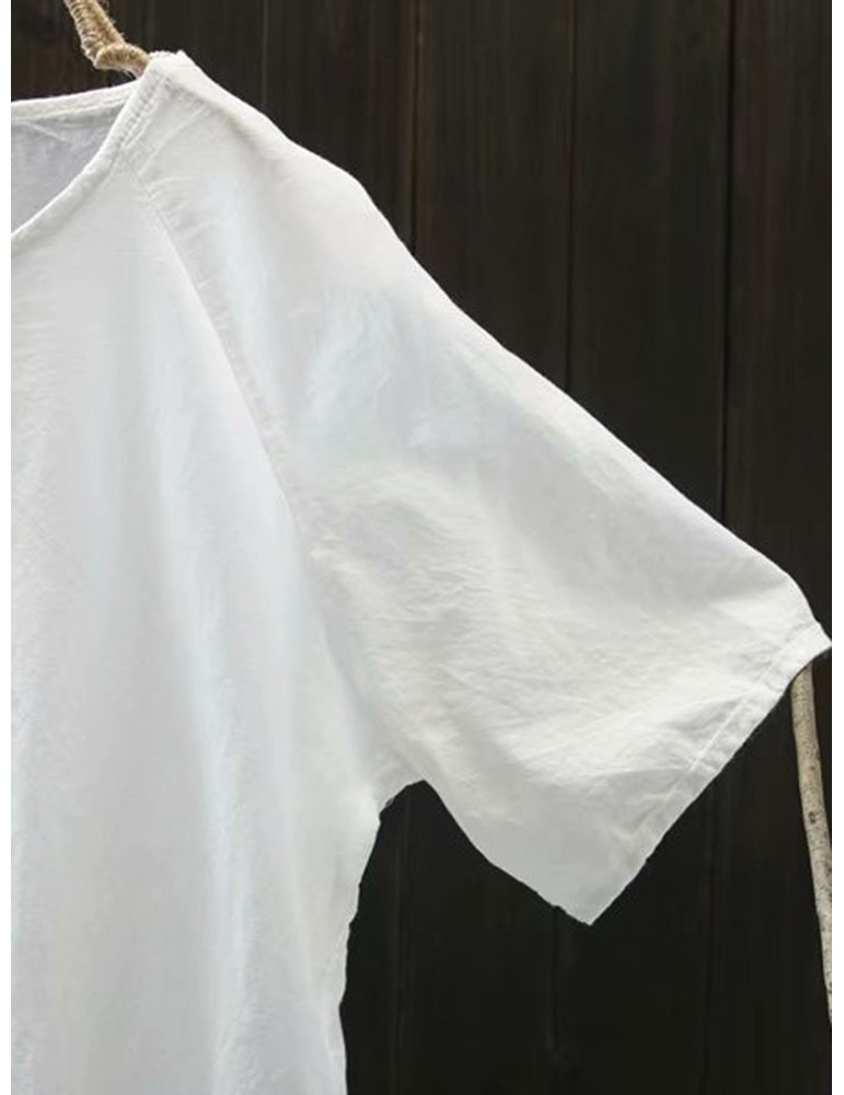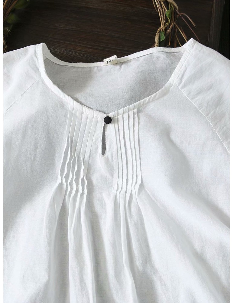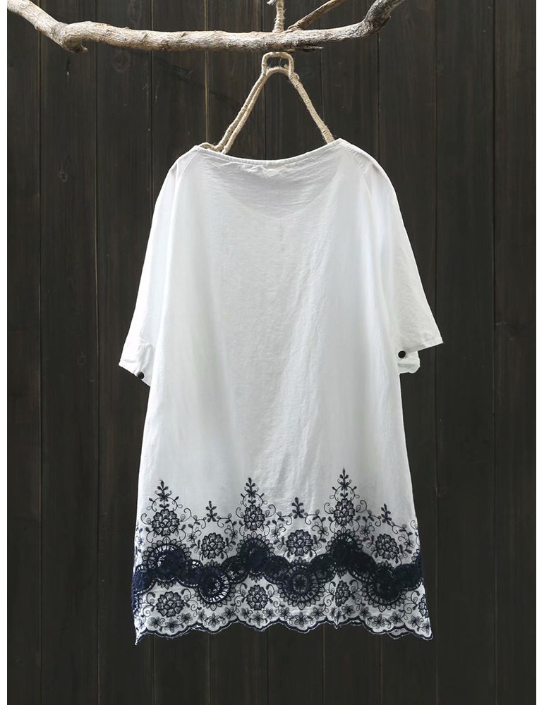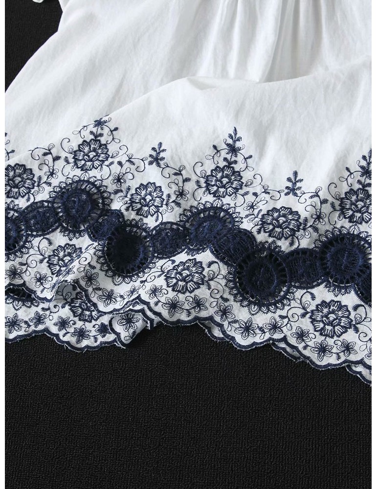 Print Embroidery Pleated Collar Raglan Short Sleeve Blouse