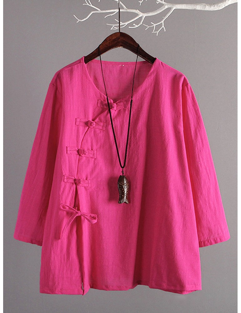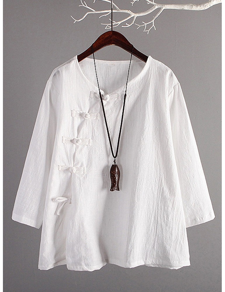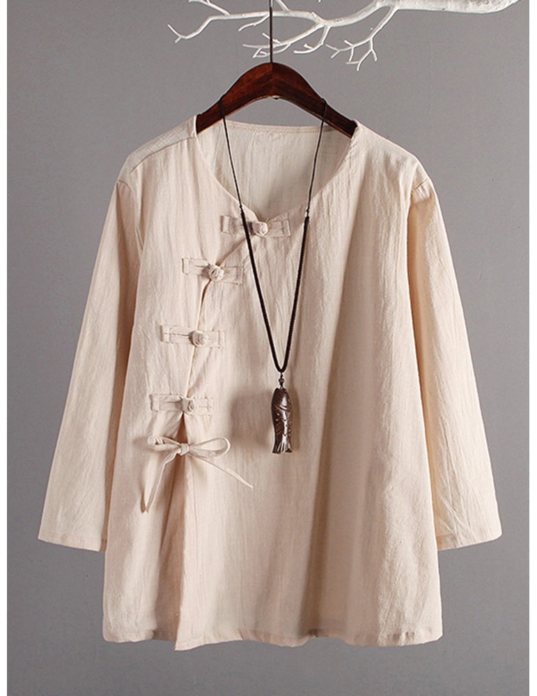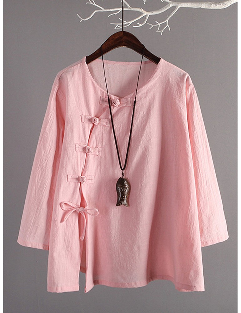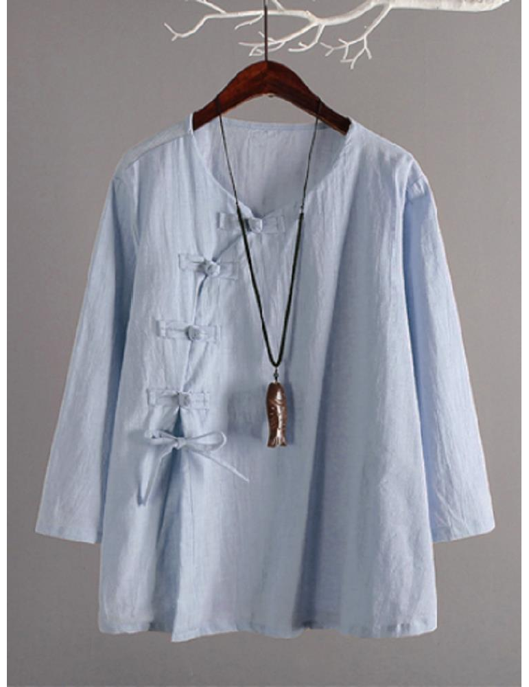 Vintage Cross-body Buckle Solid Color Shirts