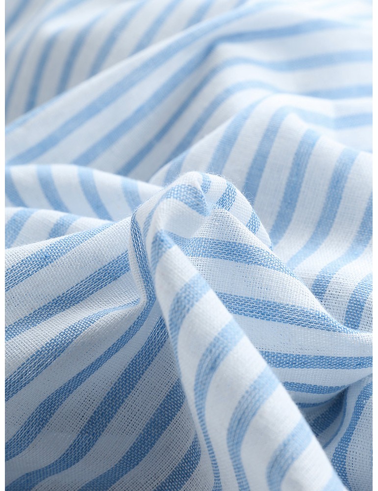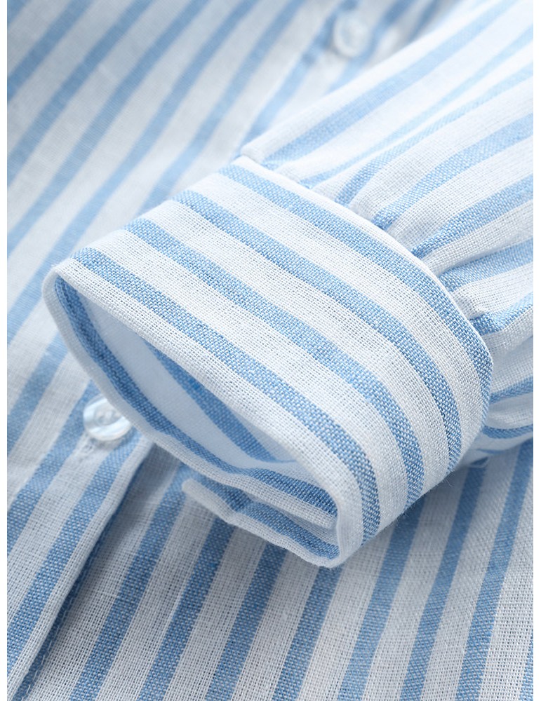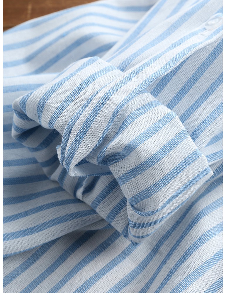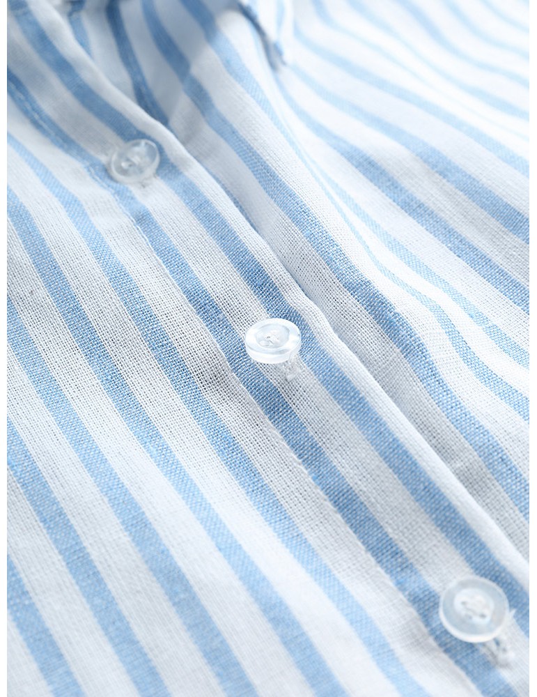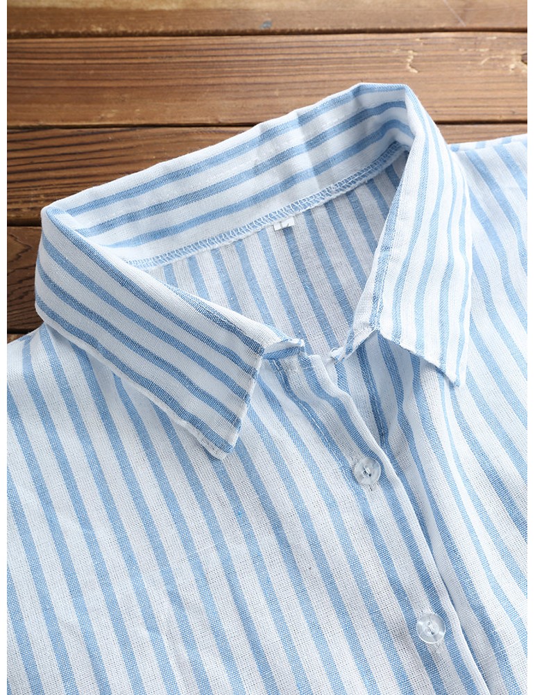 Striped Turn Down Collar Side Slit V Neck Shirt