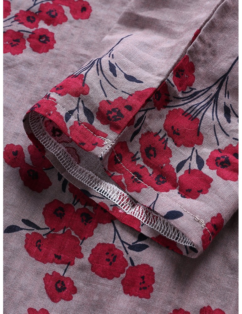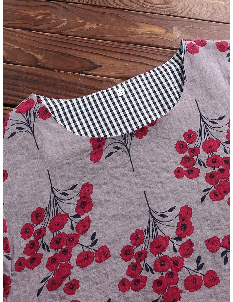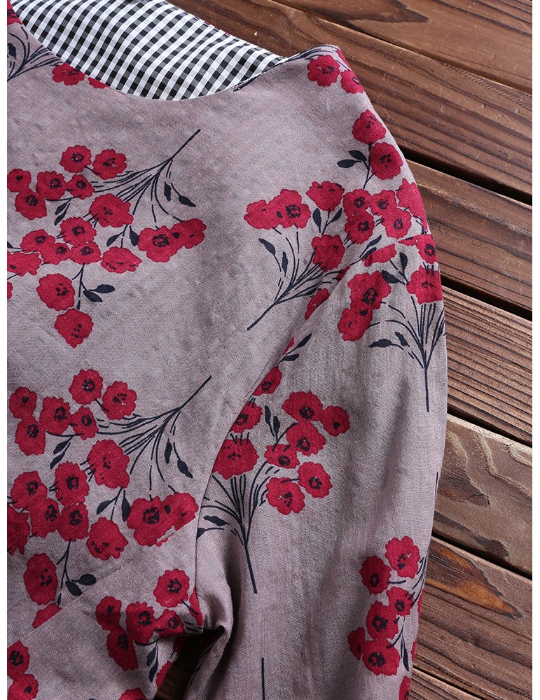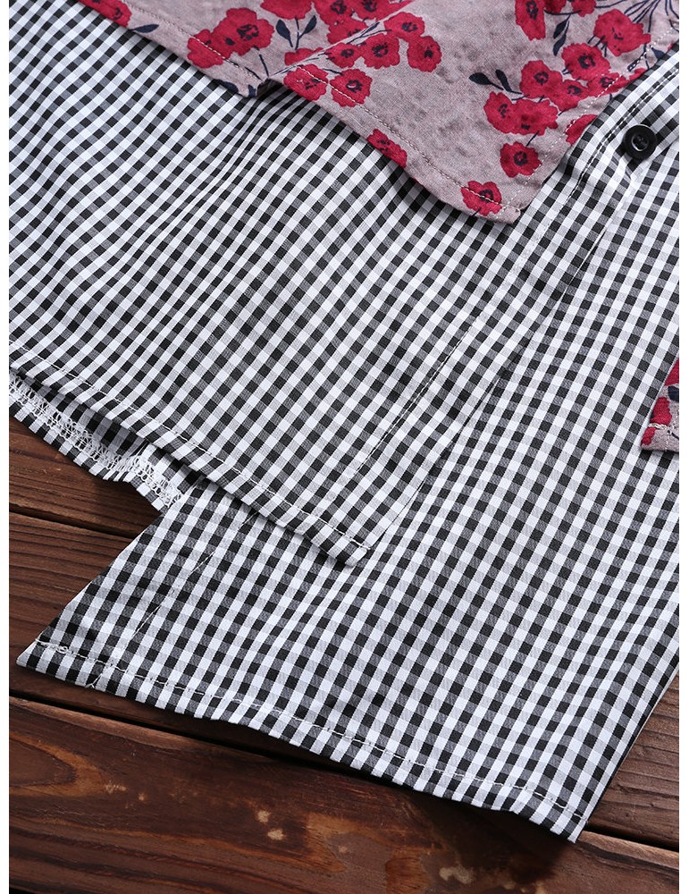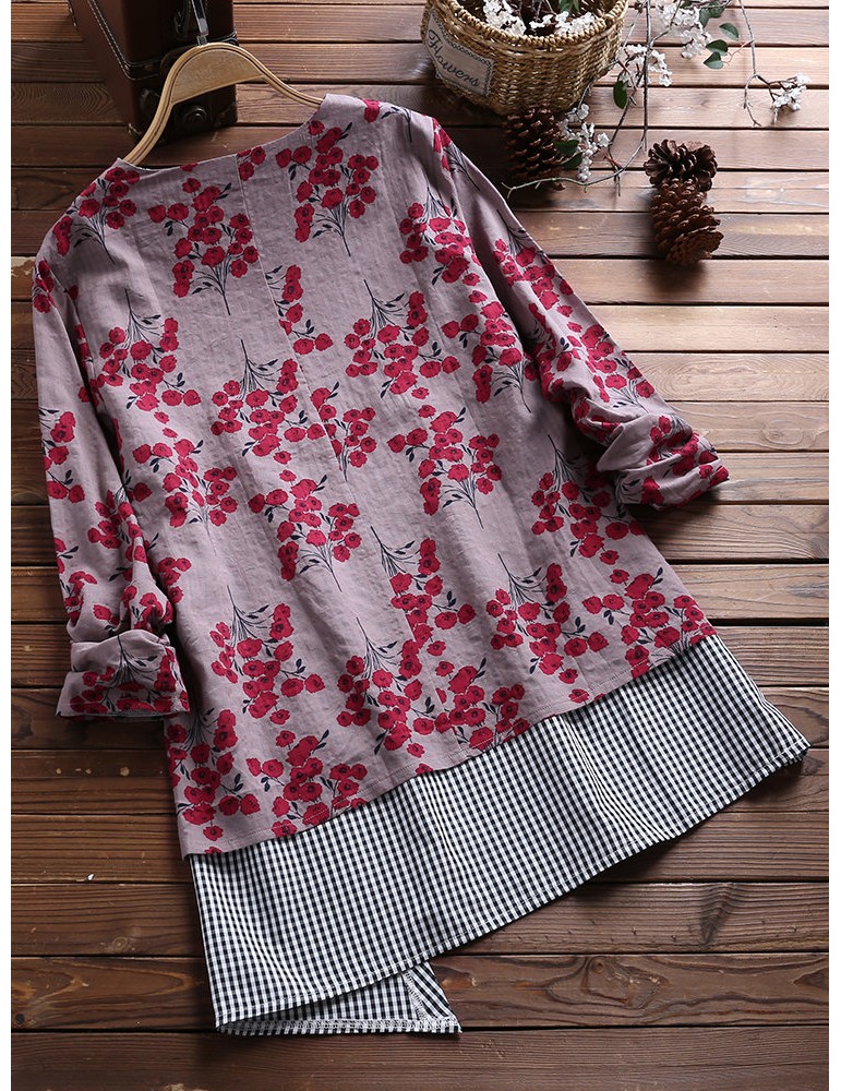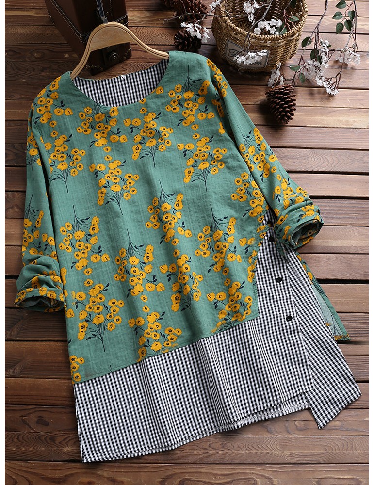 Print Patchwork Plaid Asymmetrical Hem Blouse