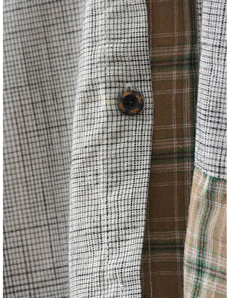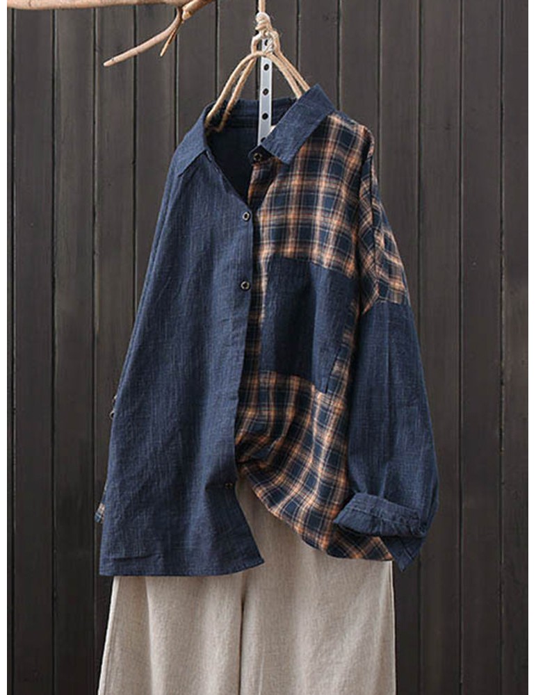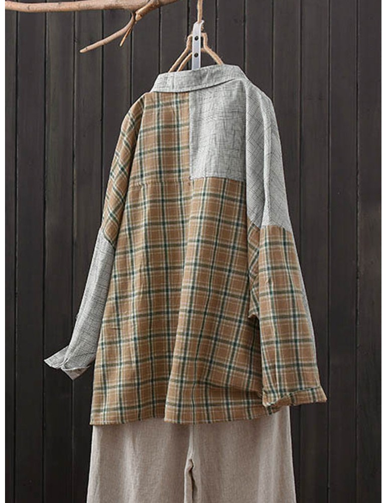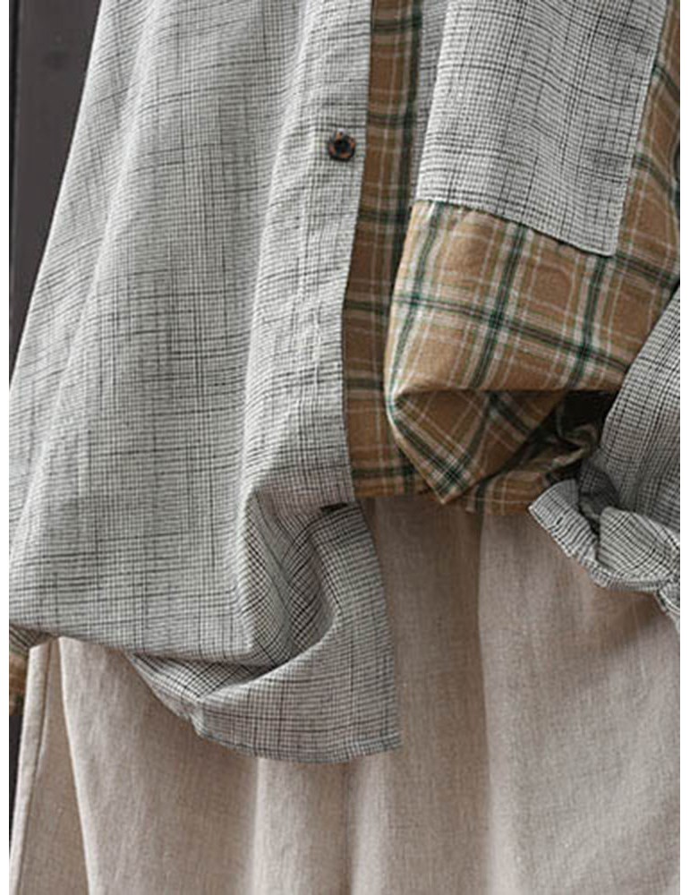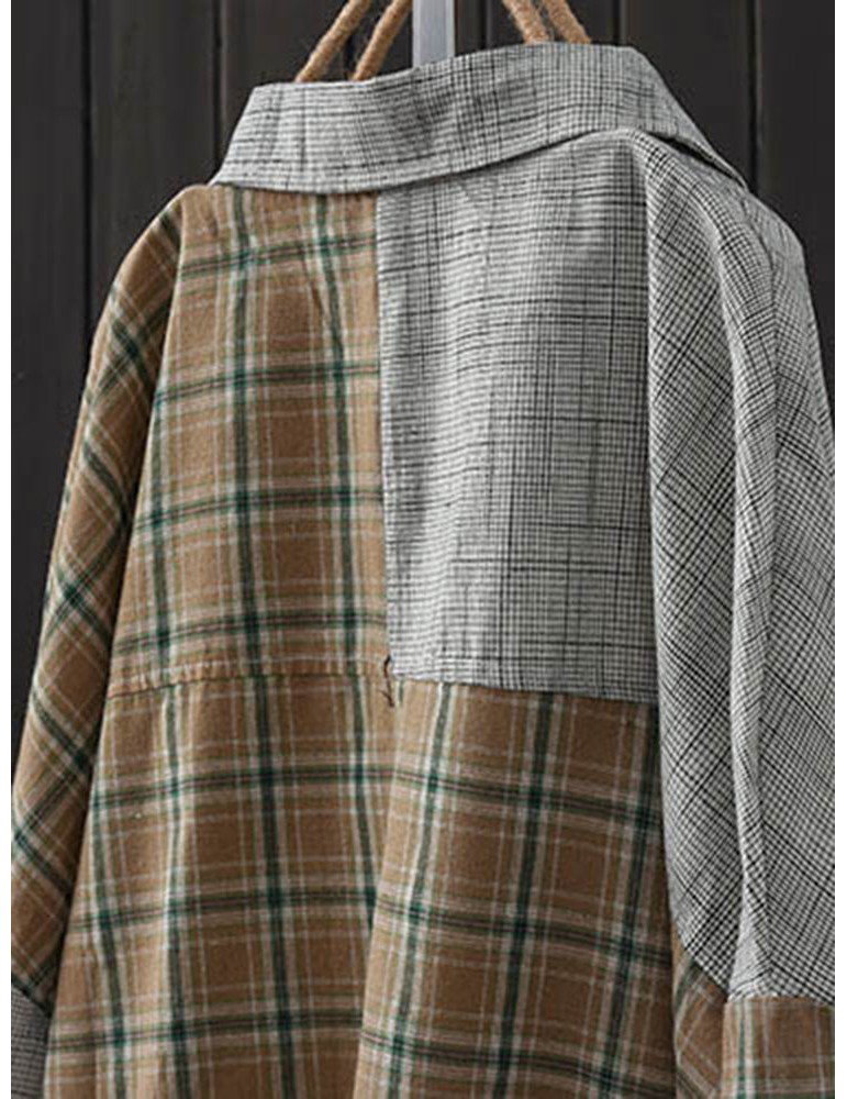 Patchwork Plaid Long Sleeve Turn-down Collar Pocket Shirt