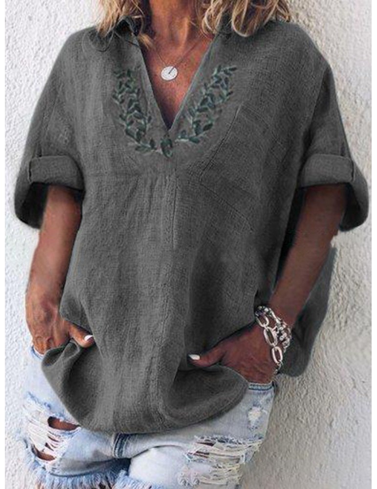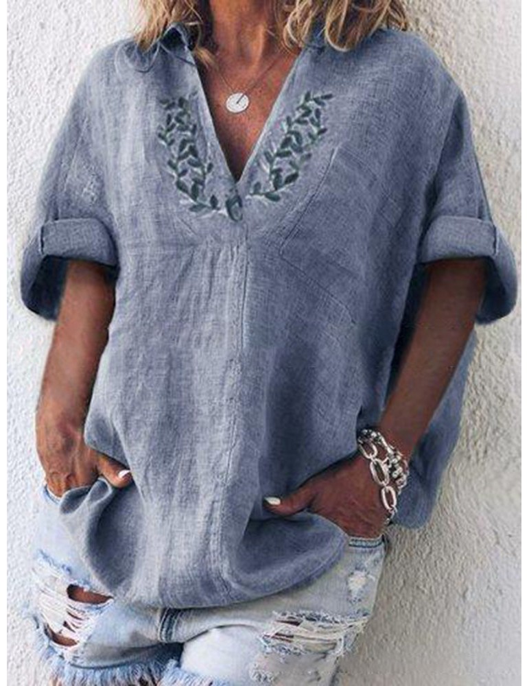 Embroidery Short Sleeve Casual Blouse For Women