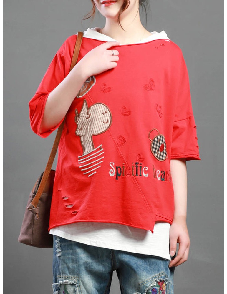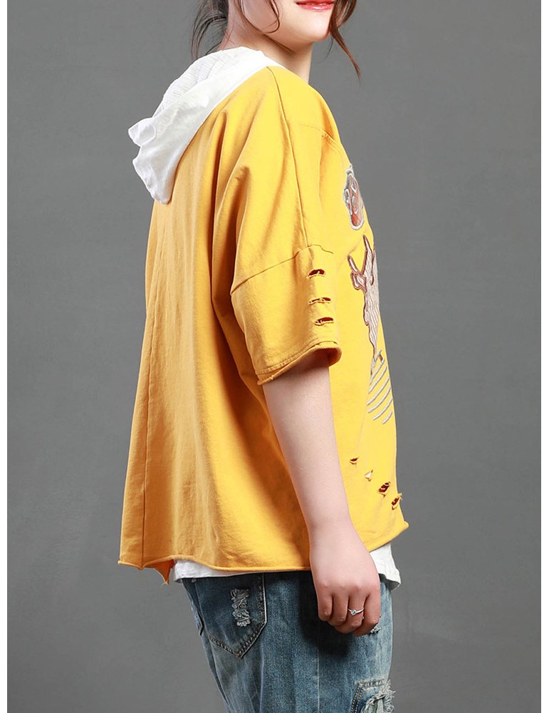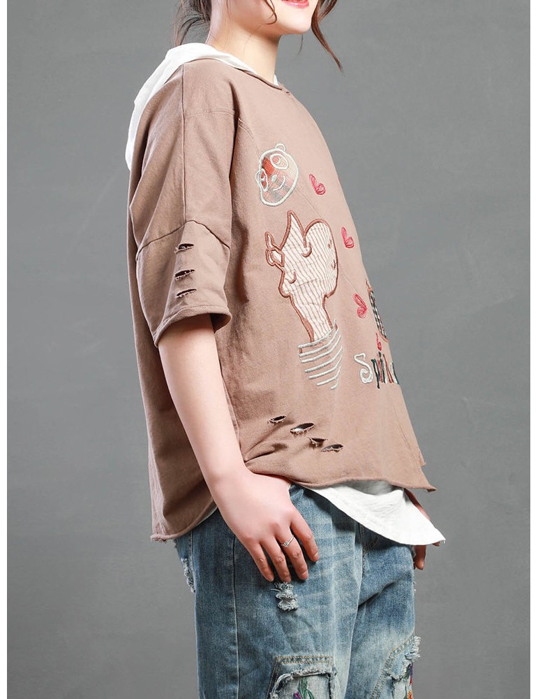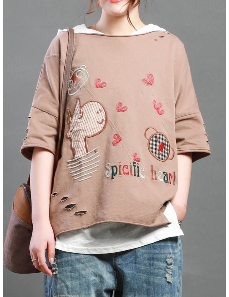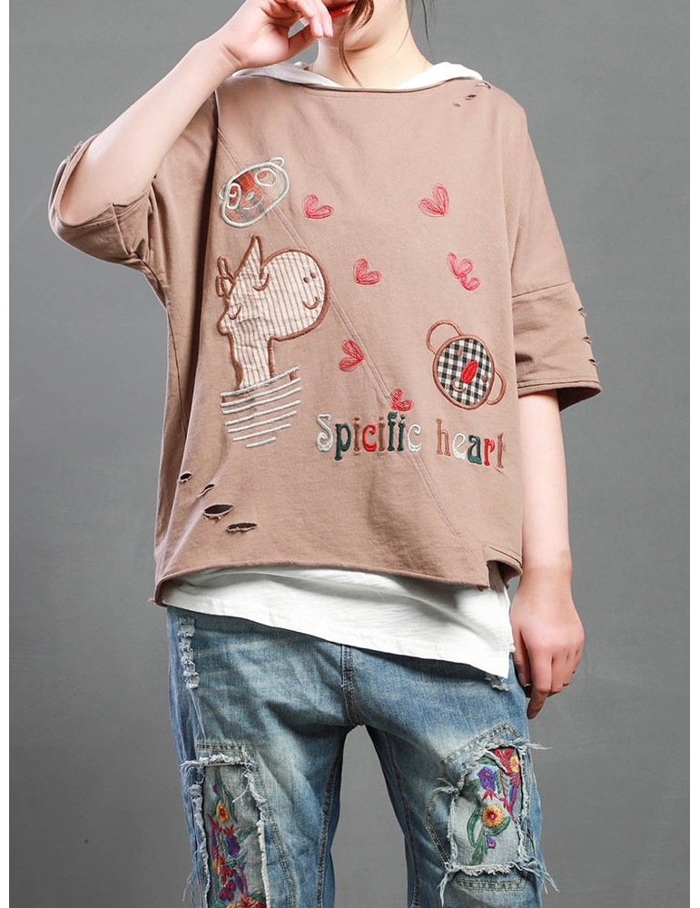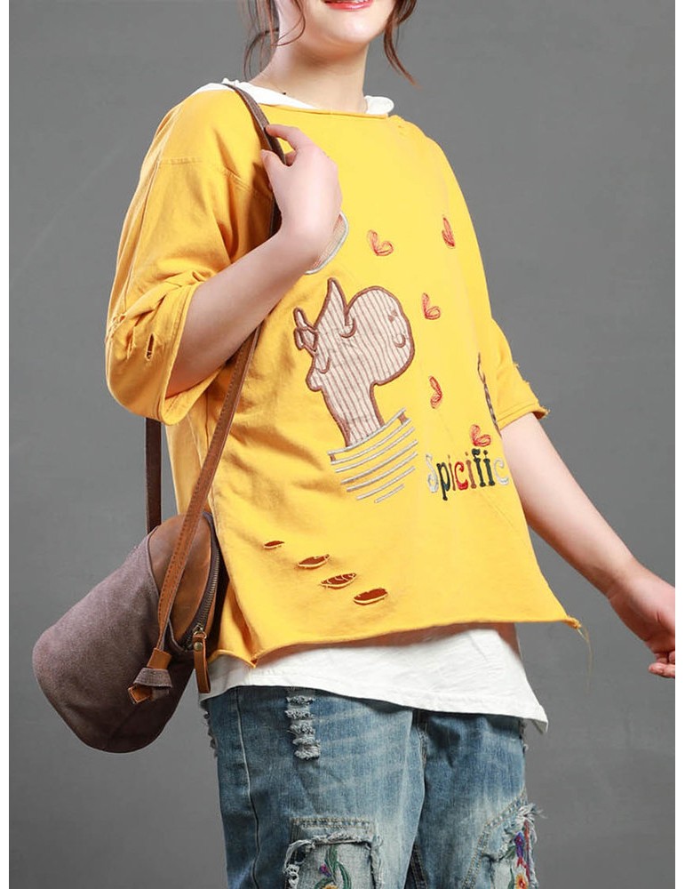 Cartoon Embroidery Print Short Sleeve Casual T-Shirt