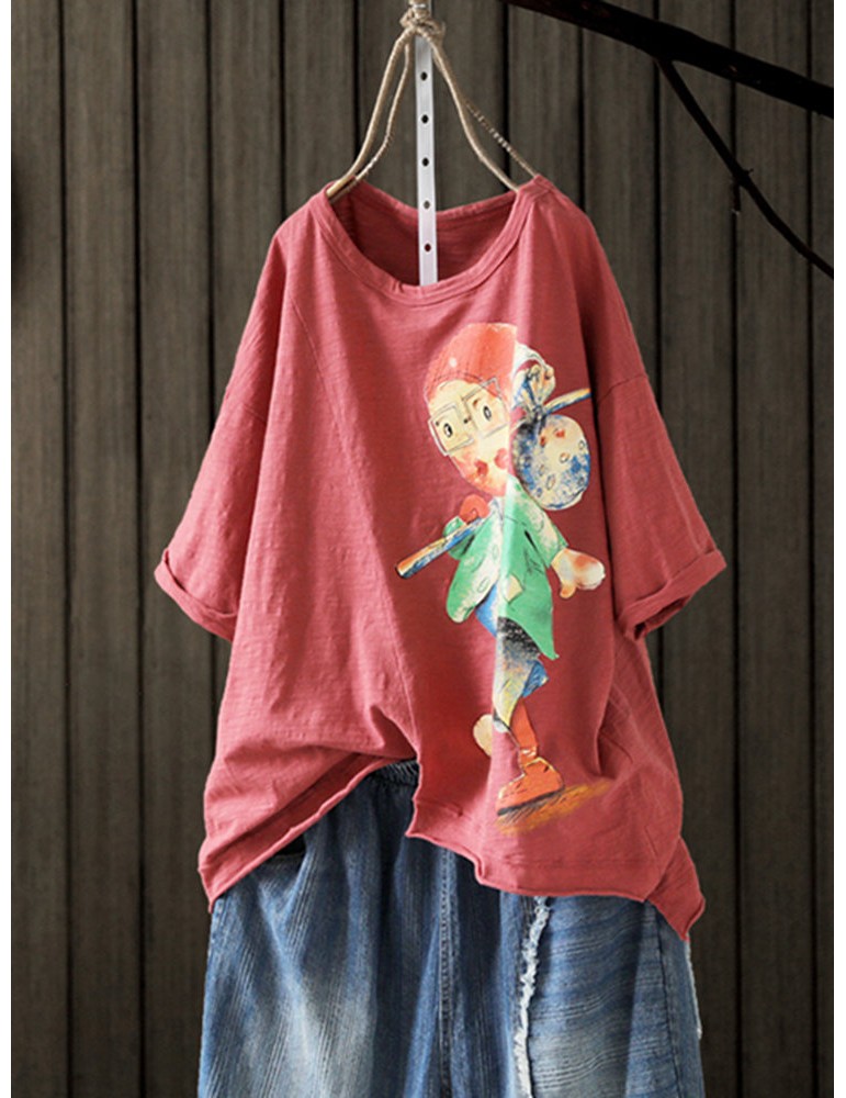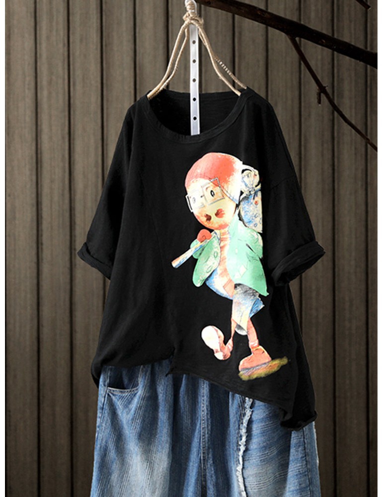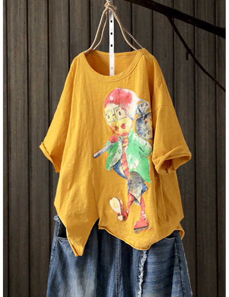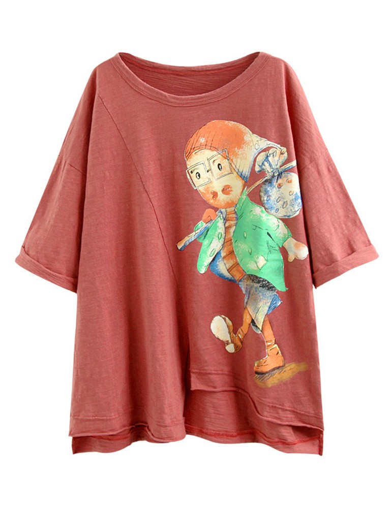 Print Cartoon Half Sleeve Casual T-Shirt