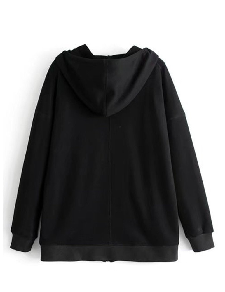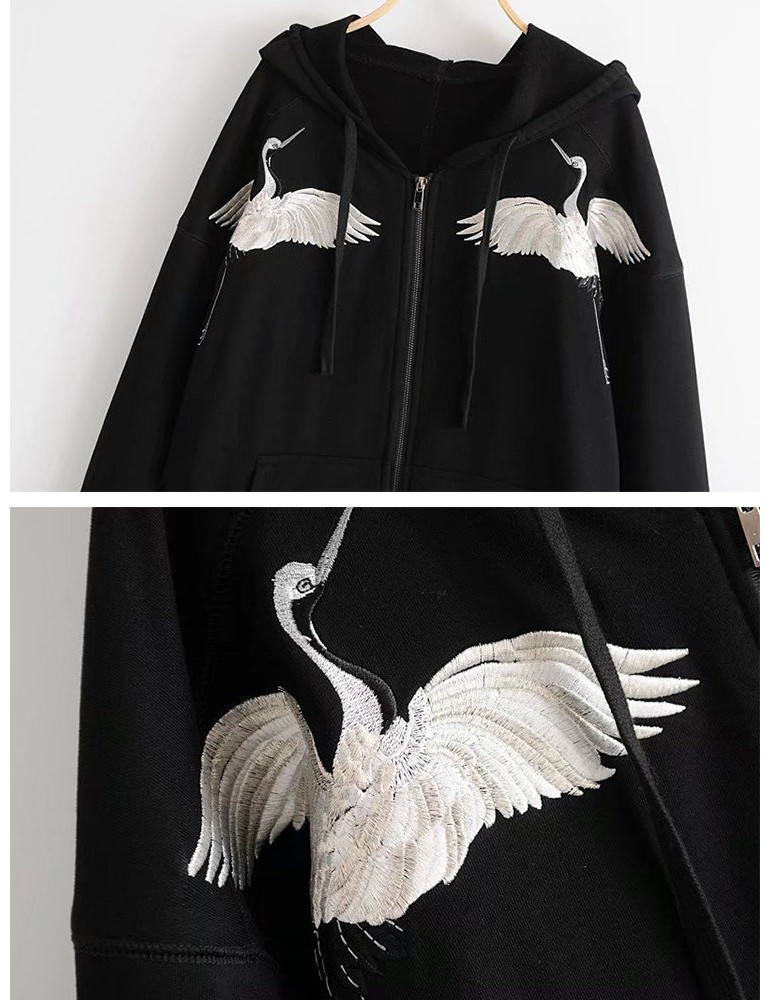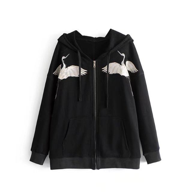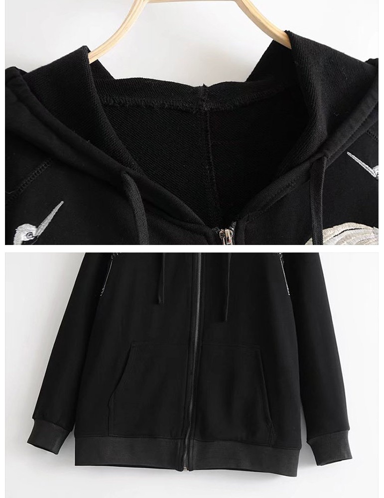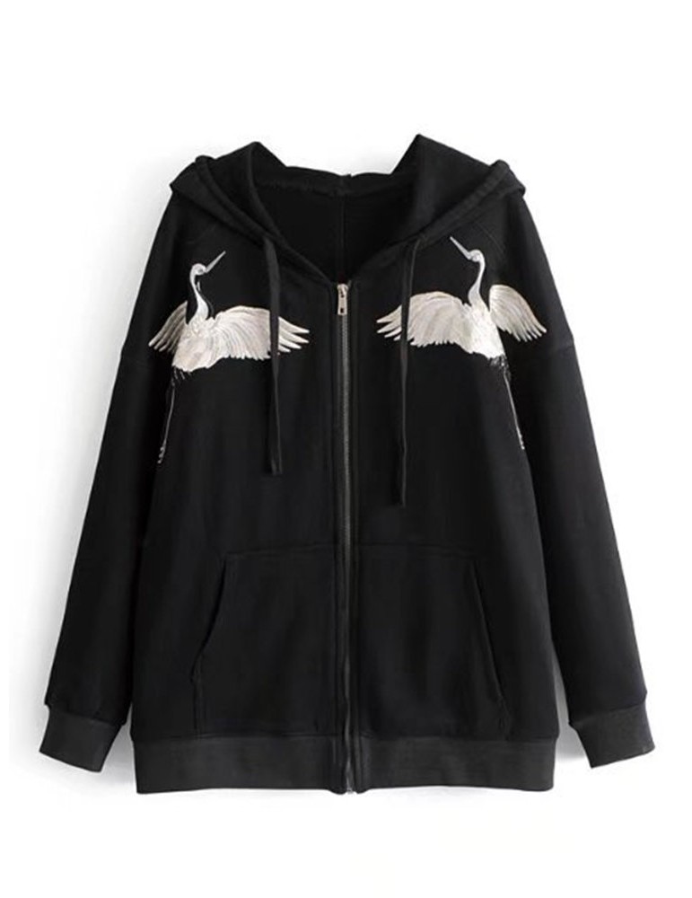 Women Embroidered Long Sleeve Hooded Sweatshirt Coats