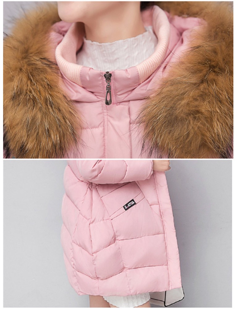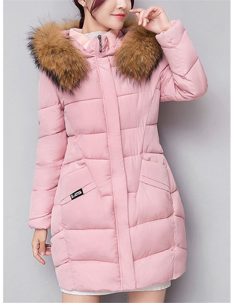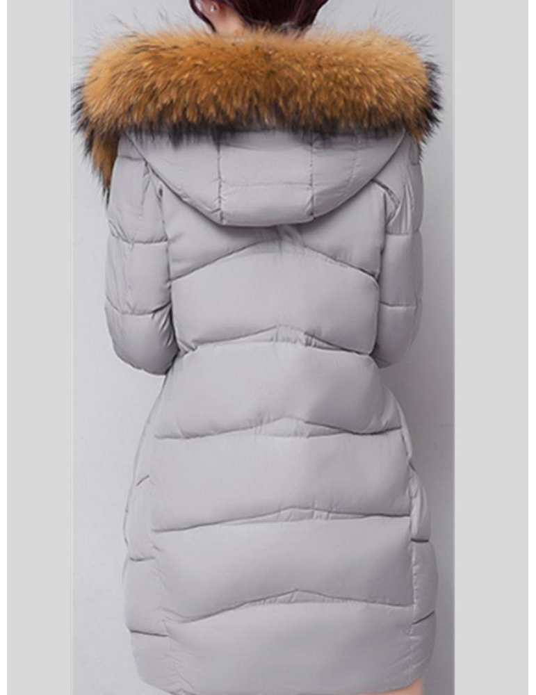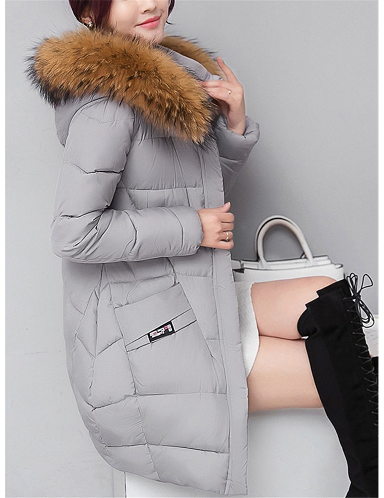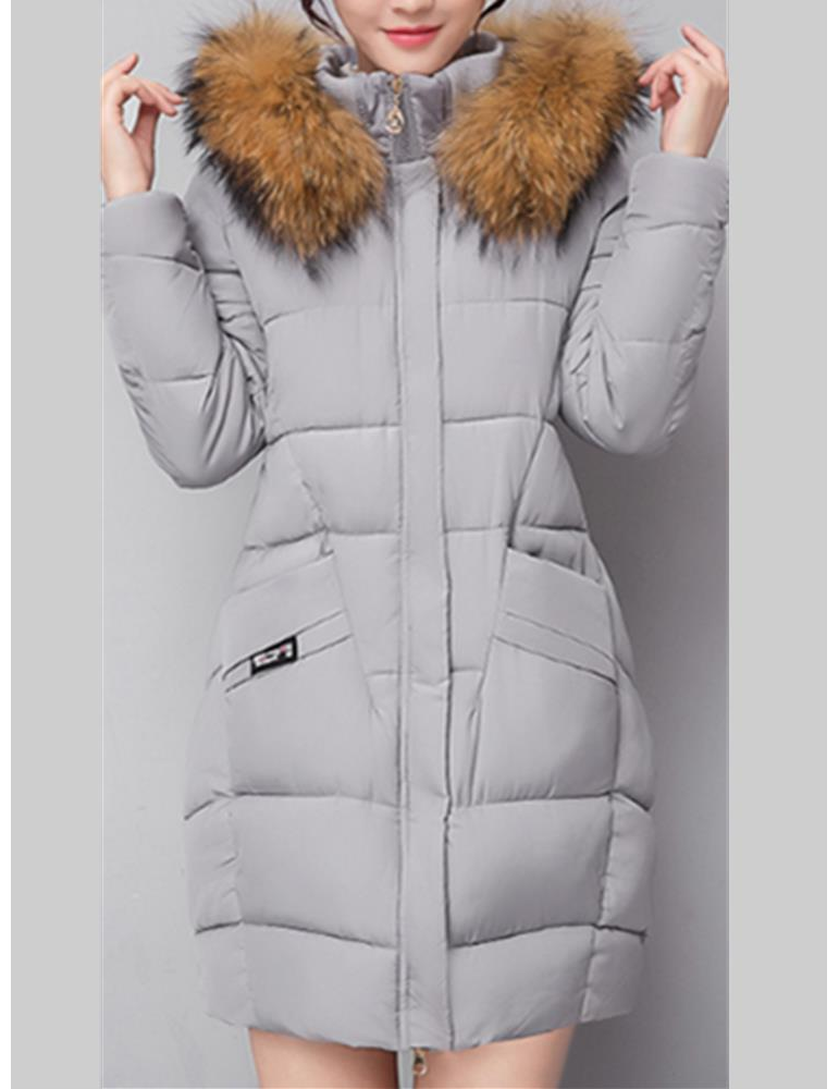 Solid Color Hooded Fur Collar Thicken Warm Long Coat