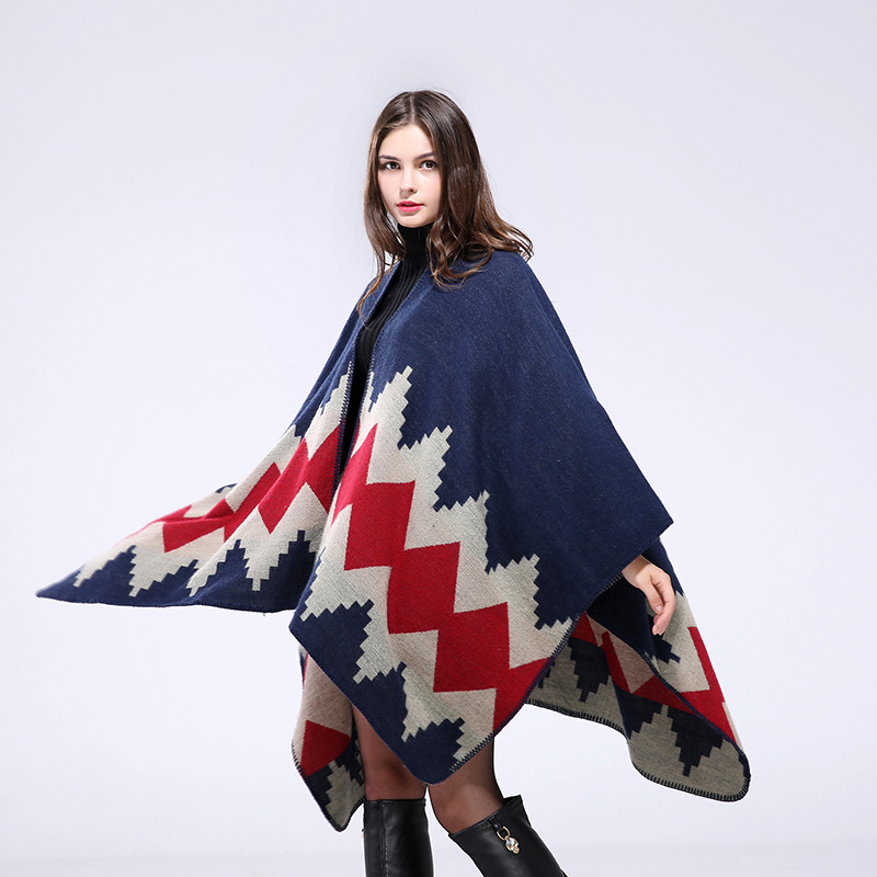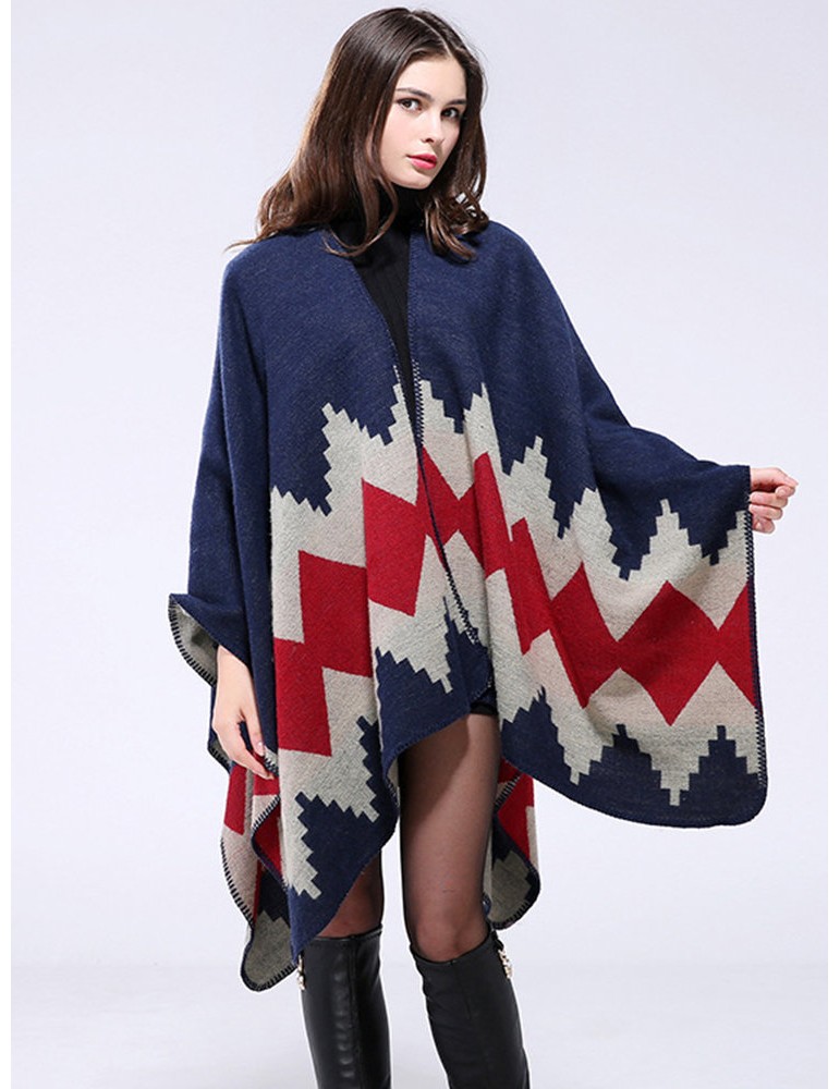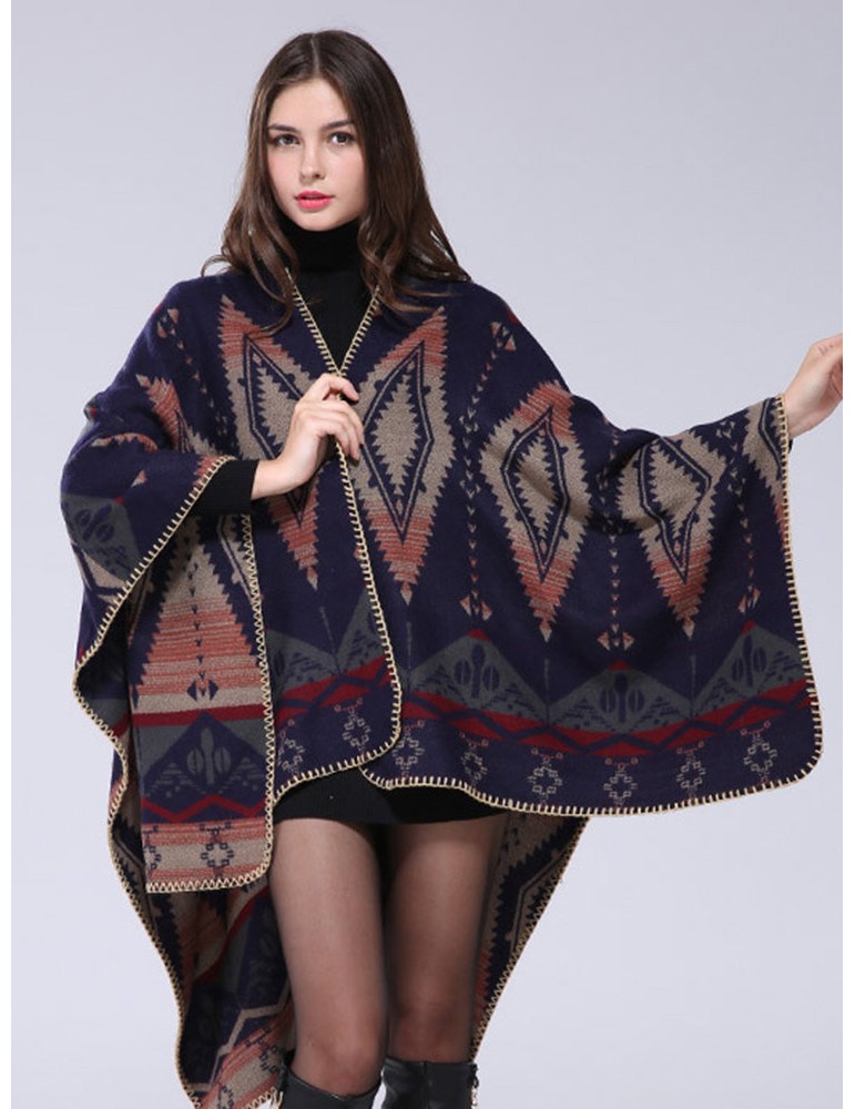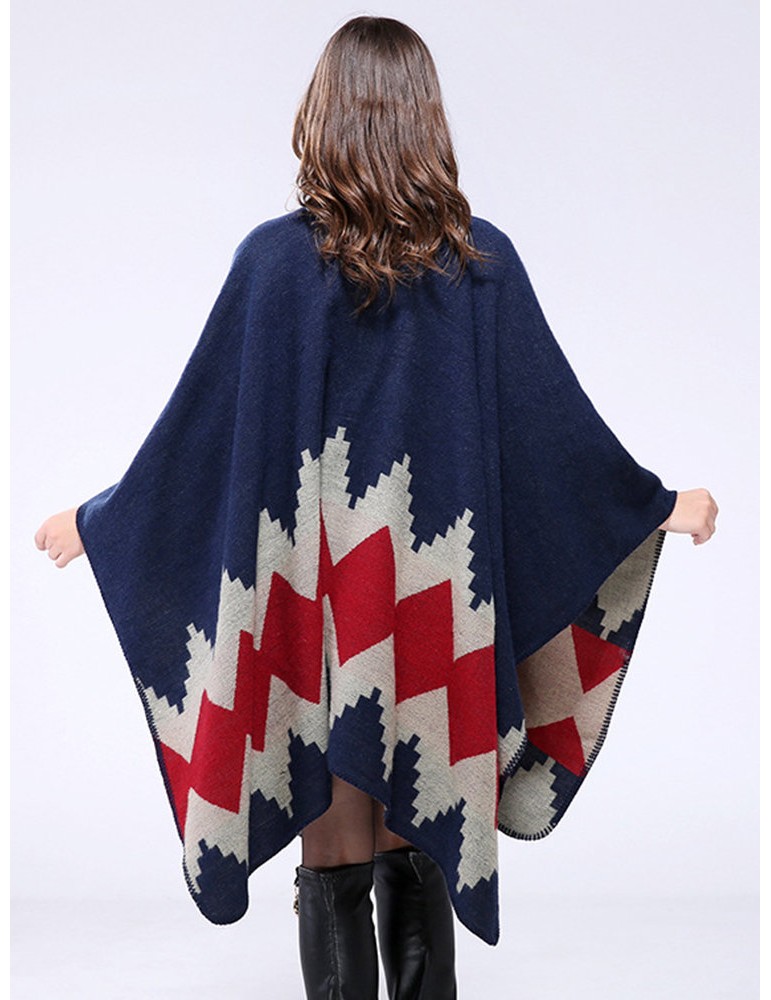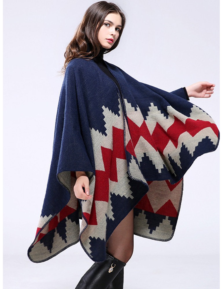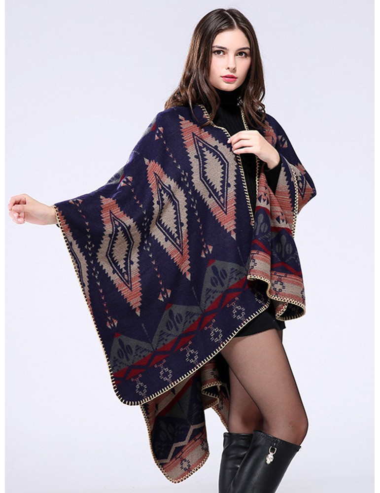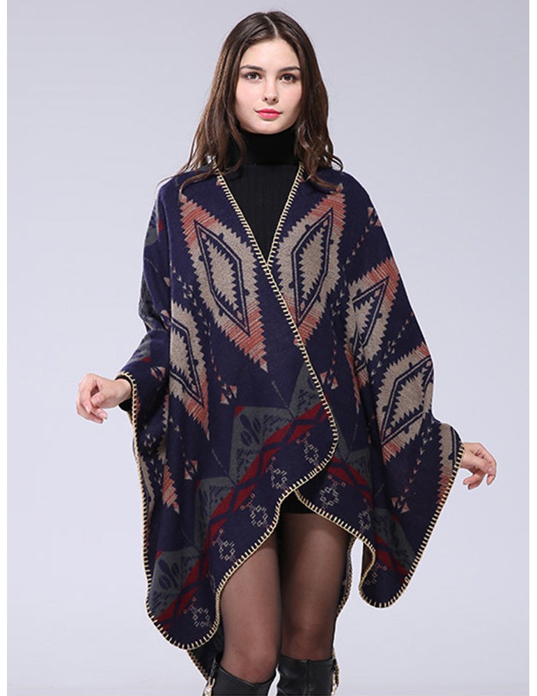 Ethnic Geometric Print Irregular Cloak Coats For Women