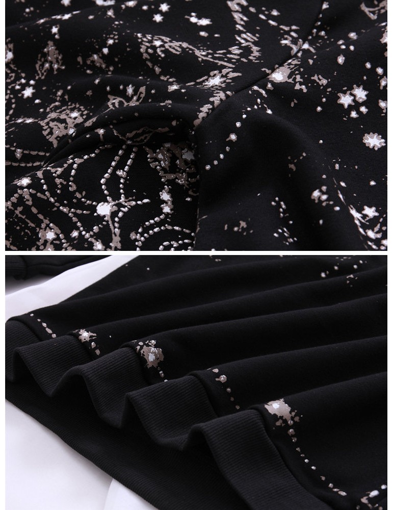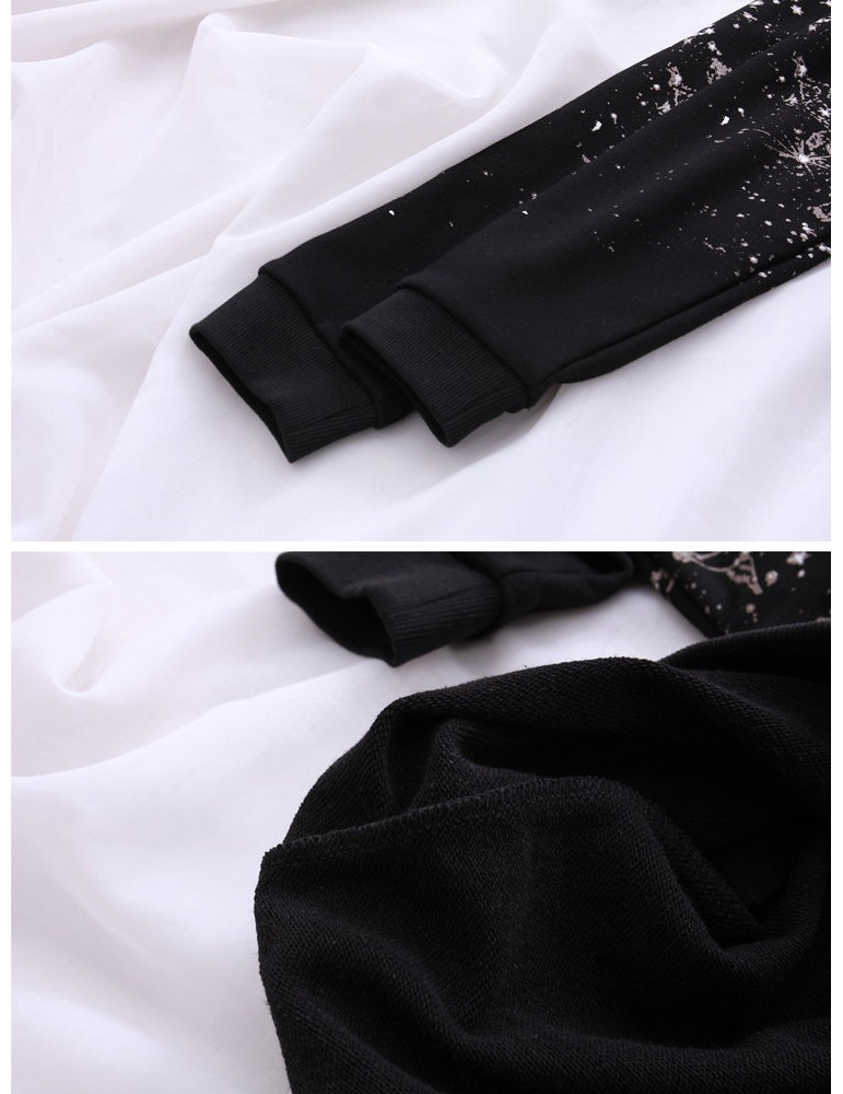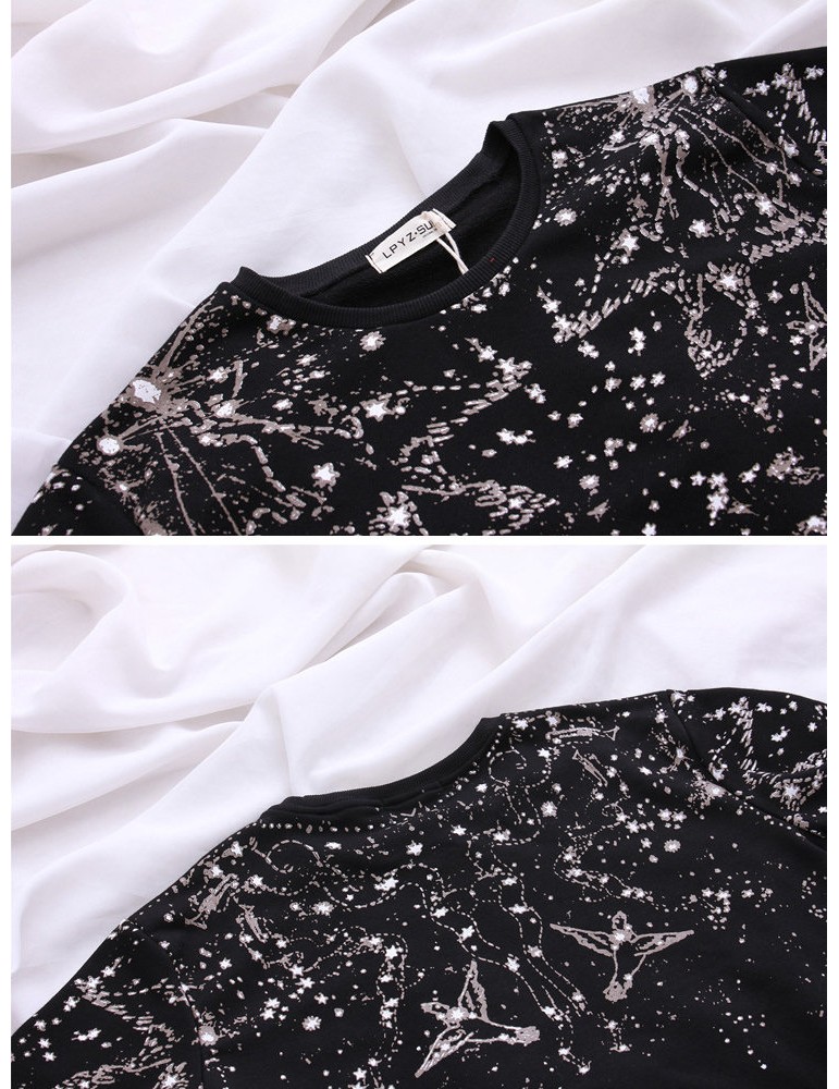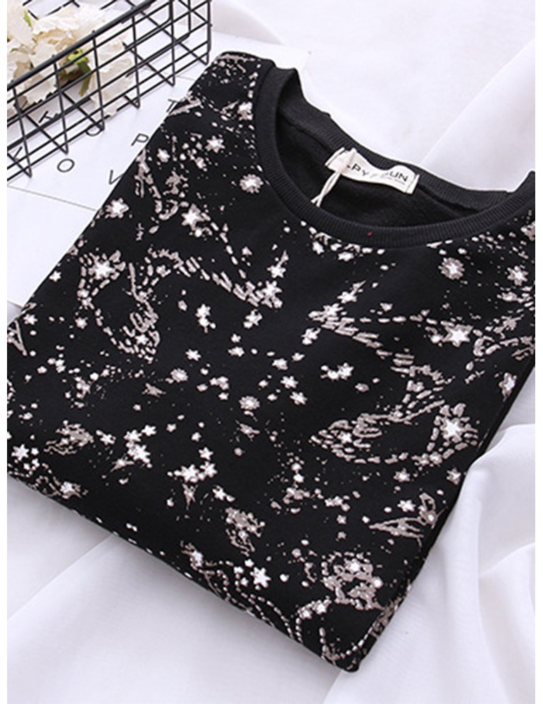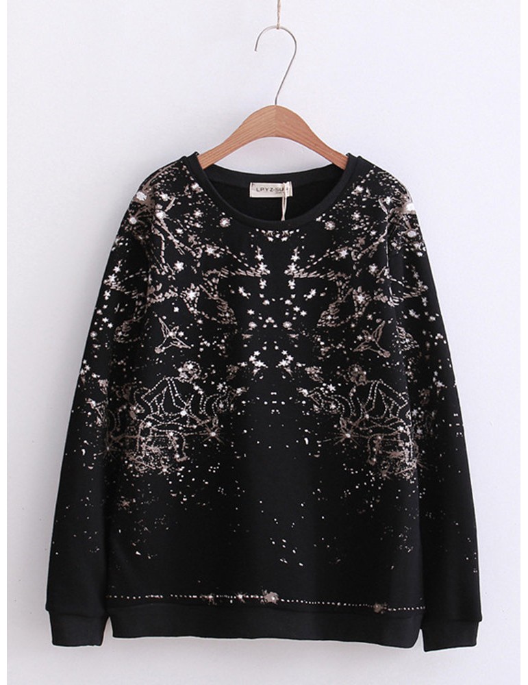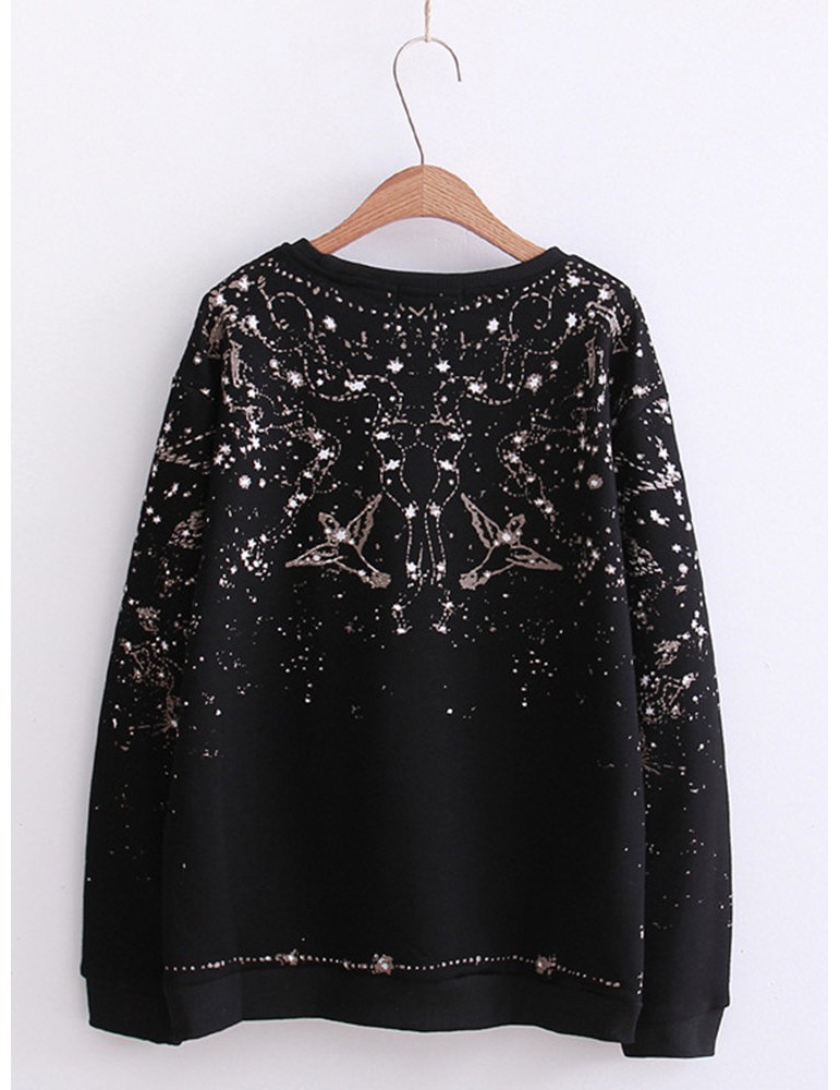 Starry Sky Birds Print Long Sleeve Black Pullover Sweatshirt