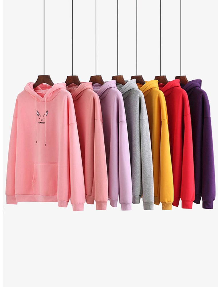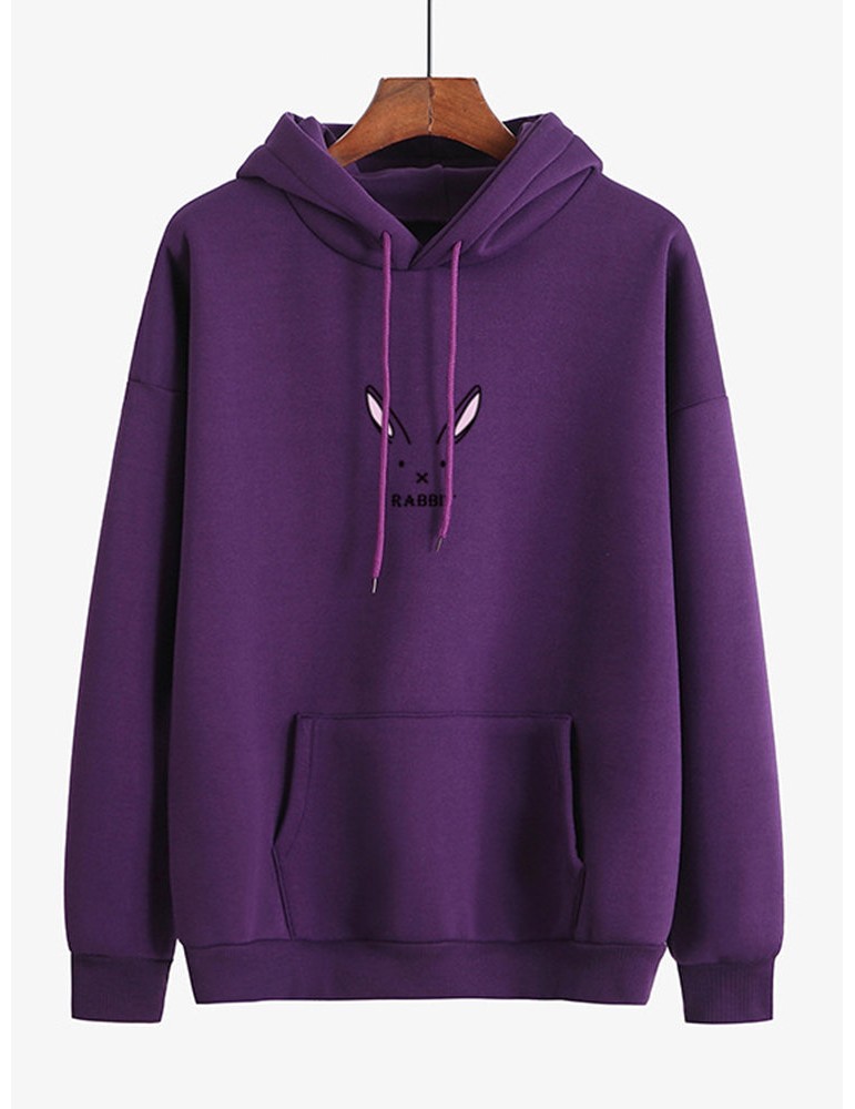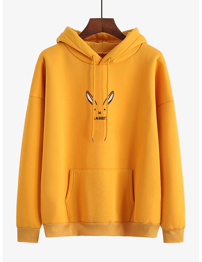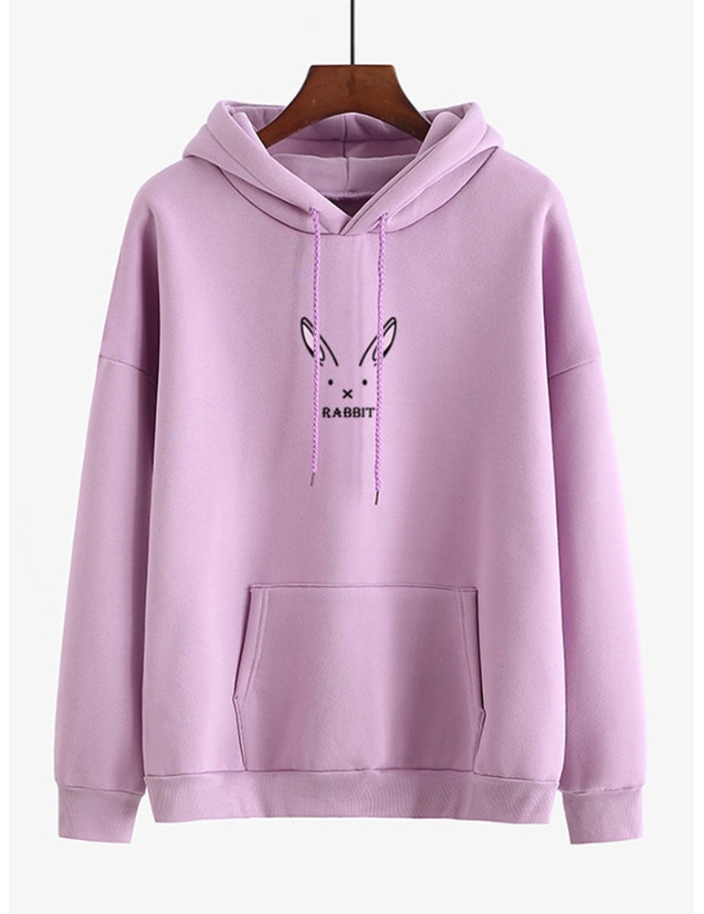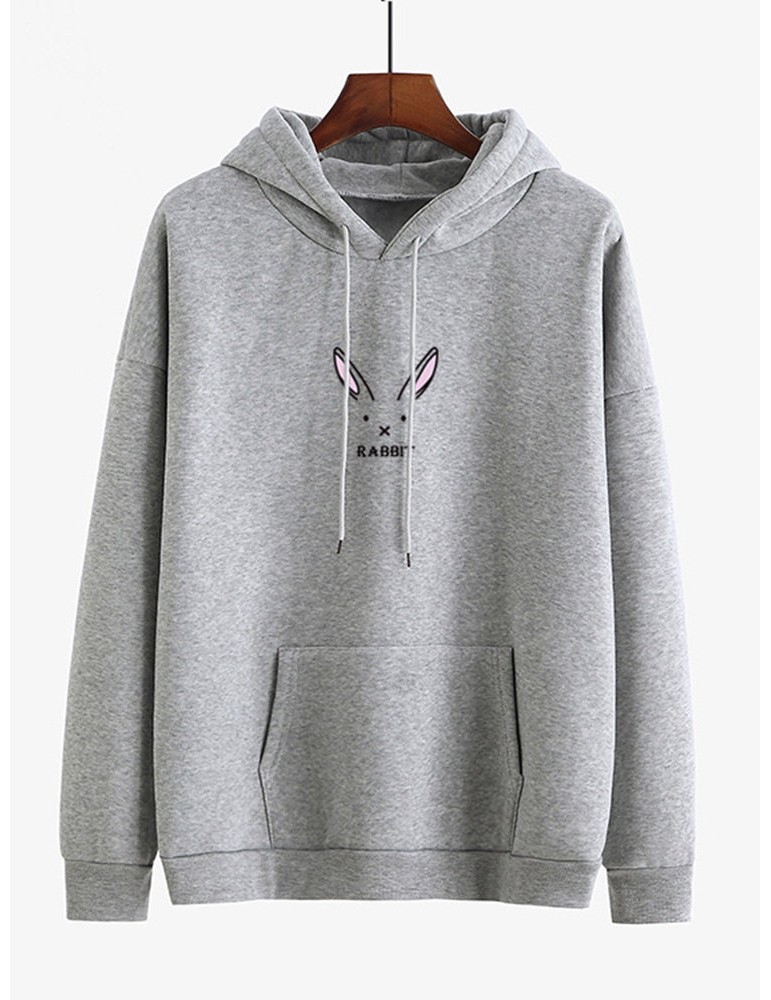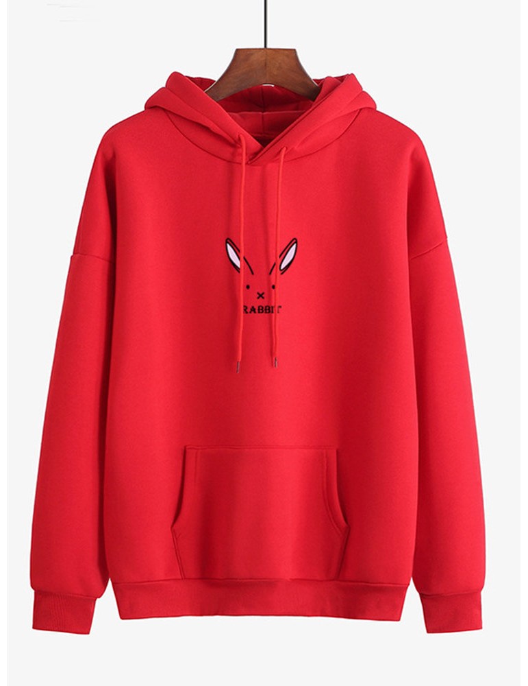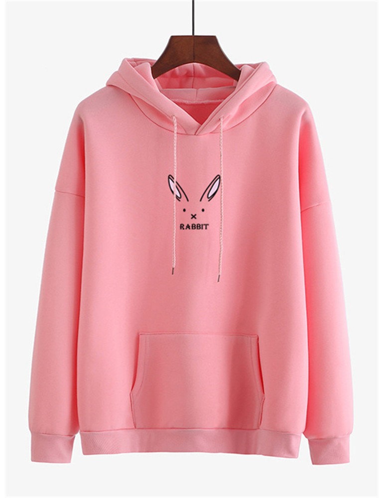 Print Rabbit Loose Pocket Hooded Sweatshirt