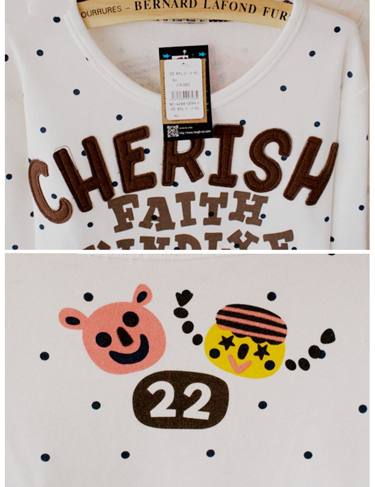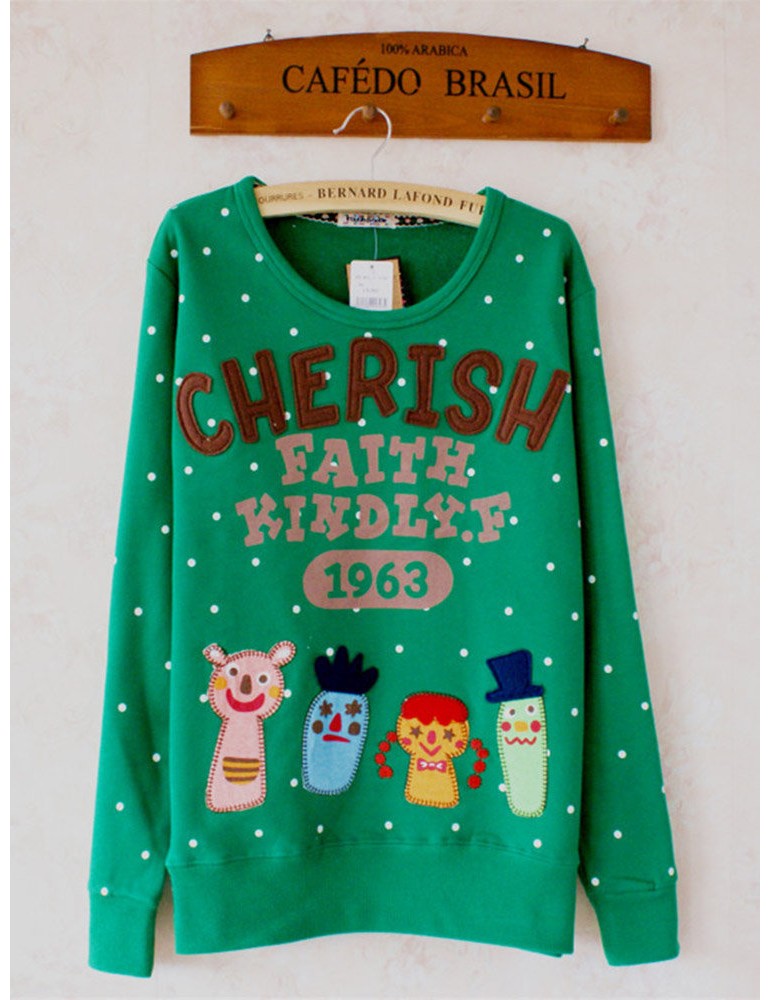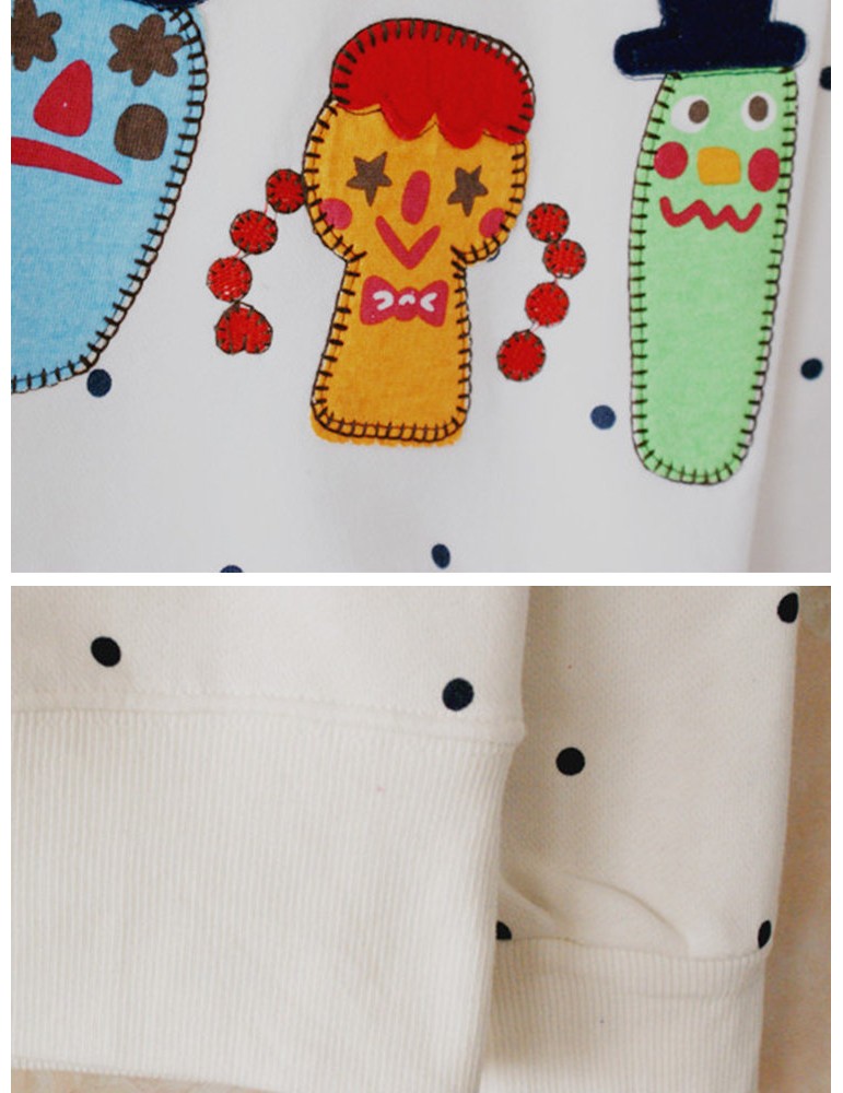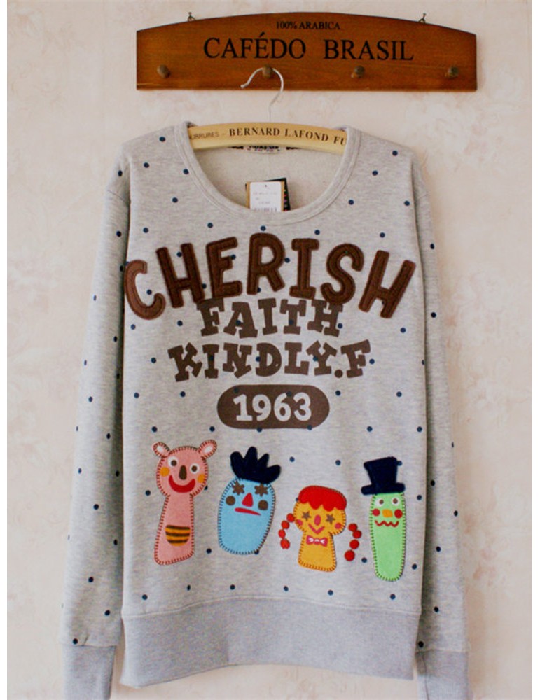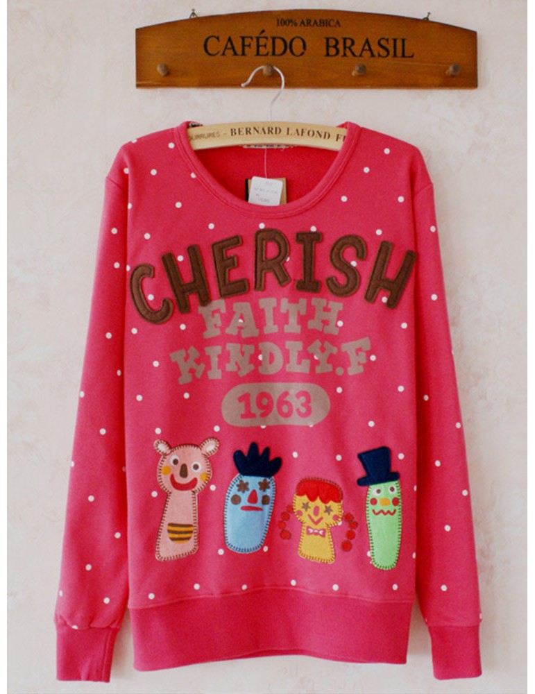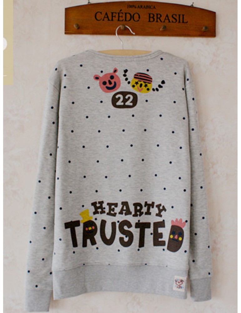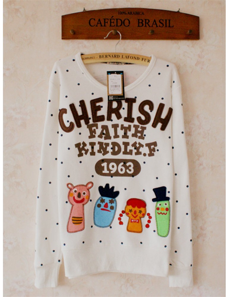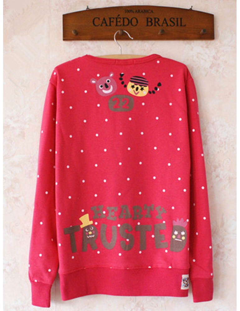 Women Cute Cartoon Print Polka Dot Embroidery Loose Sweatshirt