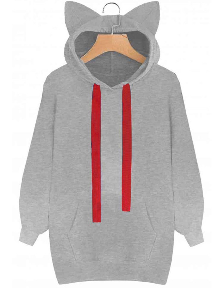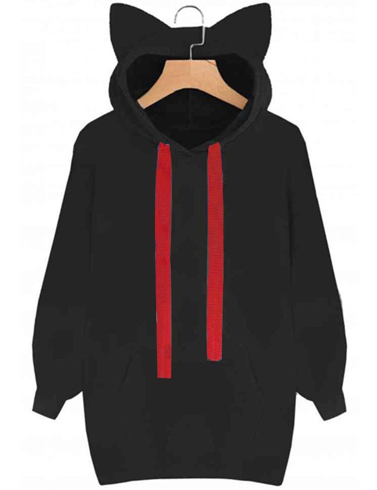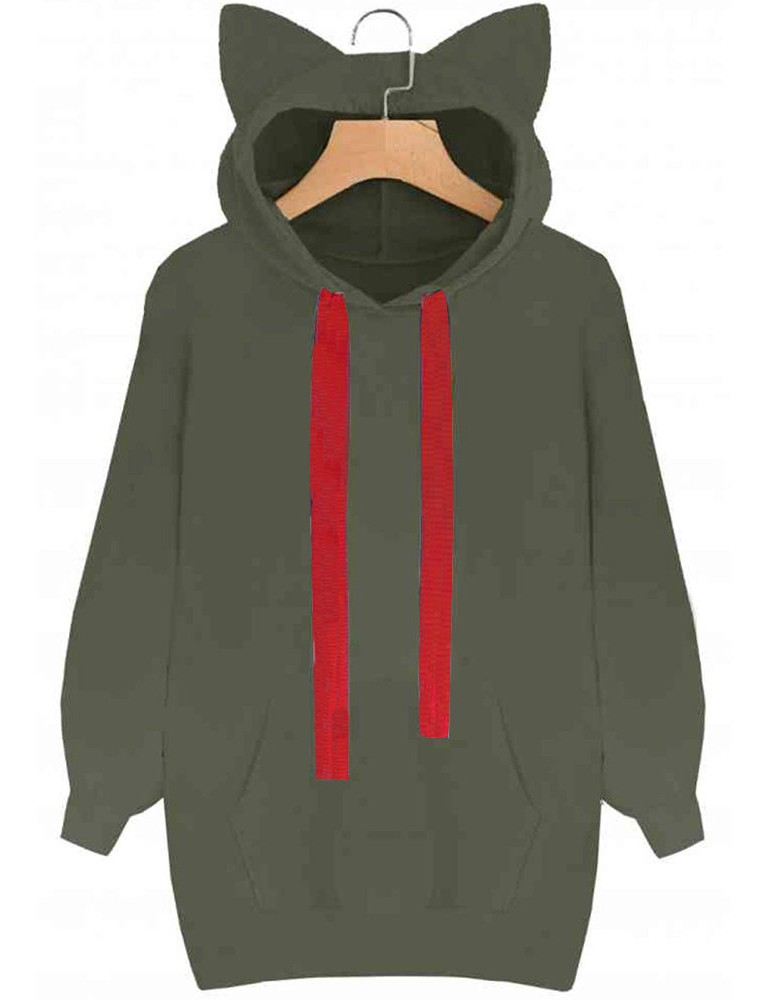 Loose Cat Ear Pocket Drawstring Hooded Sweatshirt