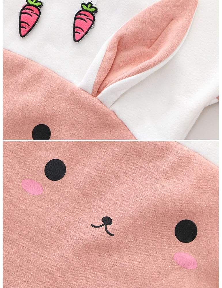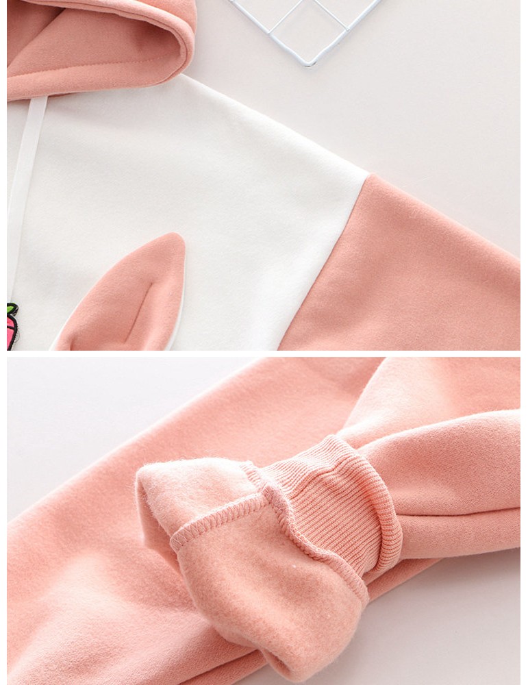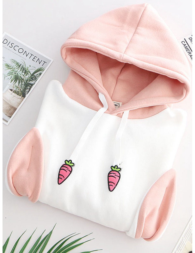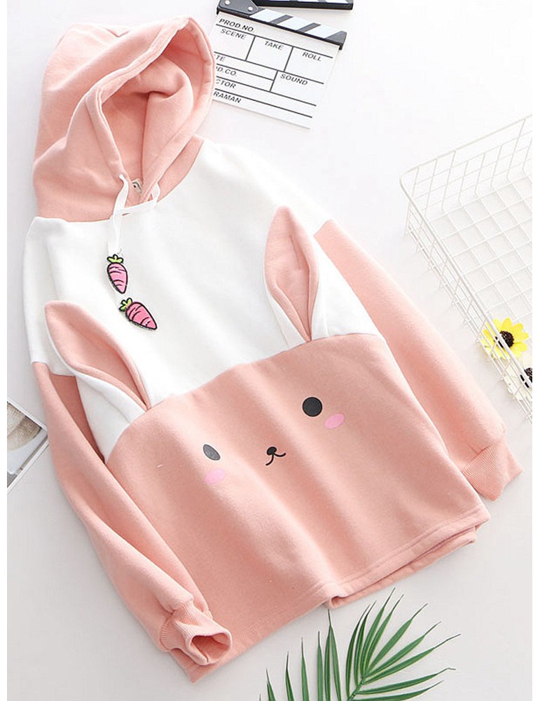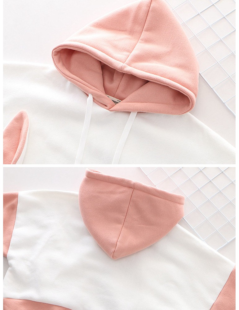 Print Rabbit Ear Patchwrok Hooded Sweatshirt