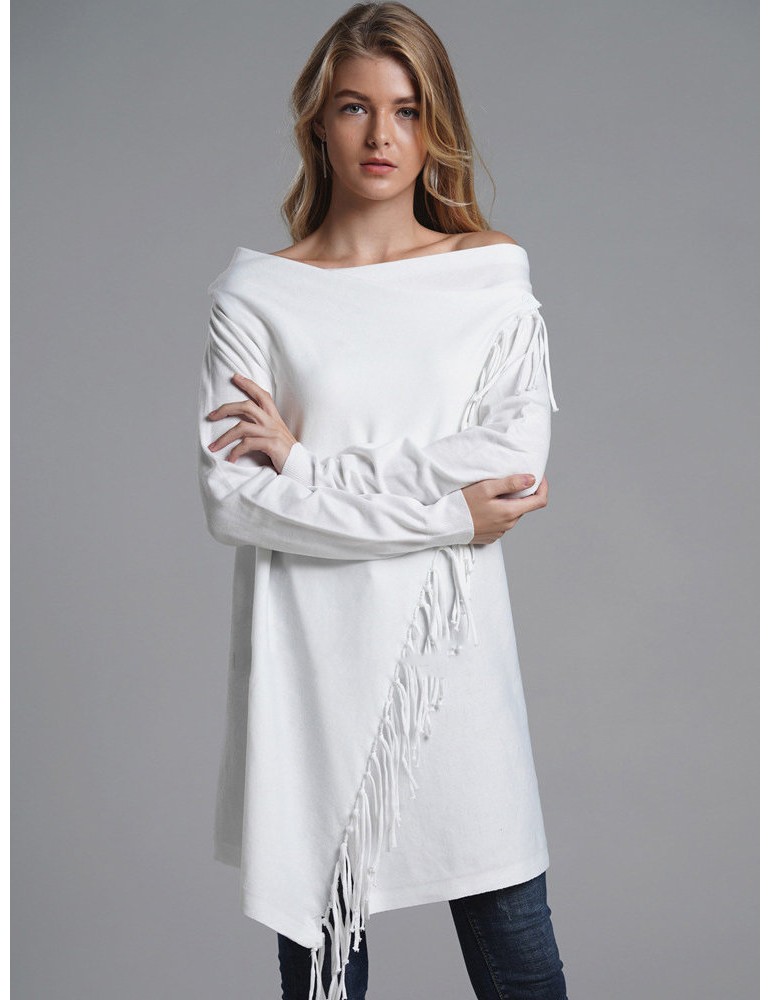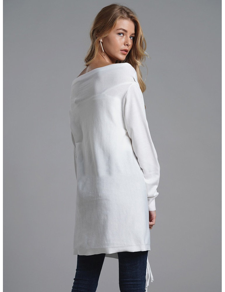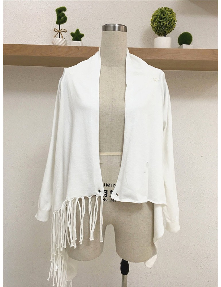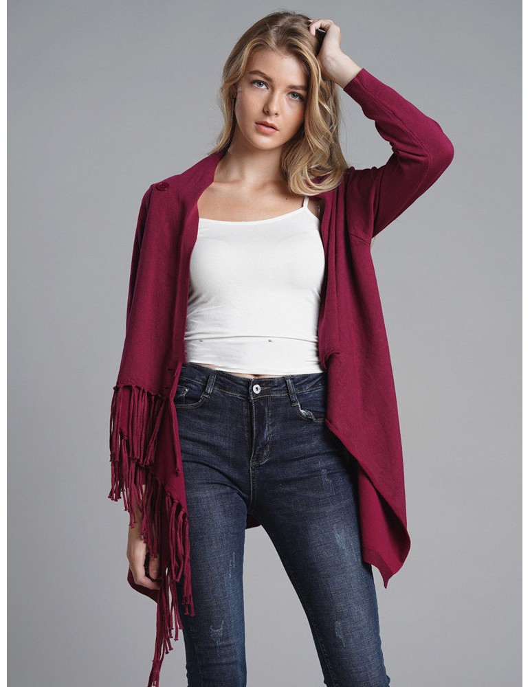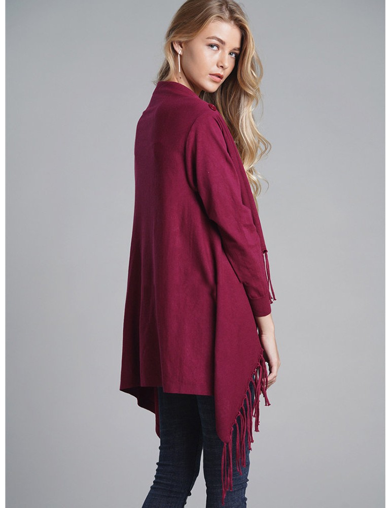 Fringed Knit Solid Color Mid Length Cardigan