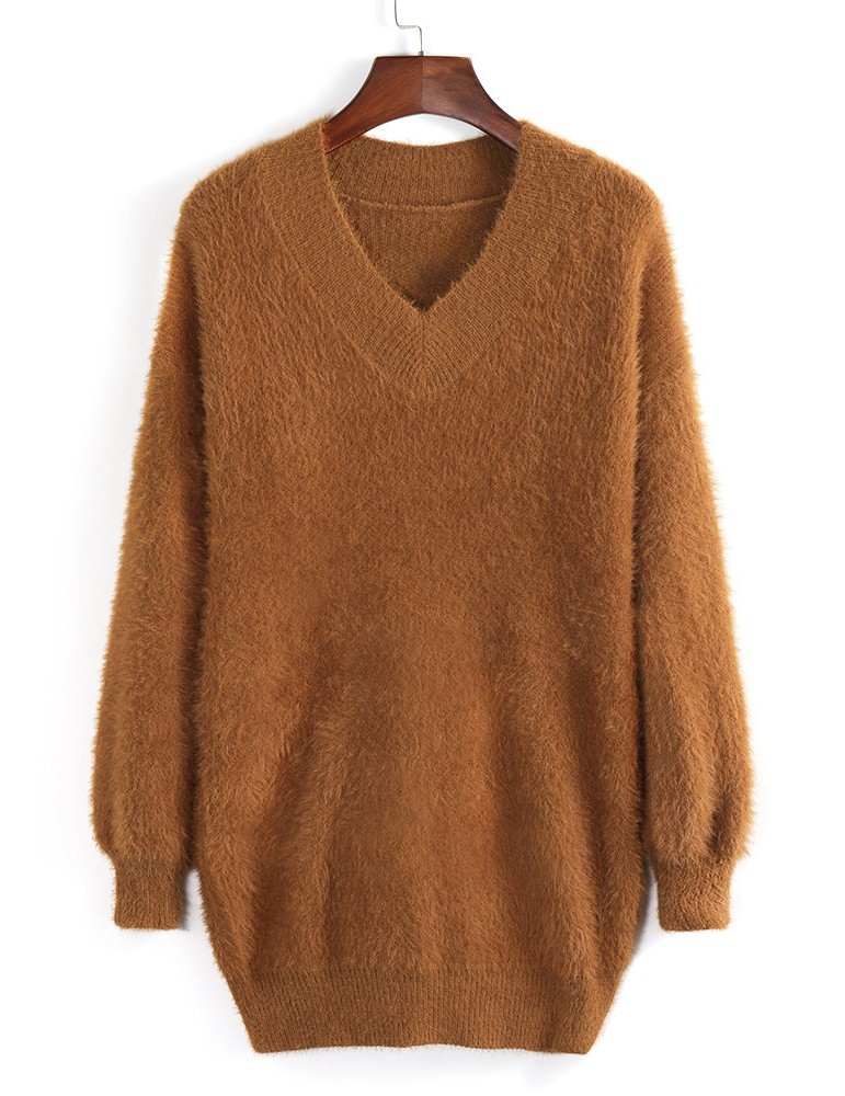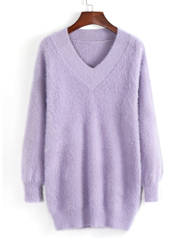 Solid Color Loose Cashmere Long Sleeve Sweater