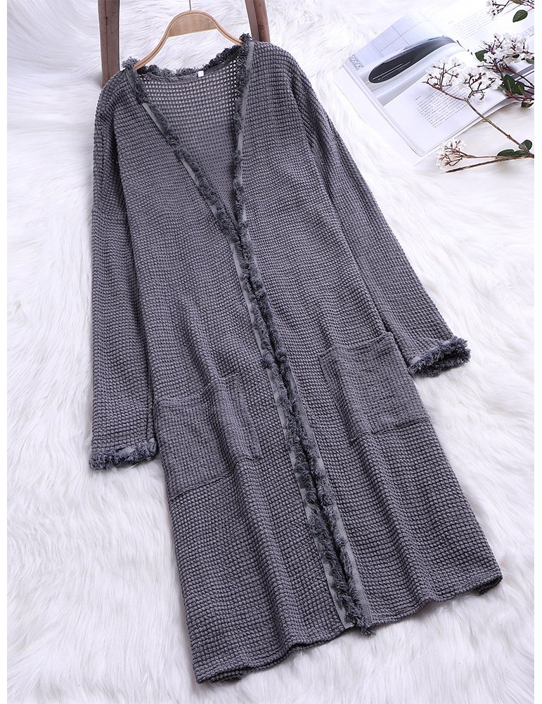 Long Sleeve Solid Color Casual Cardigan With Pockets