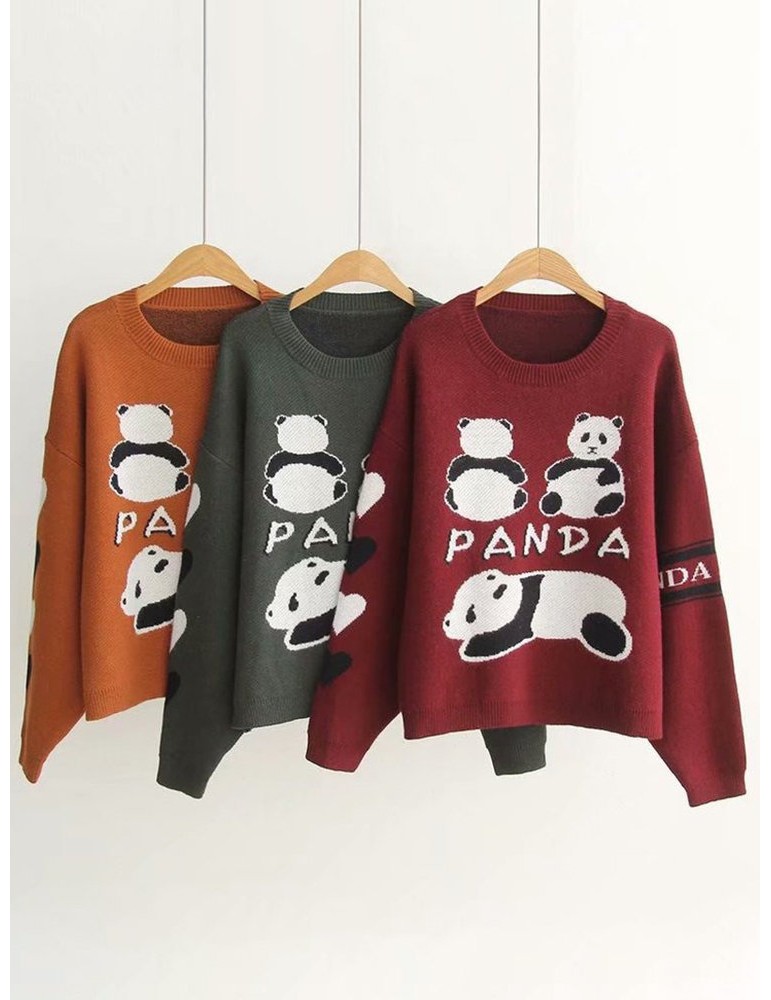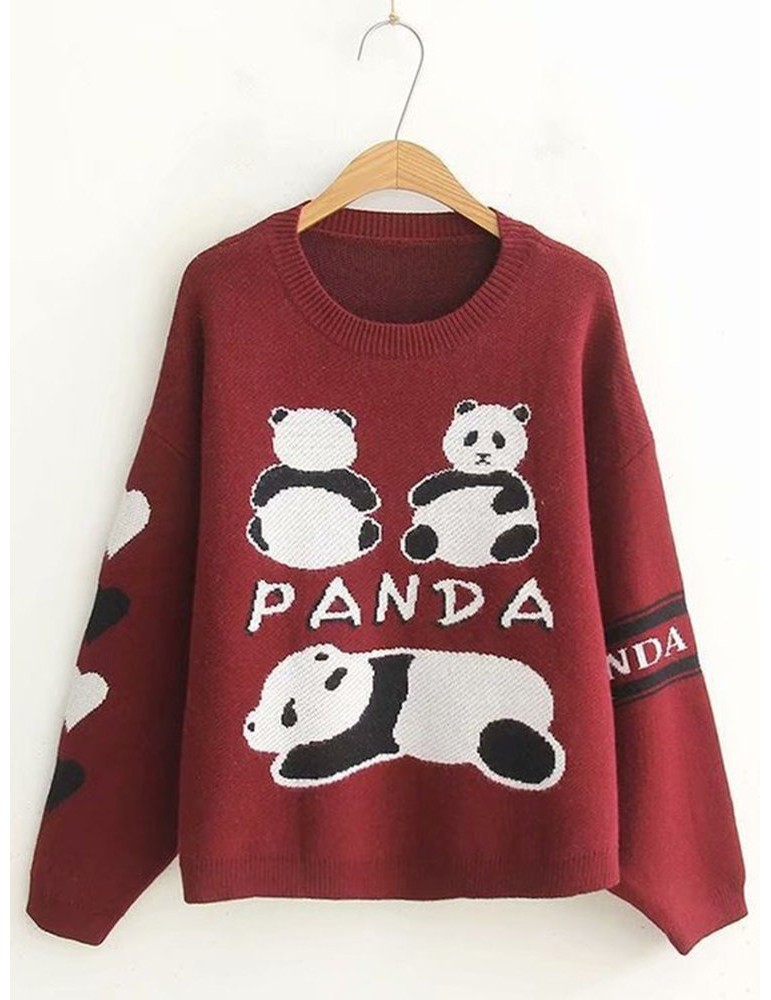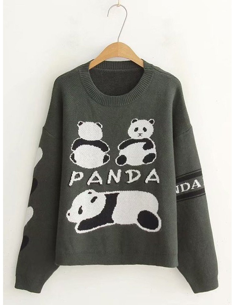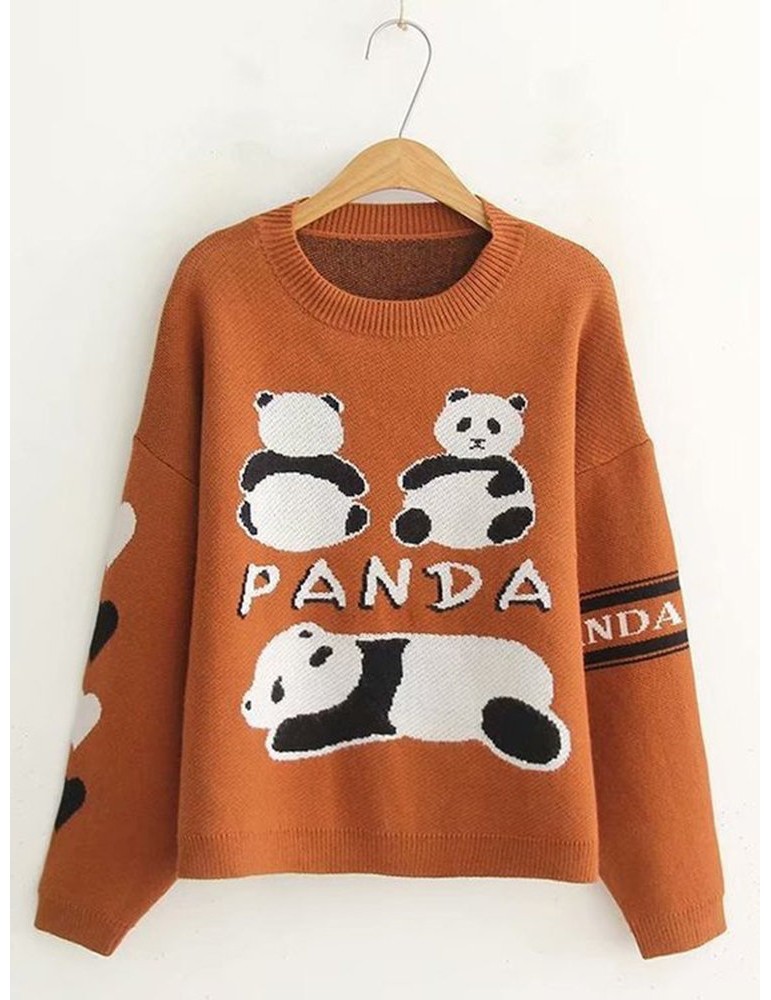 Panda Jacquard Crew Neck Long Sleeve Casual Sweater