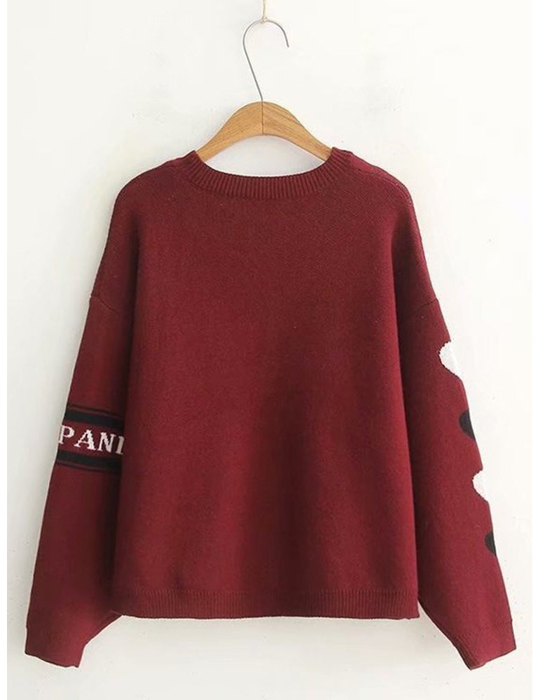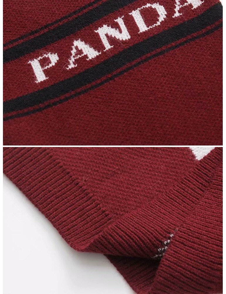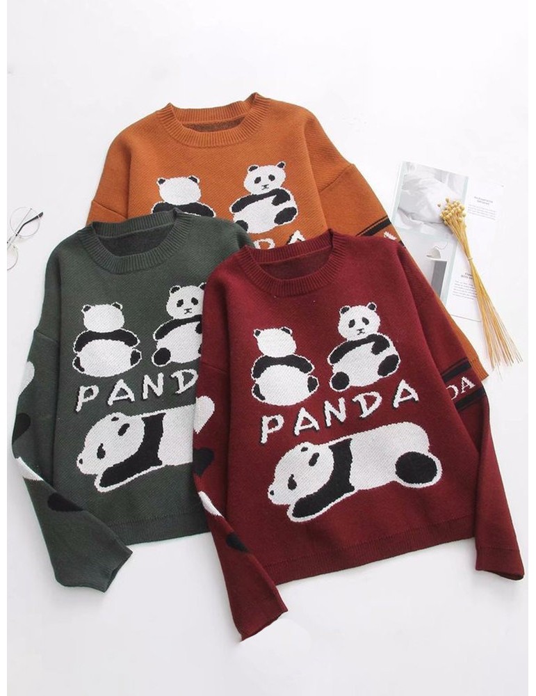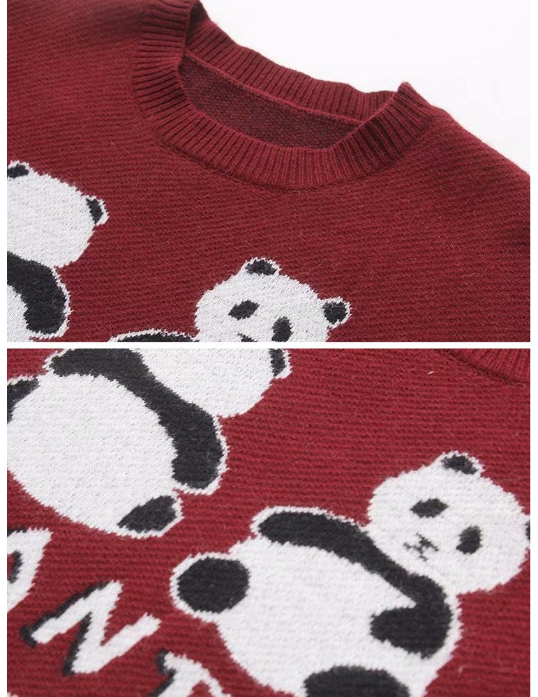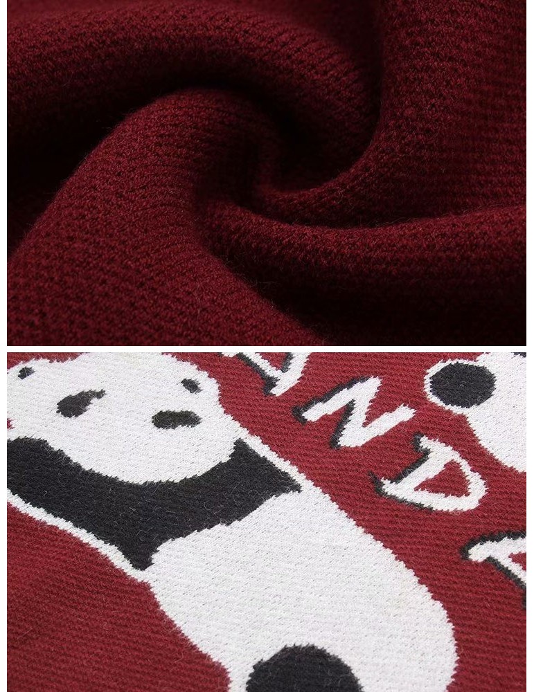 Panda Jacquard Crew Neck Long Sleeve Casual Sweater