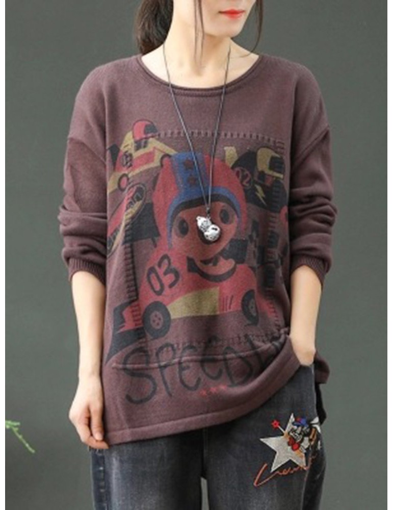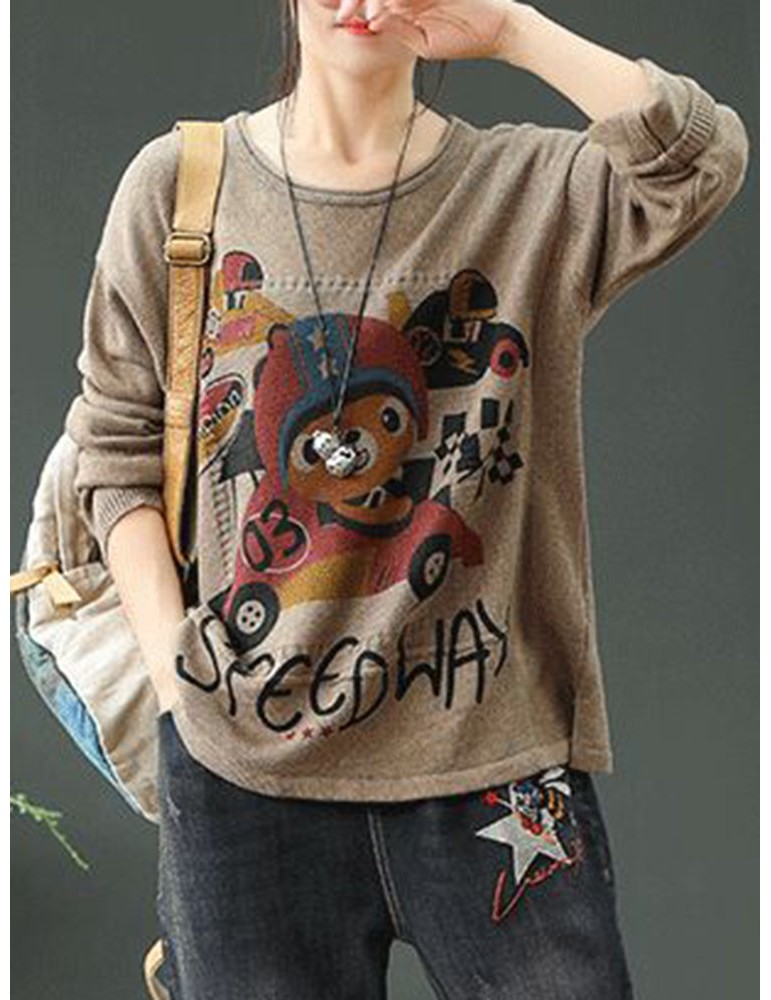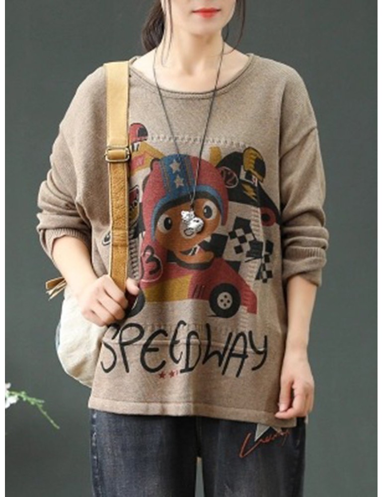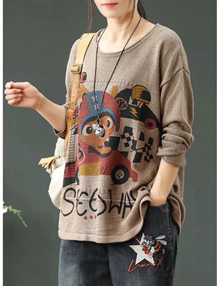 Letter Cartoon Print Long Sleeve Casual Women Sweater