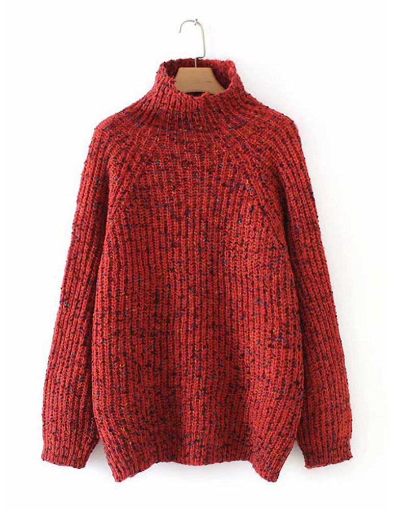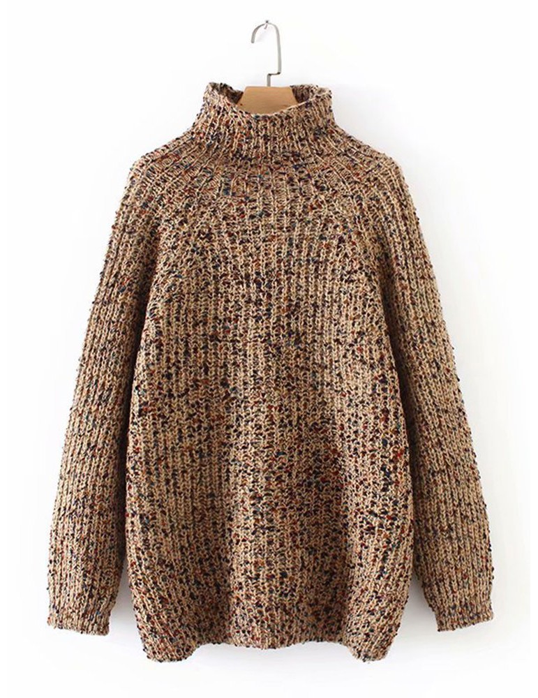 Turtleneck Solid Color Loose Long Sleeve Women Sweater